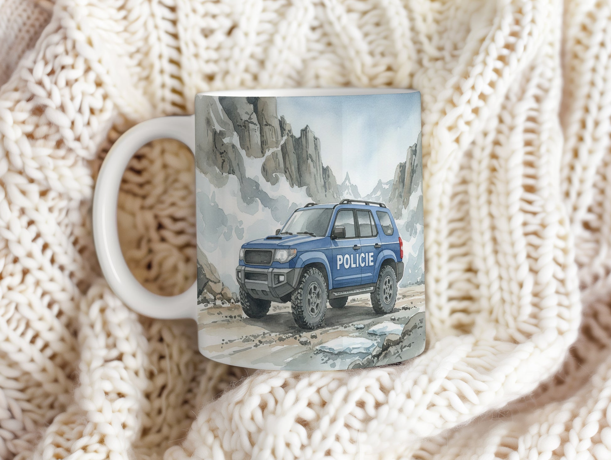 Tento hrnek zaujme akvarelovým motivem policejního vozu na horské cestě. Ideální pro milovníky dobrodružství. Hrnek 330 ml – vhodný do myčky i mikrovlnky.