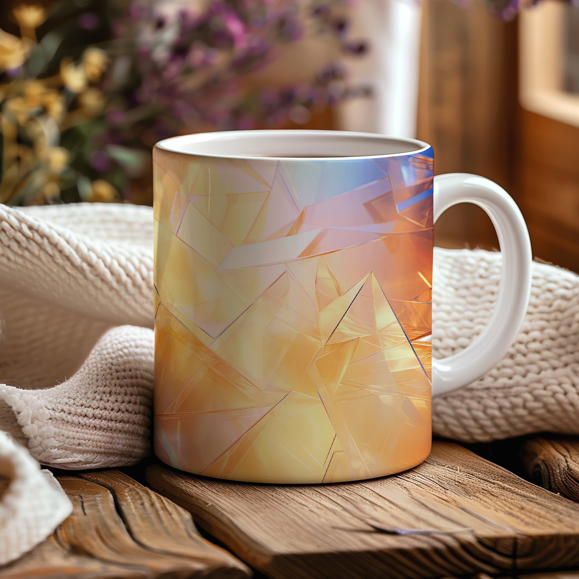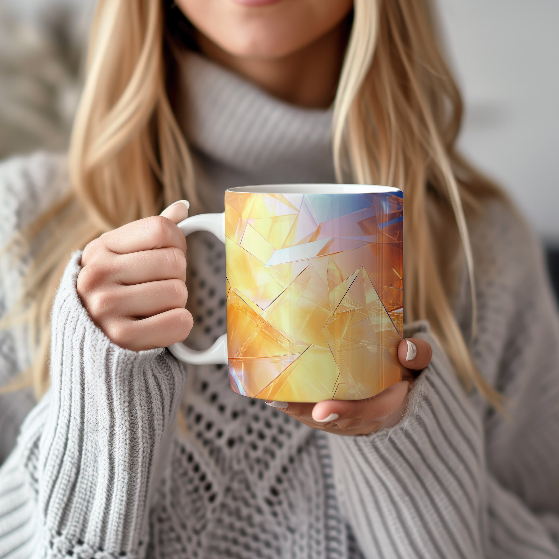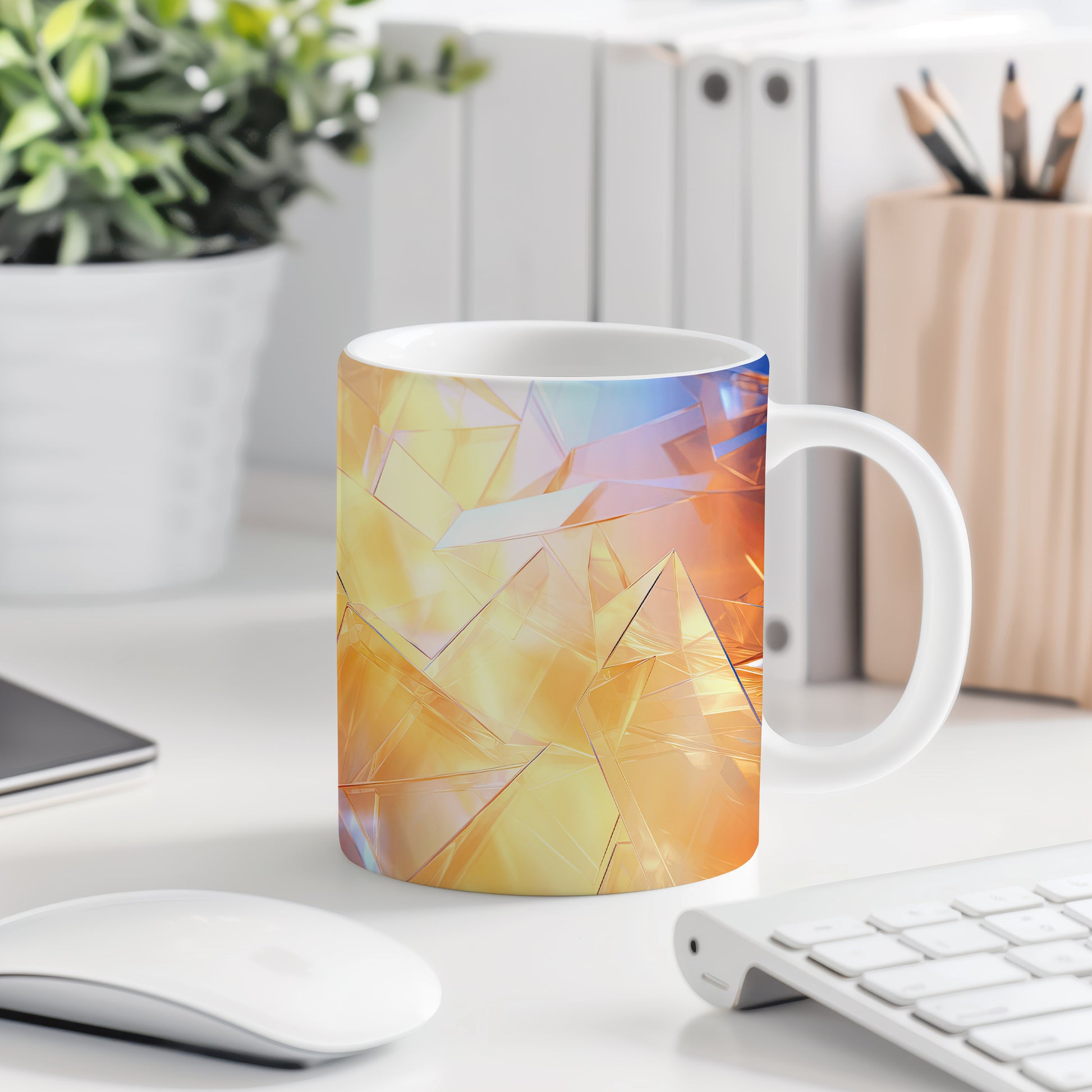 Hrnek s krystalickou mozaikou v oranžových a modrých tónech je elegantním kouskem s polygonální geometrickou strukturou. Tento stylový hrnek je ideální pro milovníky moderního designu a skvělým dárkem pro přátele nebo rodinu. Materiál: keramika. Objem: 330 ml. Vhodné do myčky i mikrovlnky. Používání tohoto hrnku přináší radost z každého doušku.