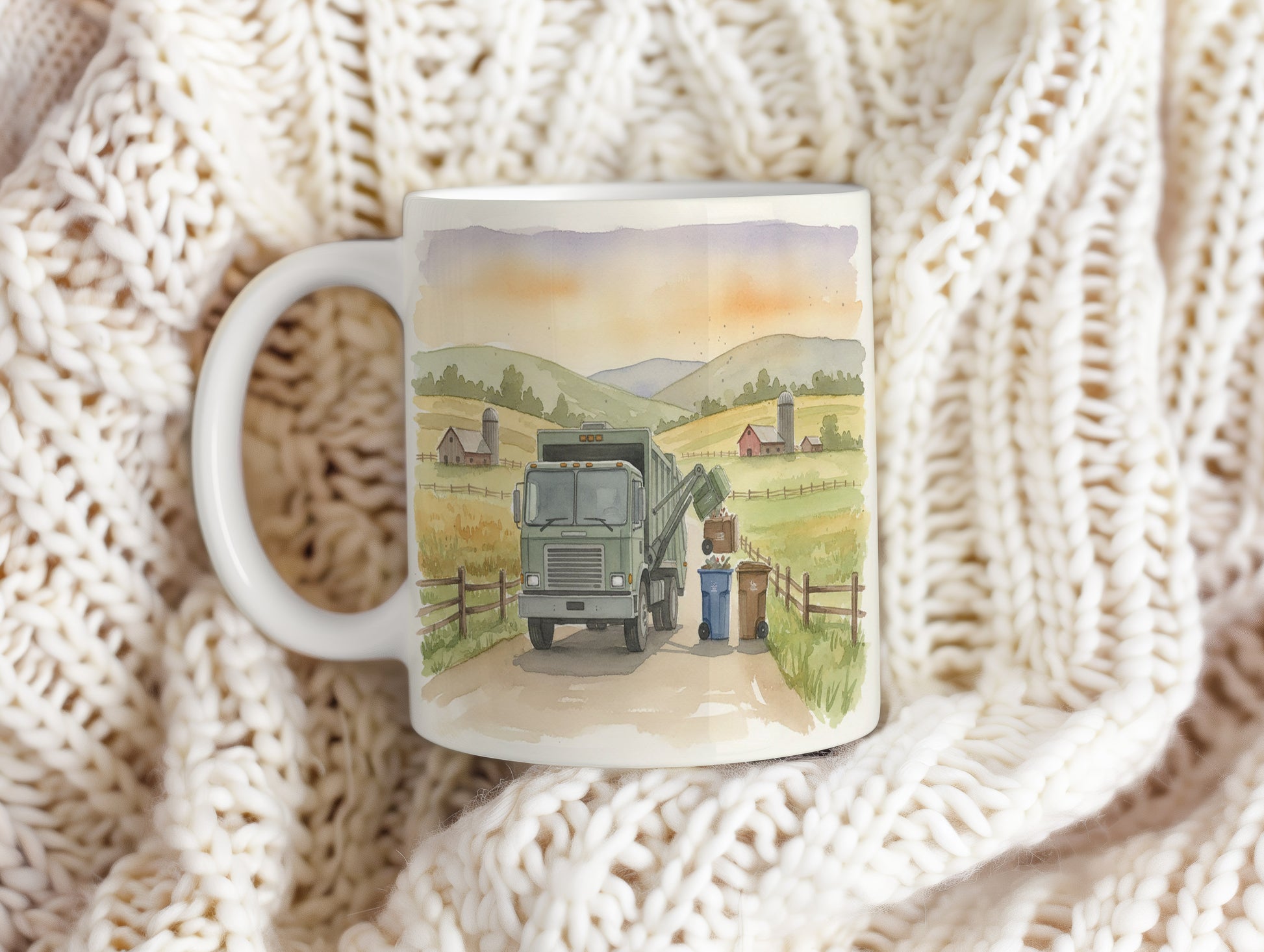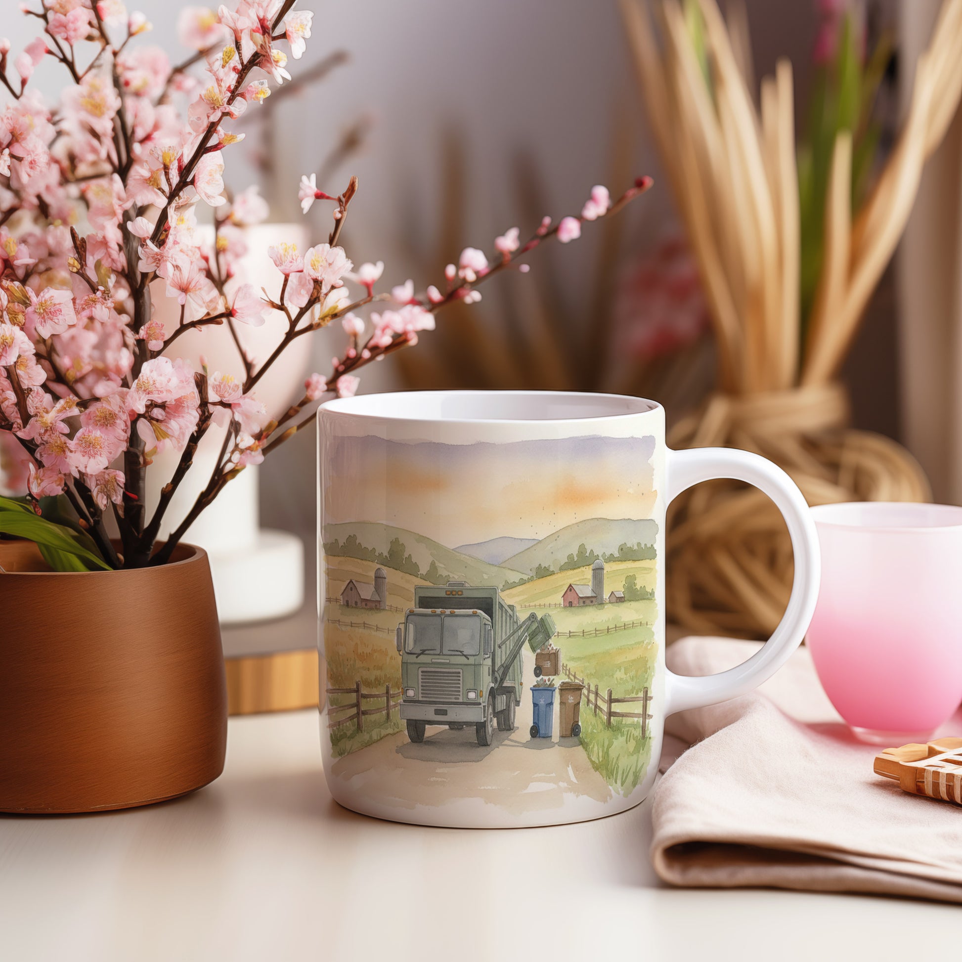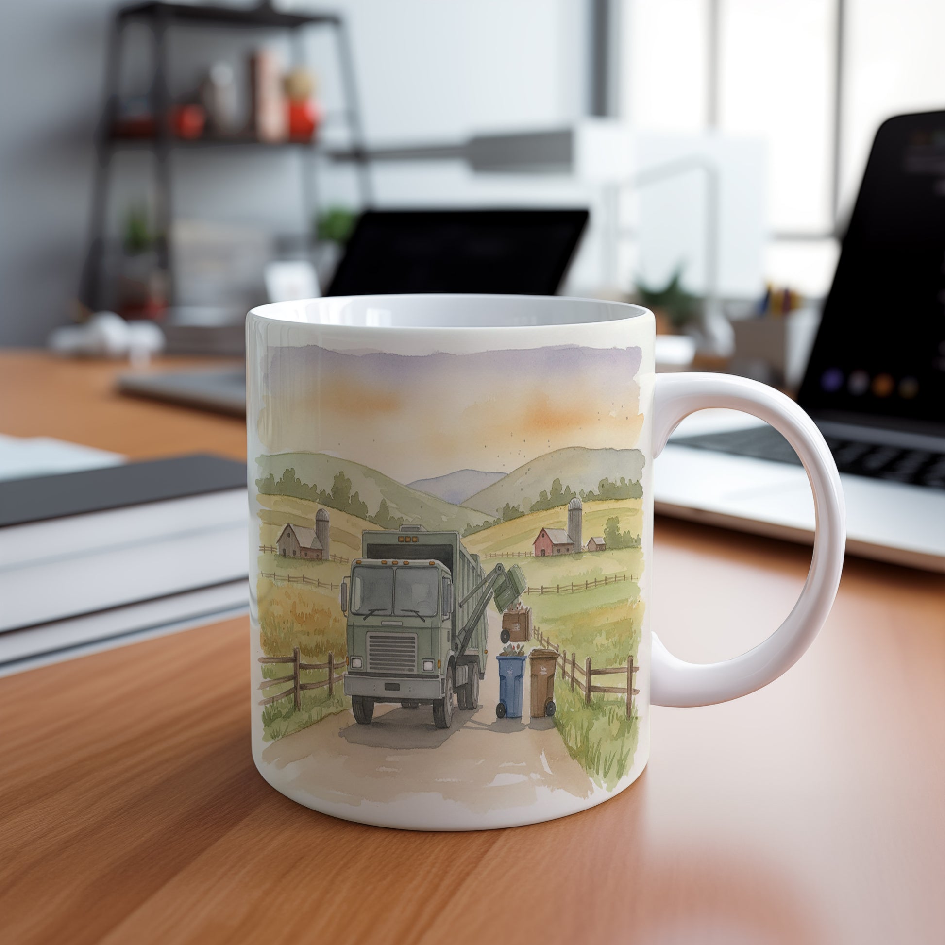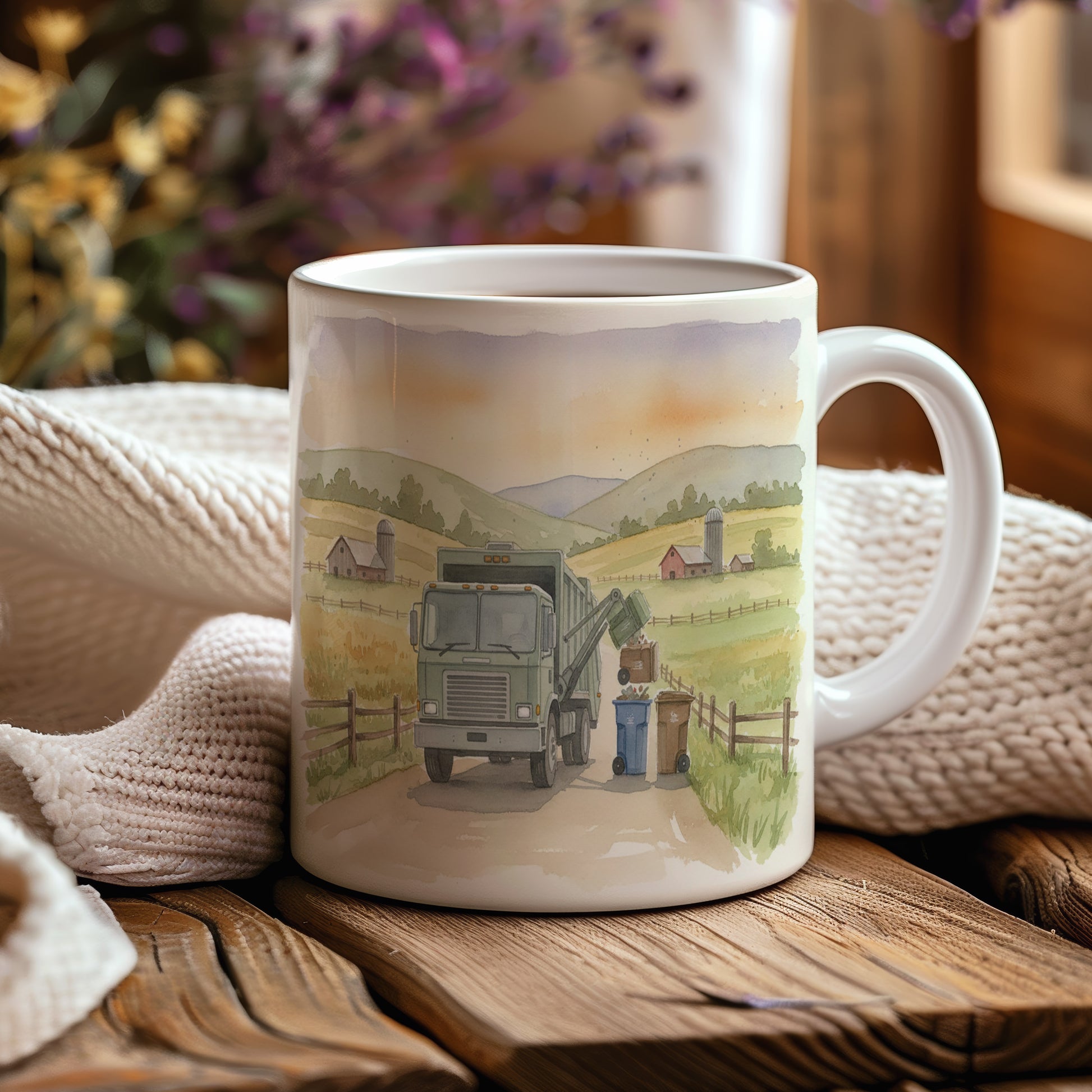 Objevte kouzlo venkova s akvarelovým motivem popelářského vozu na tomto hrnku. Ideální pro milovníky přírody a techniky. Hrnek 330 ml – vhodný do myčky i mikrovlnky.