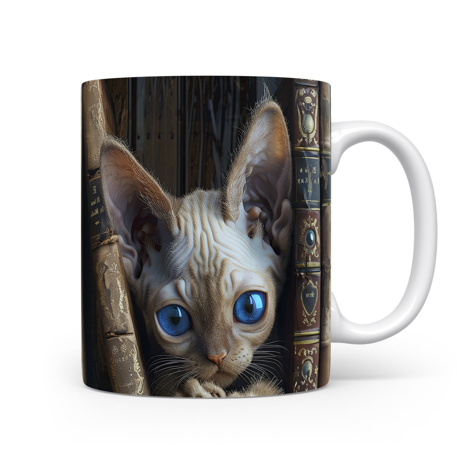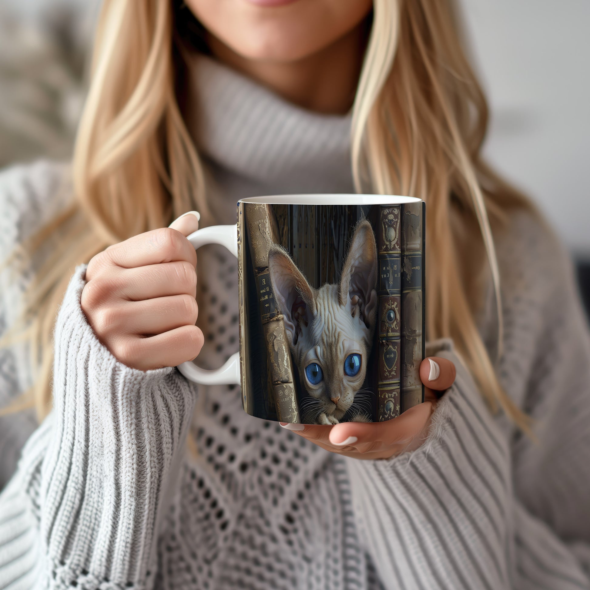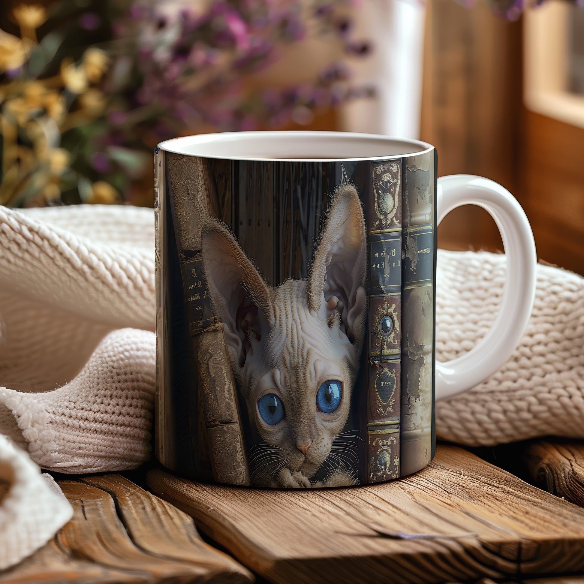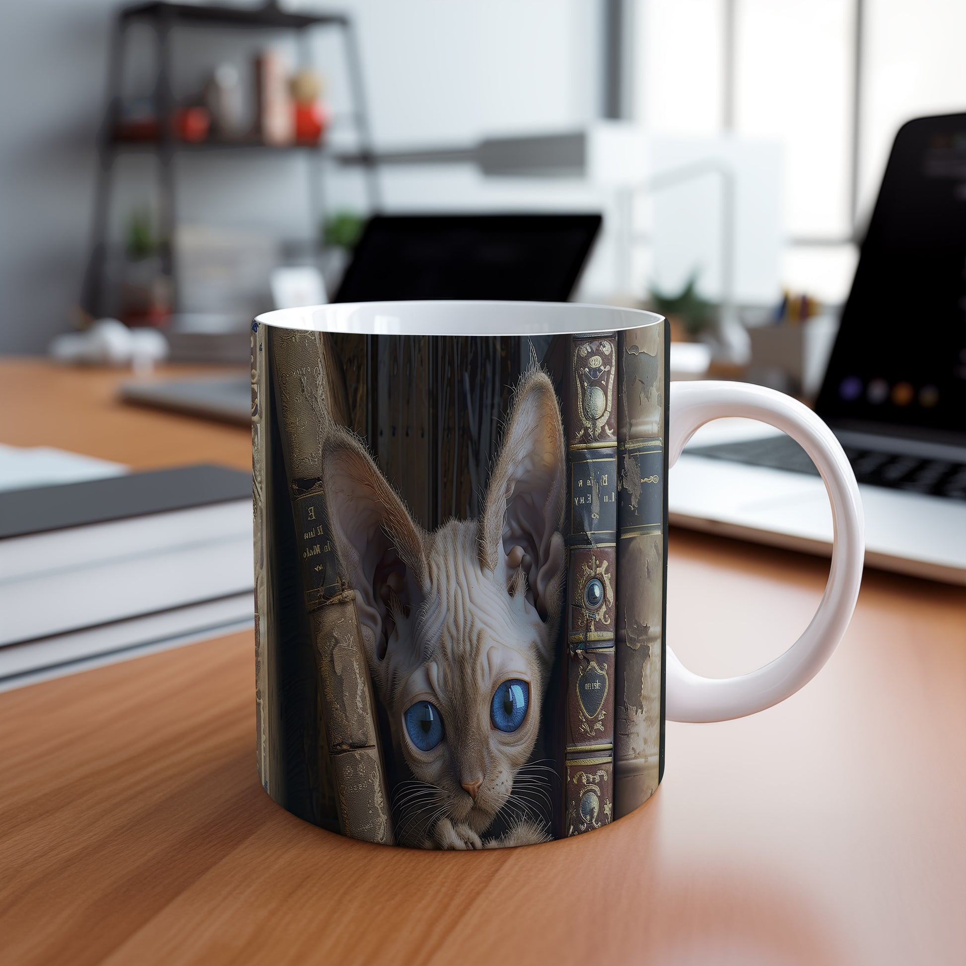 Tento hrnek zobrazuje detailní portrét kočky, která se ukrývá mezi starými knihami. Je ideální pro milovníky koček a knih, skvělý tip na dárek pro každého knihomola. Materiál: keramika. Objem: 330 ml. Vhodné do myčky i mikrovlnky. Používání tohoto hrnku přináší radost z každého doušku a potěšení z oblíbeného motivu.