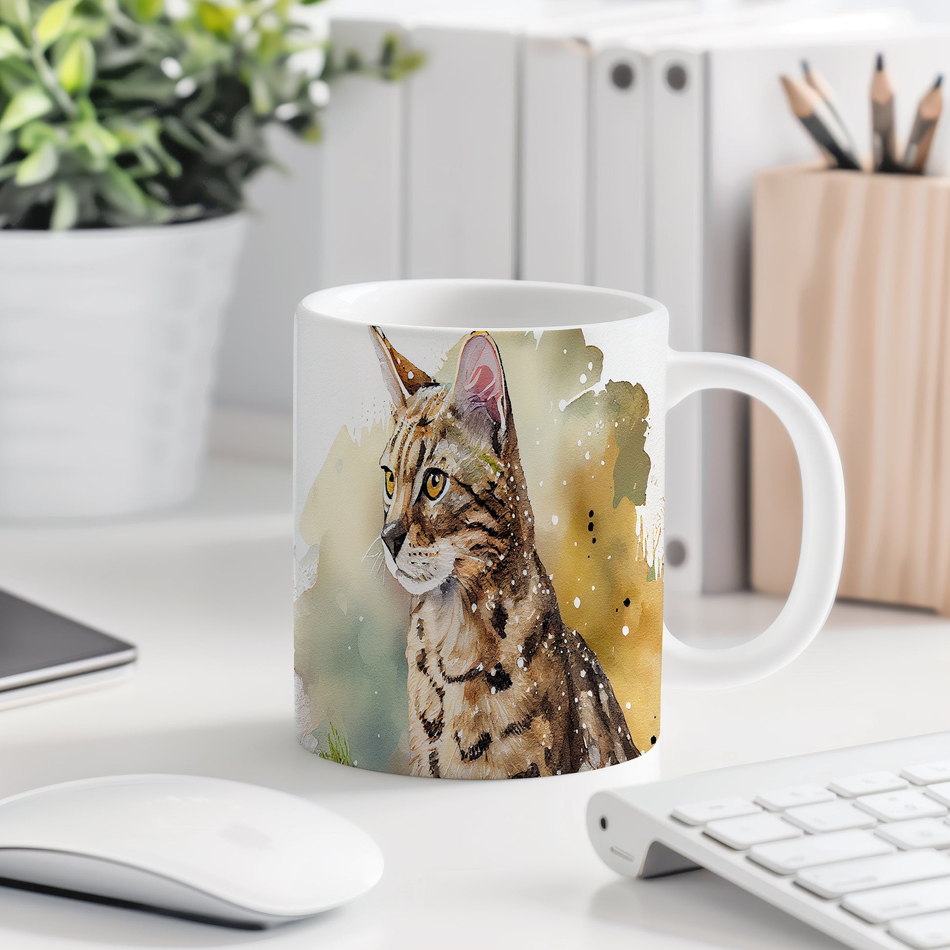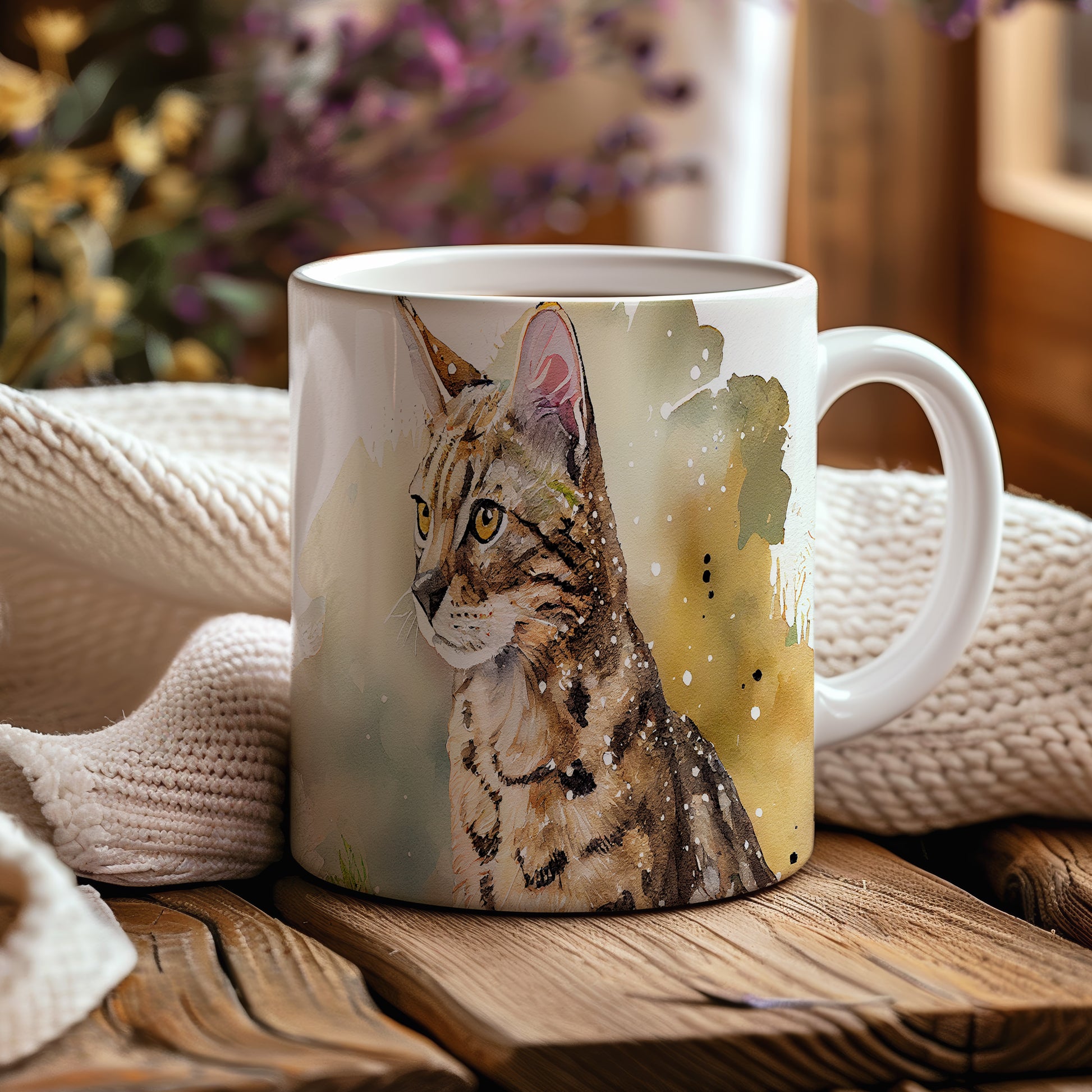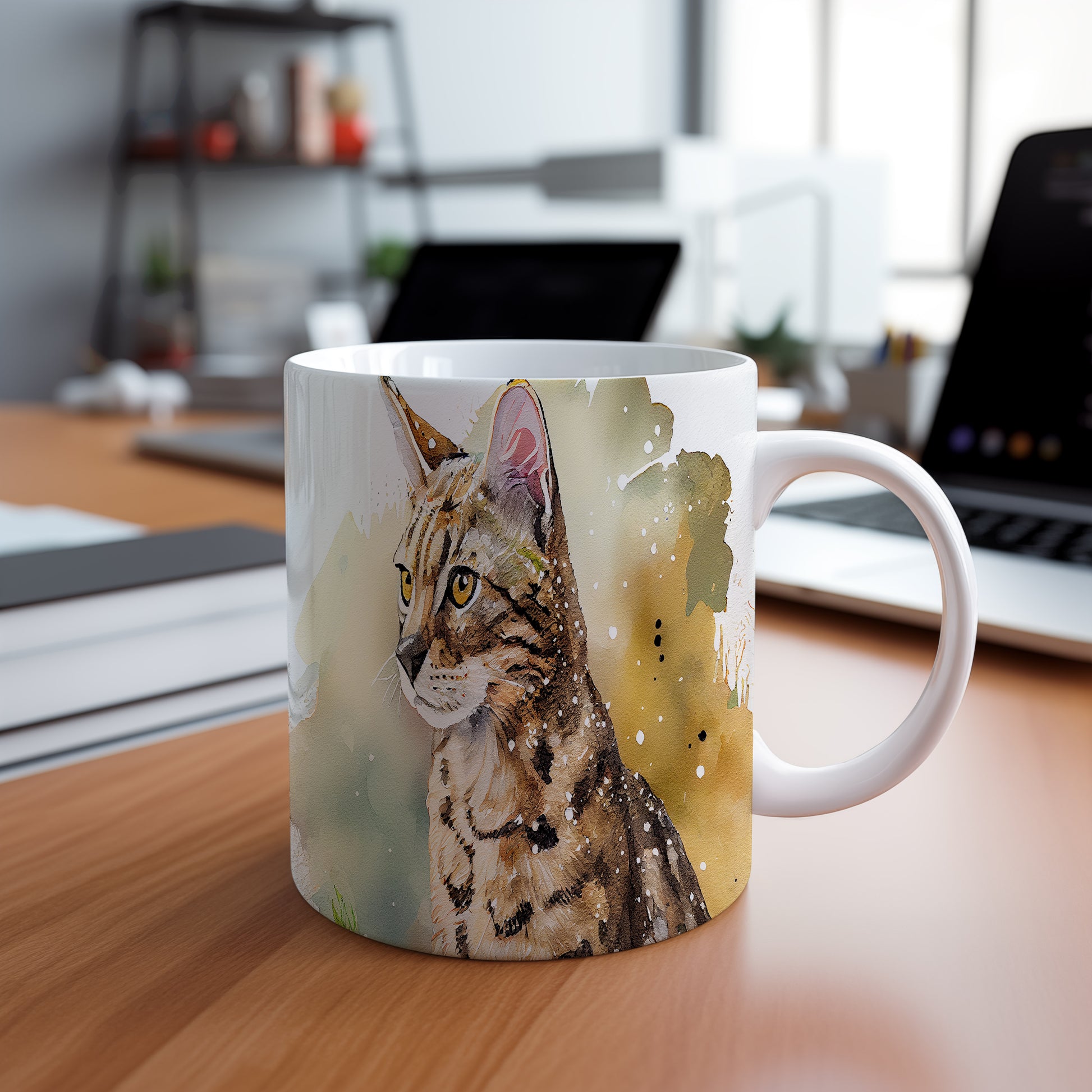Hrnek s portrétem kočky v akvarelovém stylu – akvarelovým motivem
