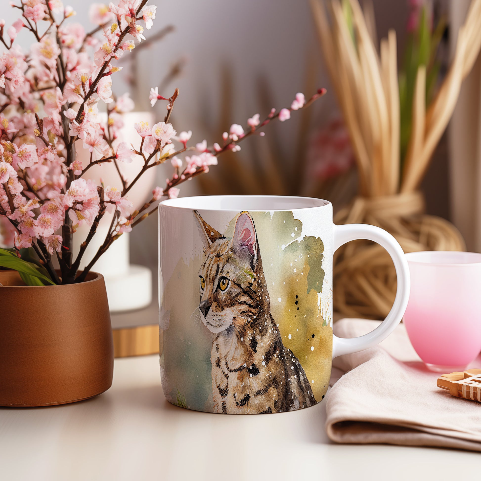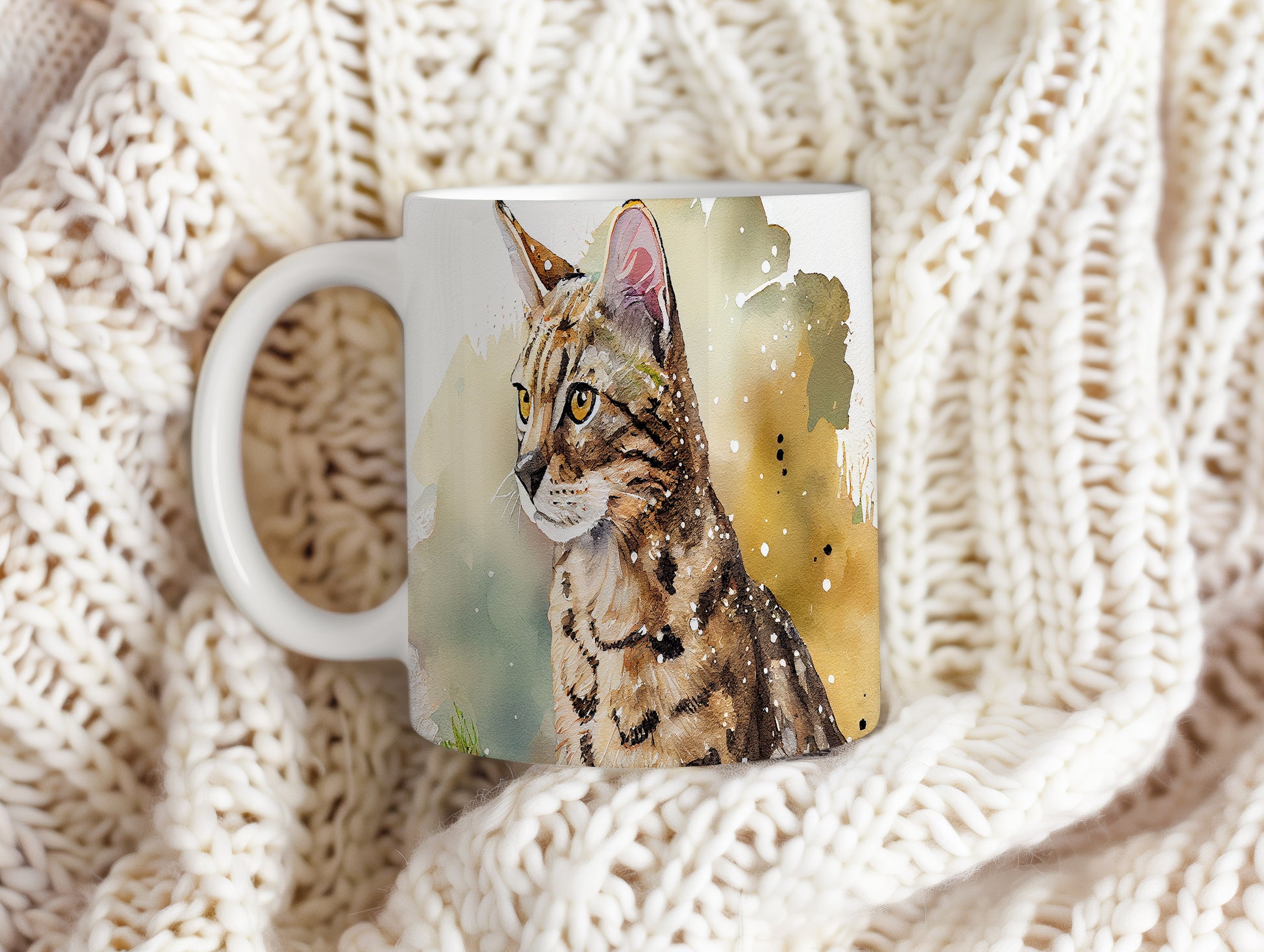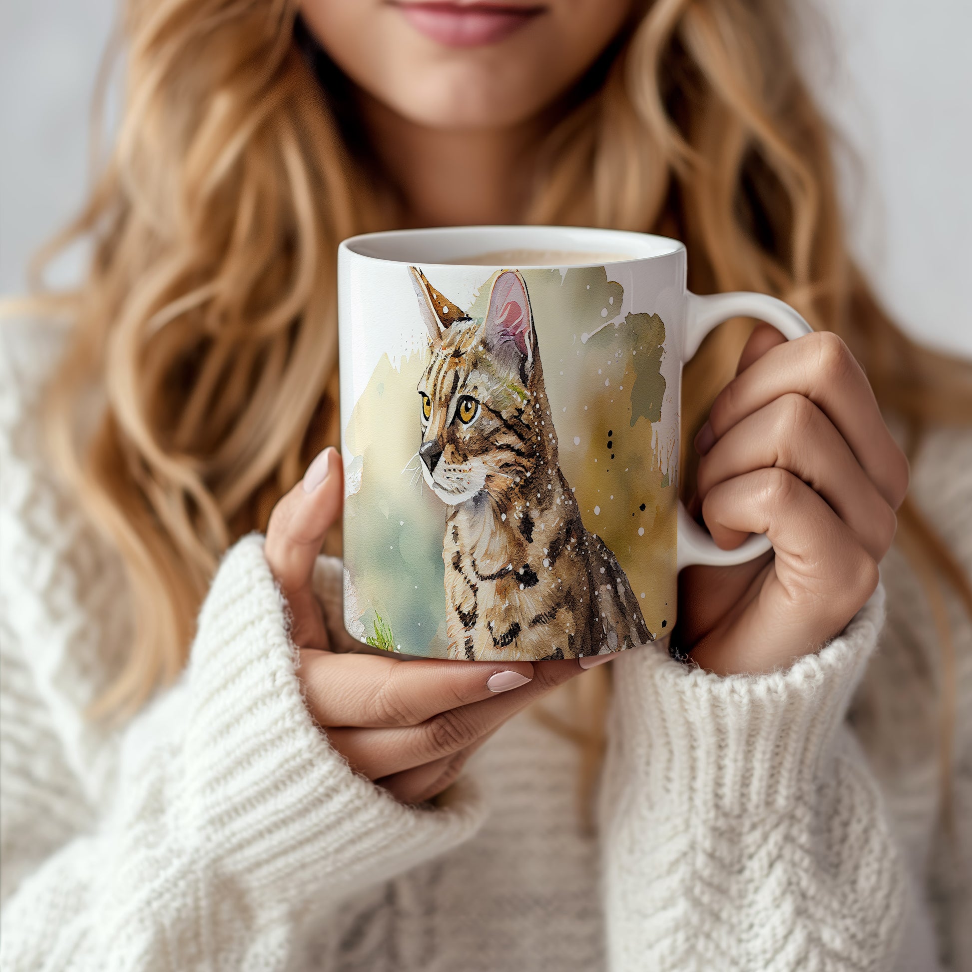 Hrnek s portrétem kočky v akvarelovém stylu – akvarelovým motivem