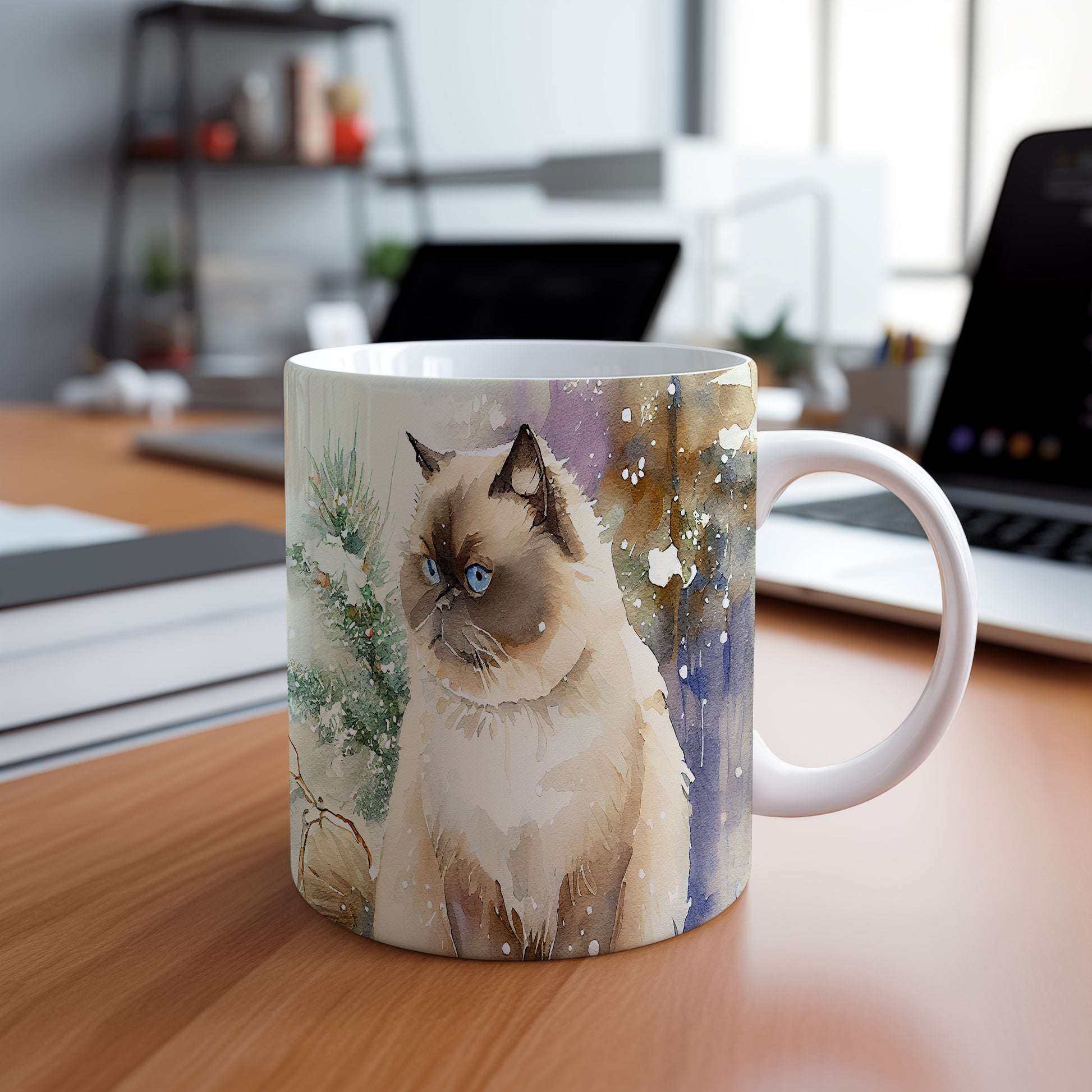 Tento elegantní hrnek s motivem kočky v zasněžené krajině je ideální pro milovníky koček a útulné chvíle s oblíbeným nápojem. Skvělý tip na dárek pro přátele nebo rodinu, kteří ocení krásu a pohodlí. Materiál: keramika. Objem: 330 ml. Vhodné do myčky i mikrovlnky. Používání tohoto hrnku přináší radost a útulnost do každého dne.