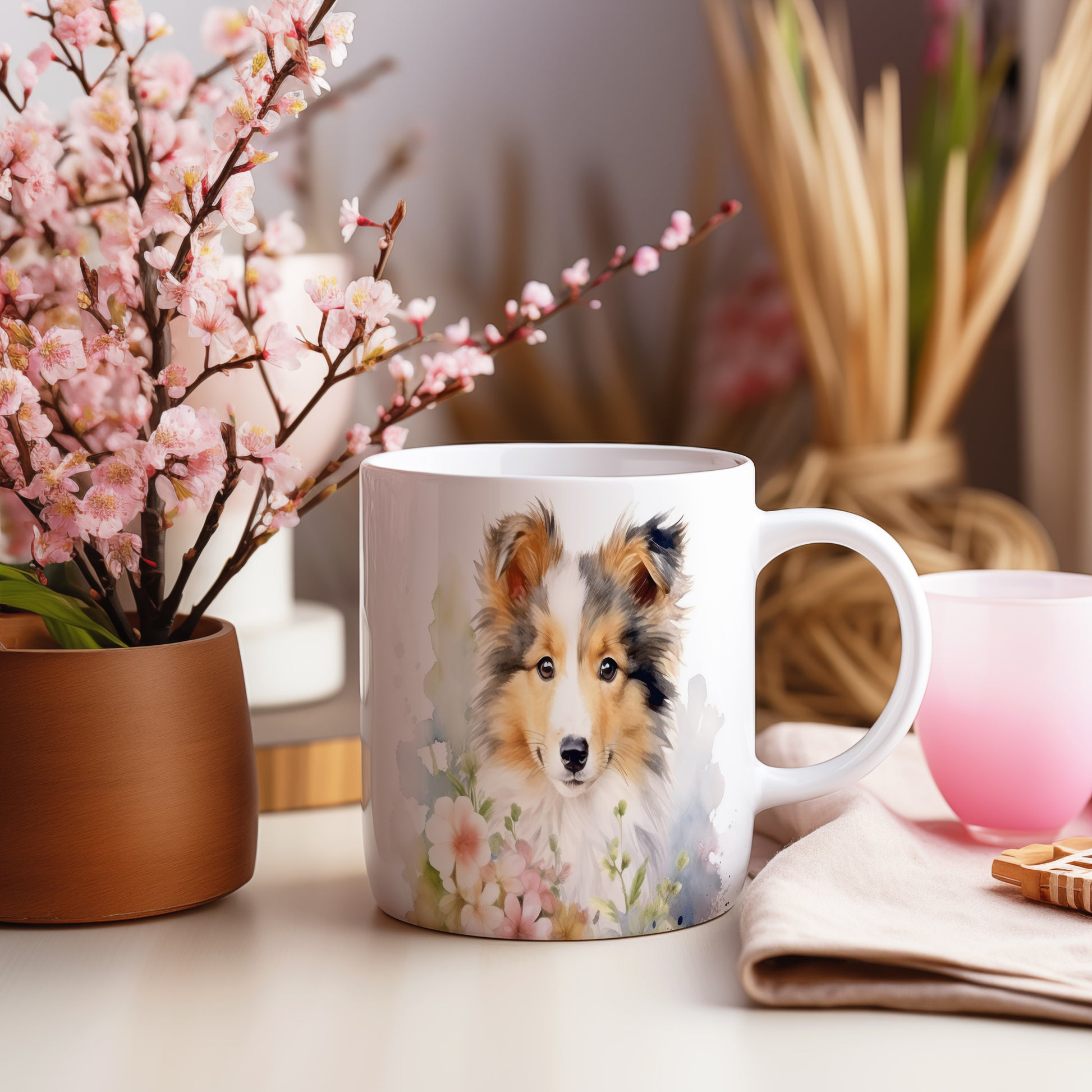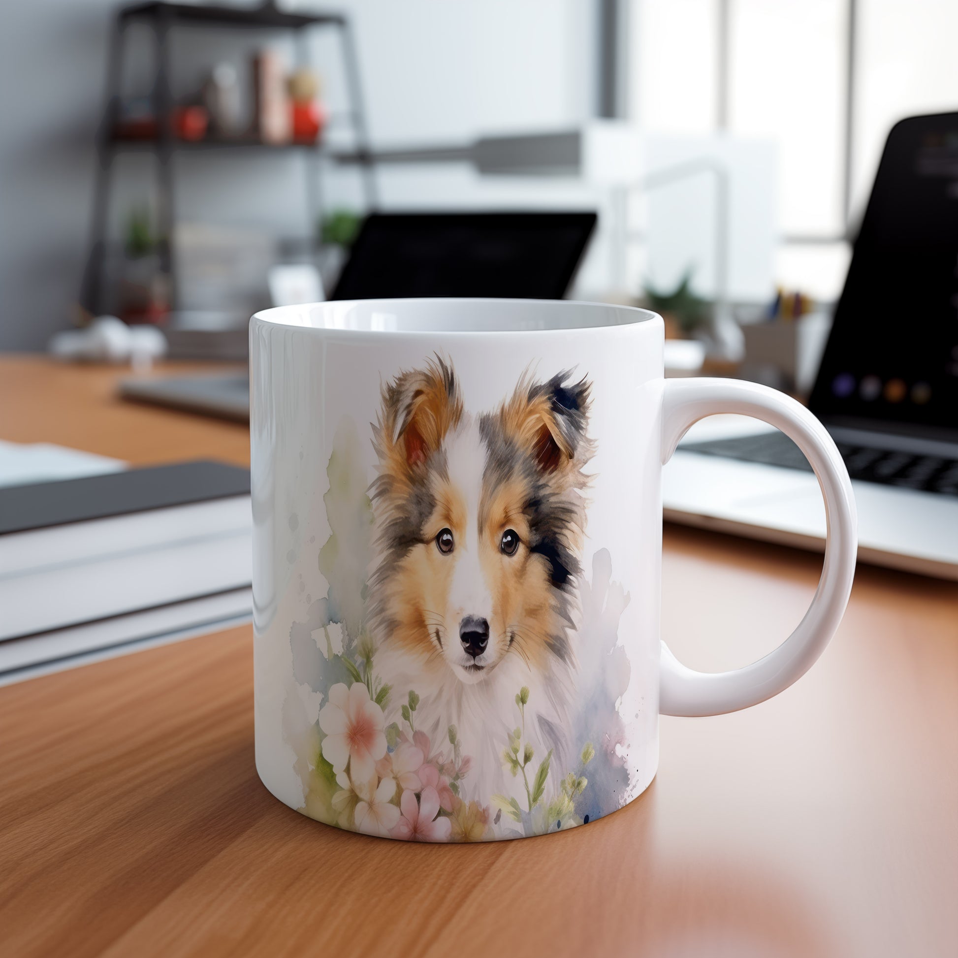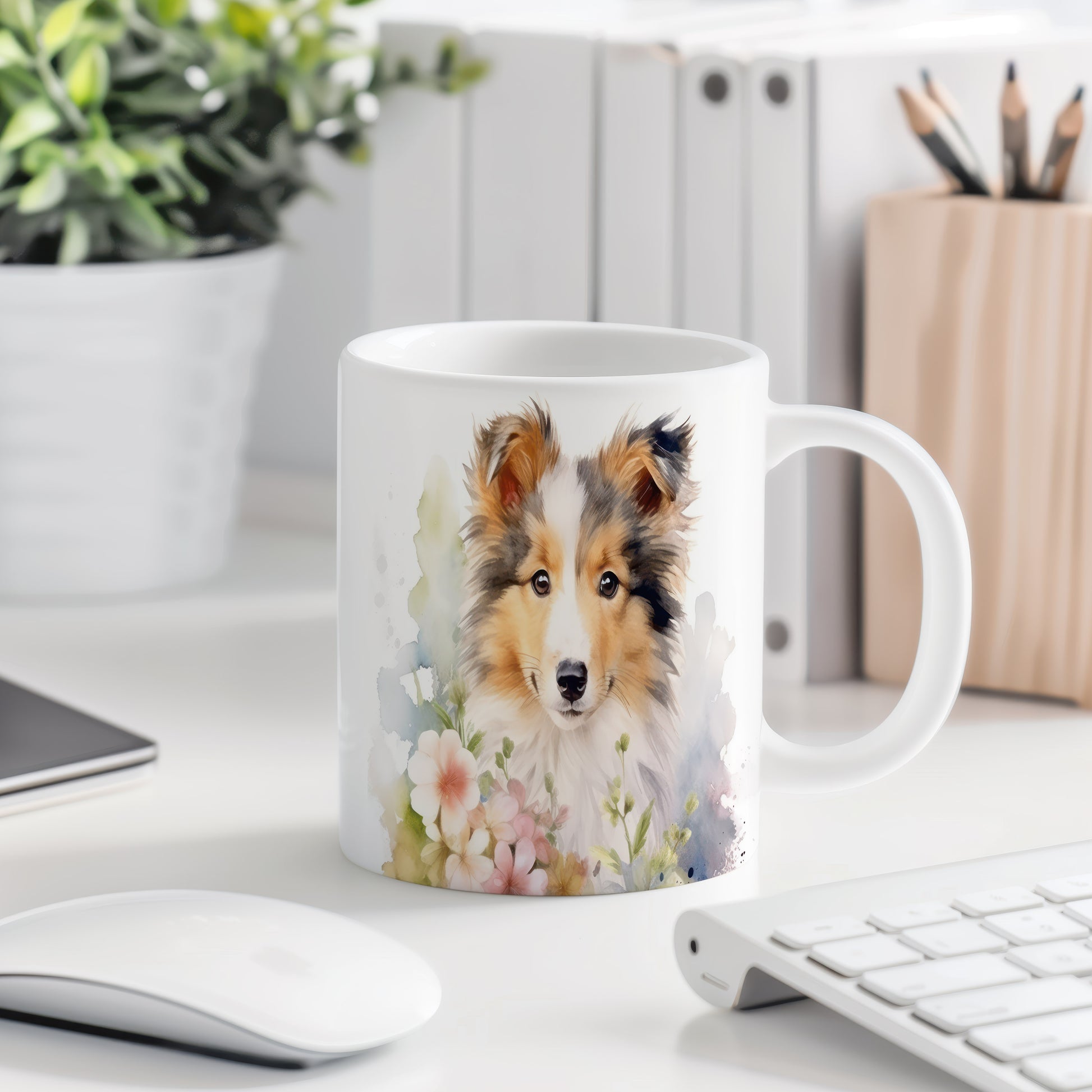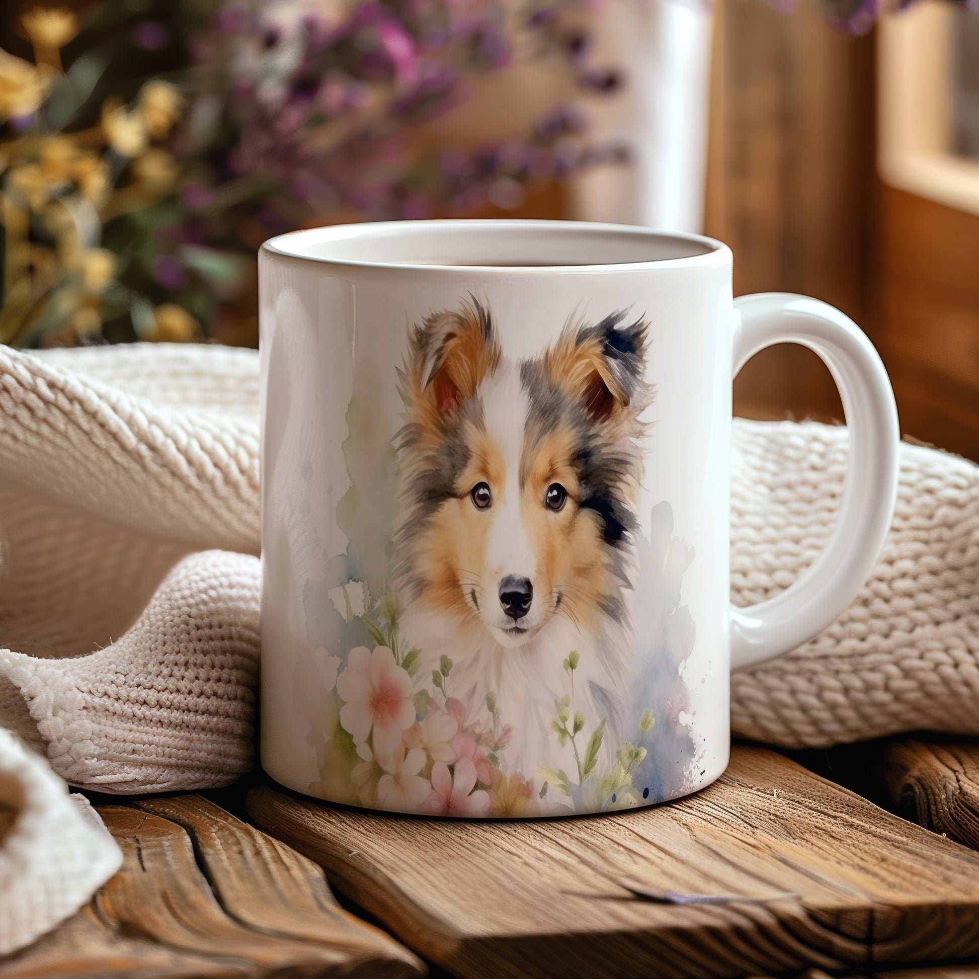 Tento hrnek zobrazuje krásný portrét kolie obklopené květinami. Je ideální pro milovníky psů a přírody, skvělý tip na dárek pro přátele nebo rodinu. Materiál: keramika. Objem: 330 ml. Vhodné do myčky i mikrovlnky. Užívejte si svůj oblíbený nápoj s nádechem přírody.