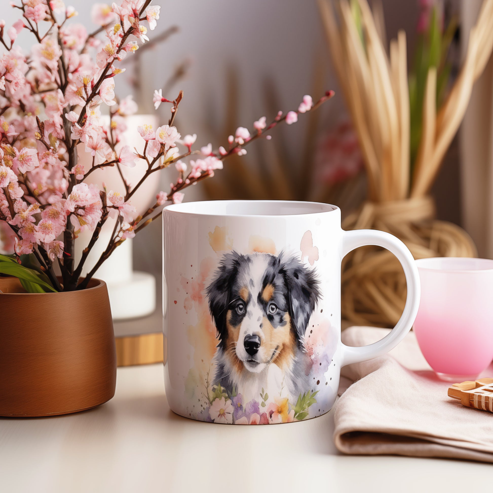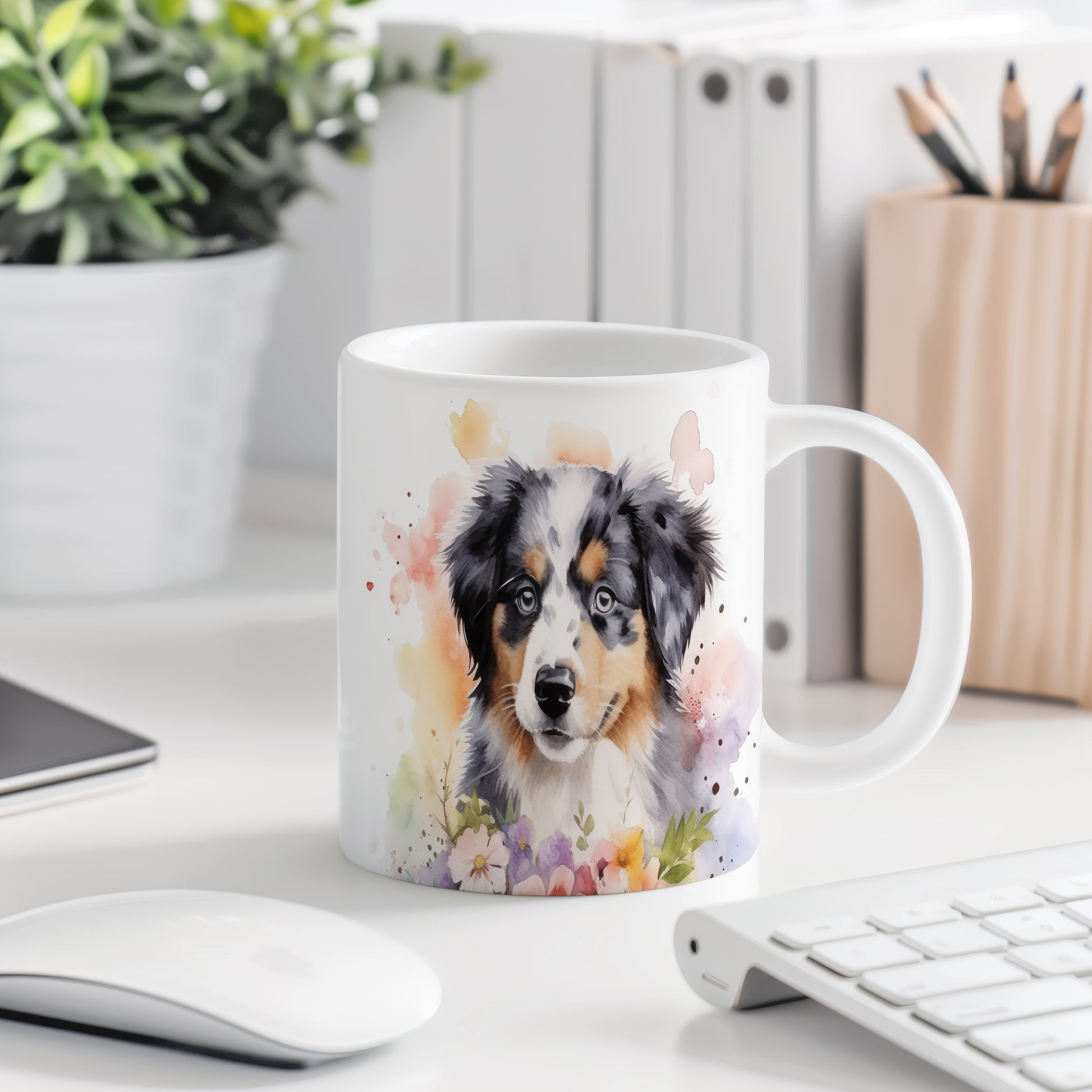 Tento keramický hrnek s realistickým portrétem psa a květinovým vzorem je ideální pro všechny milovníky čtyřnohých přátel. Skvělý tip na dárek pro přátele nebo rodinu, kteří mají rádi psy. Materiál: keramika. Objem: 330 ml. Vhodné do myčky i mikrovlnky. Užijte si kávu nebo čaj s tímto stylovým hrnkem, který přinese radost do každého dne.