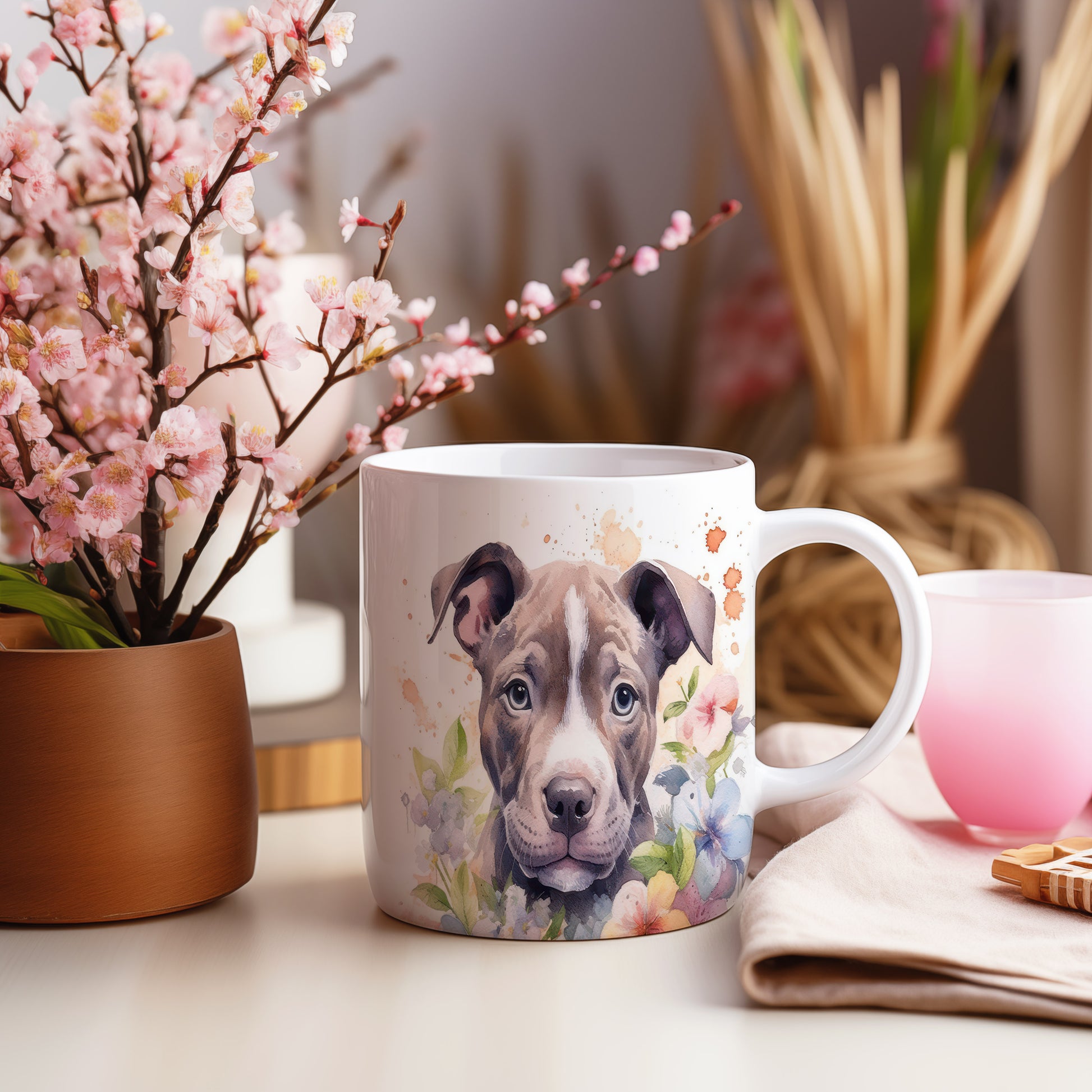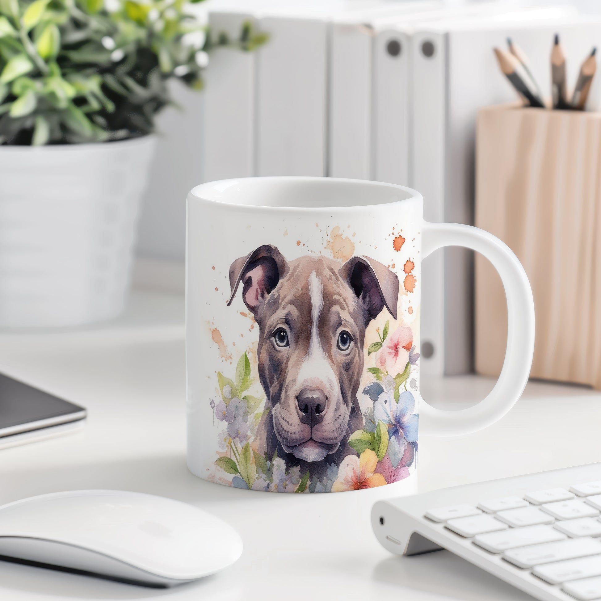 Hrnek s portrétem psa a květinami je skvělým doplňkem pro milovníky zvířat a přírody. Tento hrnek potěší každého, kdo má rád štěňata a barevné květiny, a je ideálním dárkem pro přátele či rodinu. Materiál: keramika. Objem: 330 ml. Vhodné do myčky i mikrovlnky. Používání tohoto hrnku přináší radost z každého doušku.