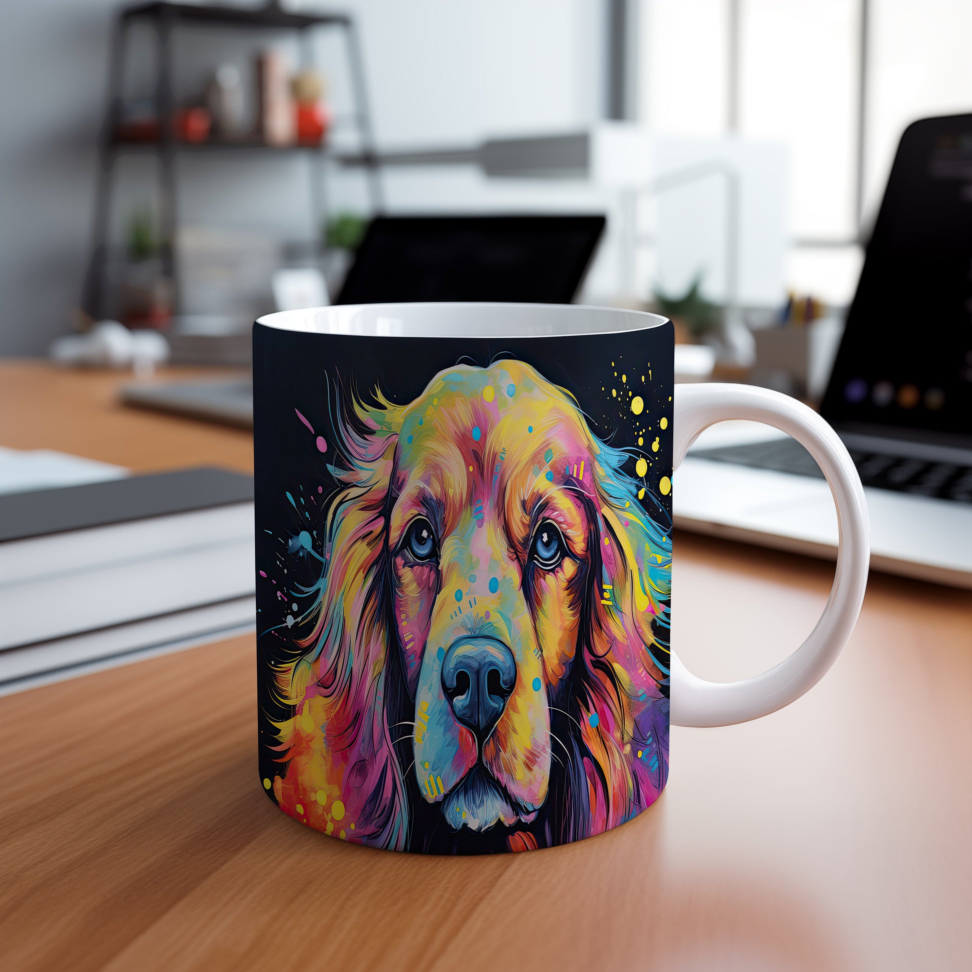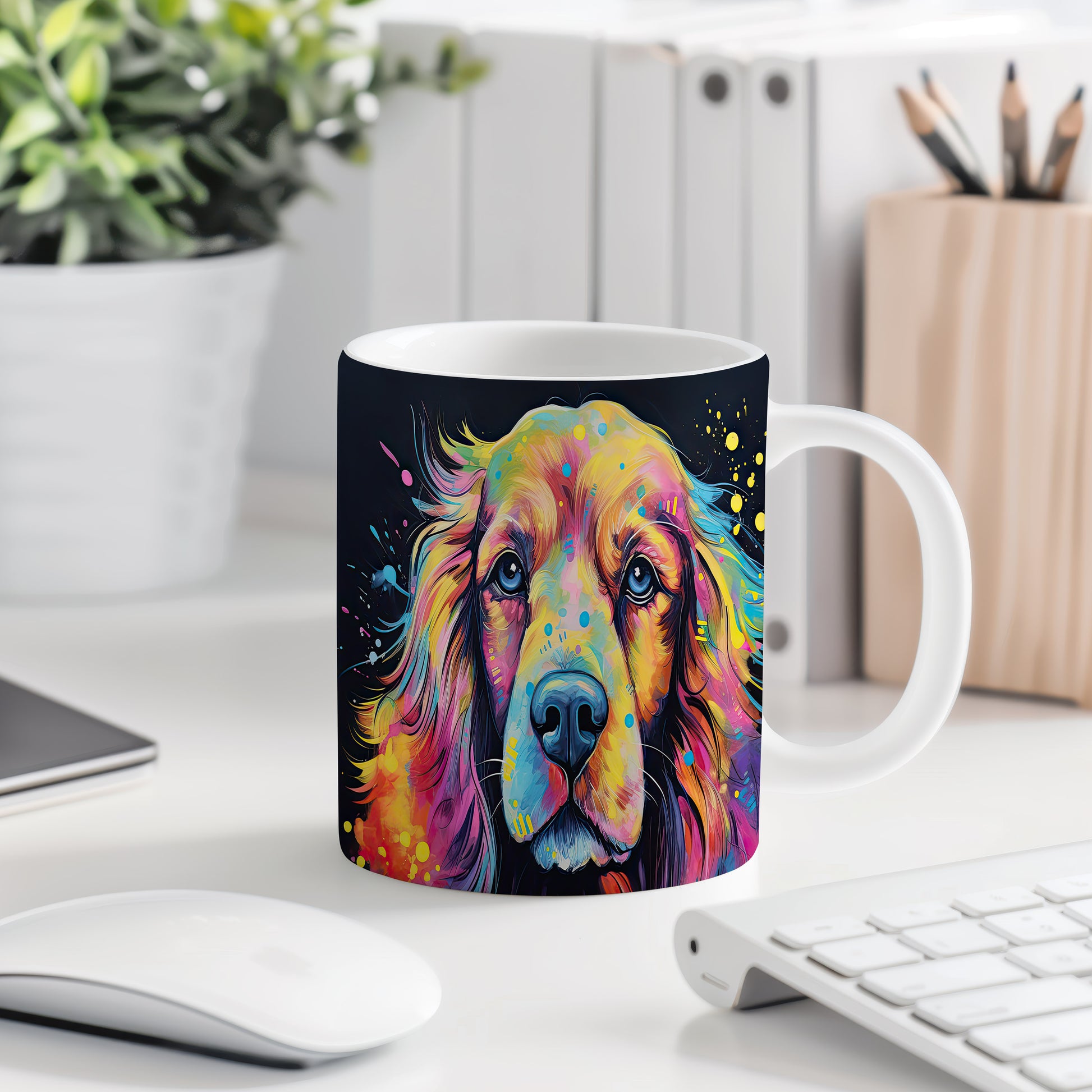 Hrnek s barevným portrétem psa je stylovým doplňkem pro milovníky zvířat. Tento hrnek je ideální jako dárek pro přátele nebo rodinu, kteří ocení originální design. Materiál: keramika. Objem: 330 ml. Vhodné do myčky i mikrovlnky. Používání tohoto hrnku přináší radost do každodenního pití.