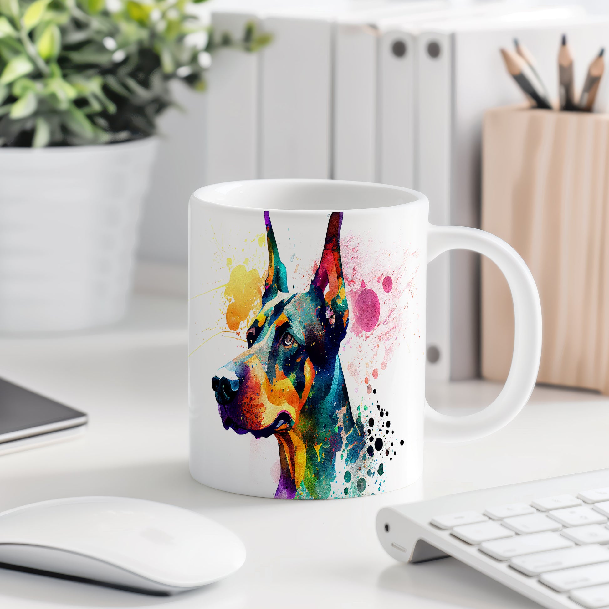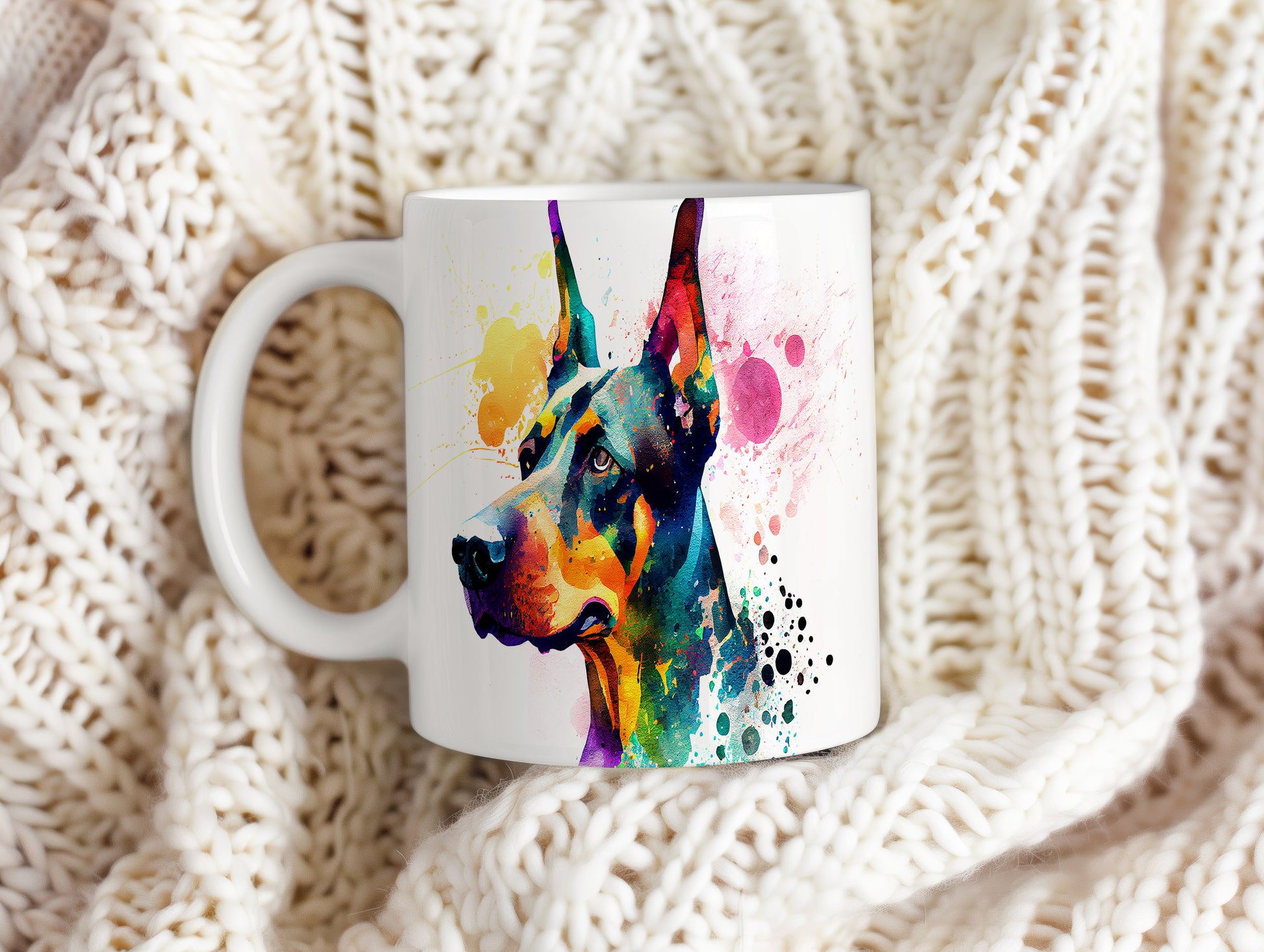 Tento keramický hrnek zaujme živým portrétem psa v malířském stylu. Je ideální pro milovníky psů a skvělým dárkem pro každého, kdo má rád zvířata. Materiál: keramika. Objem: 330 ml. Vhodné do myčky i mikrovlnky. Díky svému designu přináší radost při každém doušku.