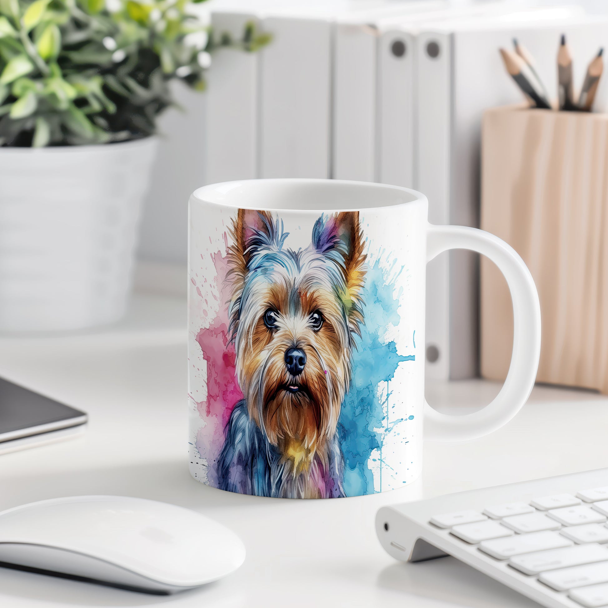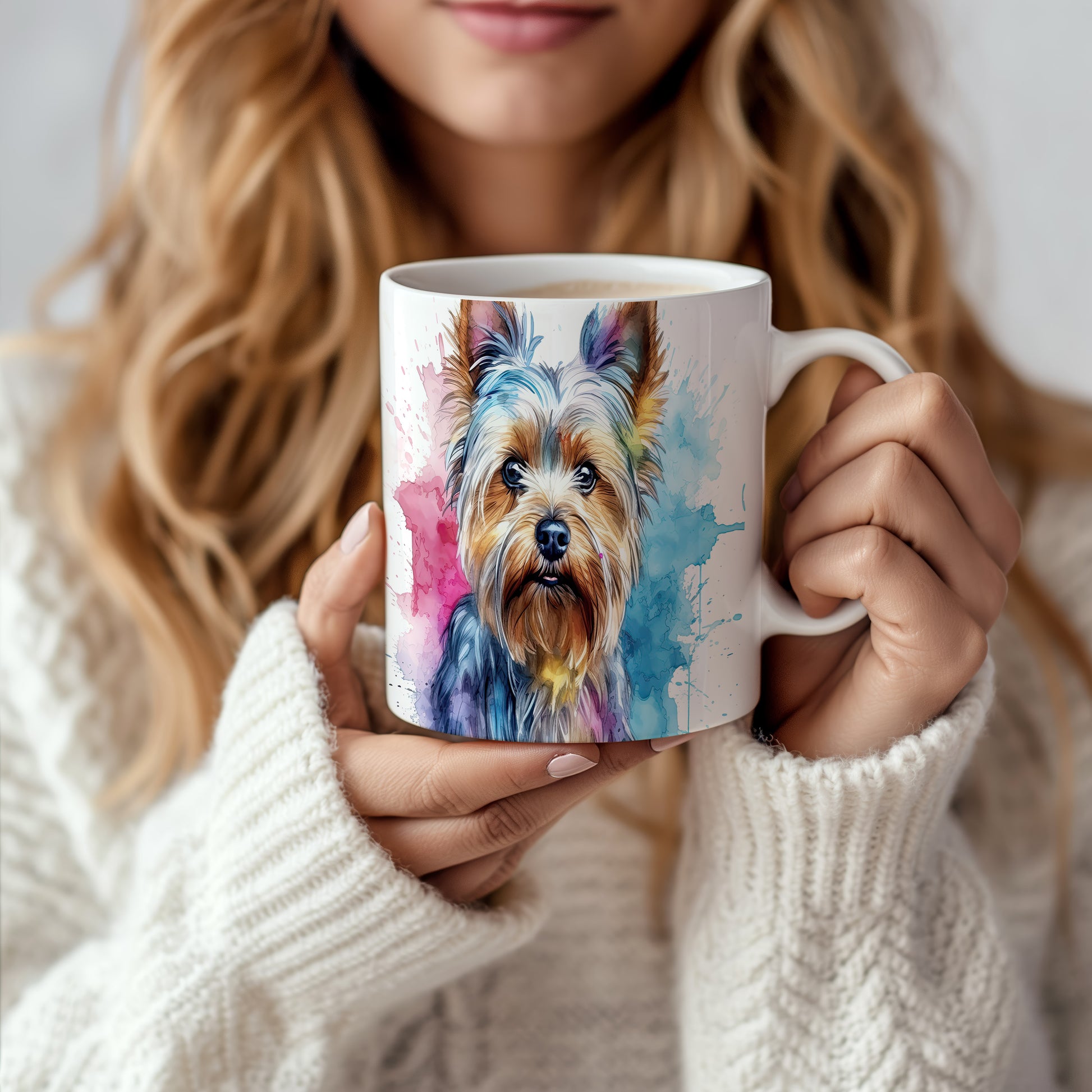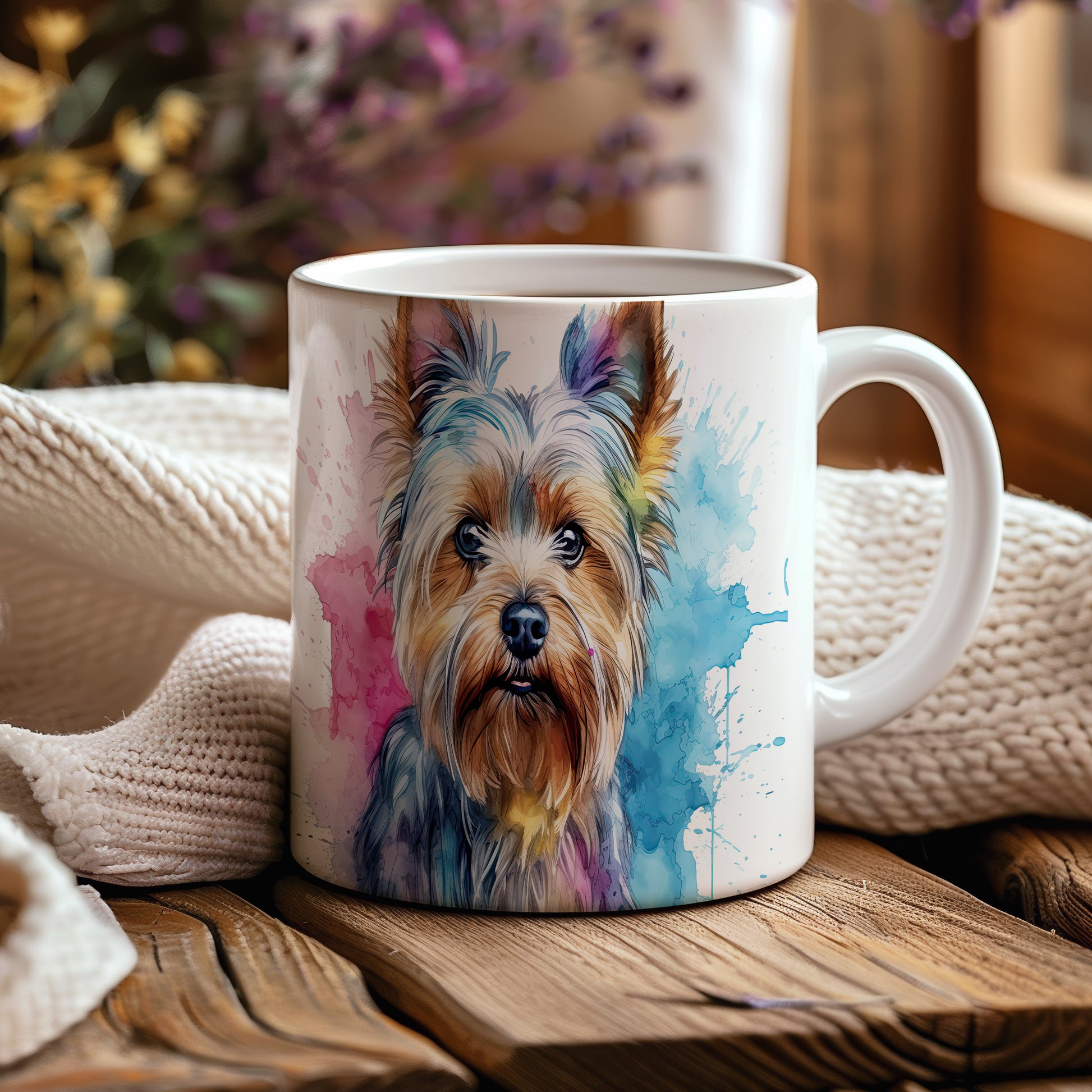 Keramický hrnek s barevným portrétem psa Yorkšírského teriéra. Tento motiv potěší všechny milovníky psů a je skvělým dárkem pro každého, kdo má rád tento roztomilý plemeno. Materiál: keramika. Objem: 330 ml. Vhodné do myčky i mikrovlnky. Užijte si kávu nebo čaj s tímto hrnkem a přidejte do svého dne trochu radosti.