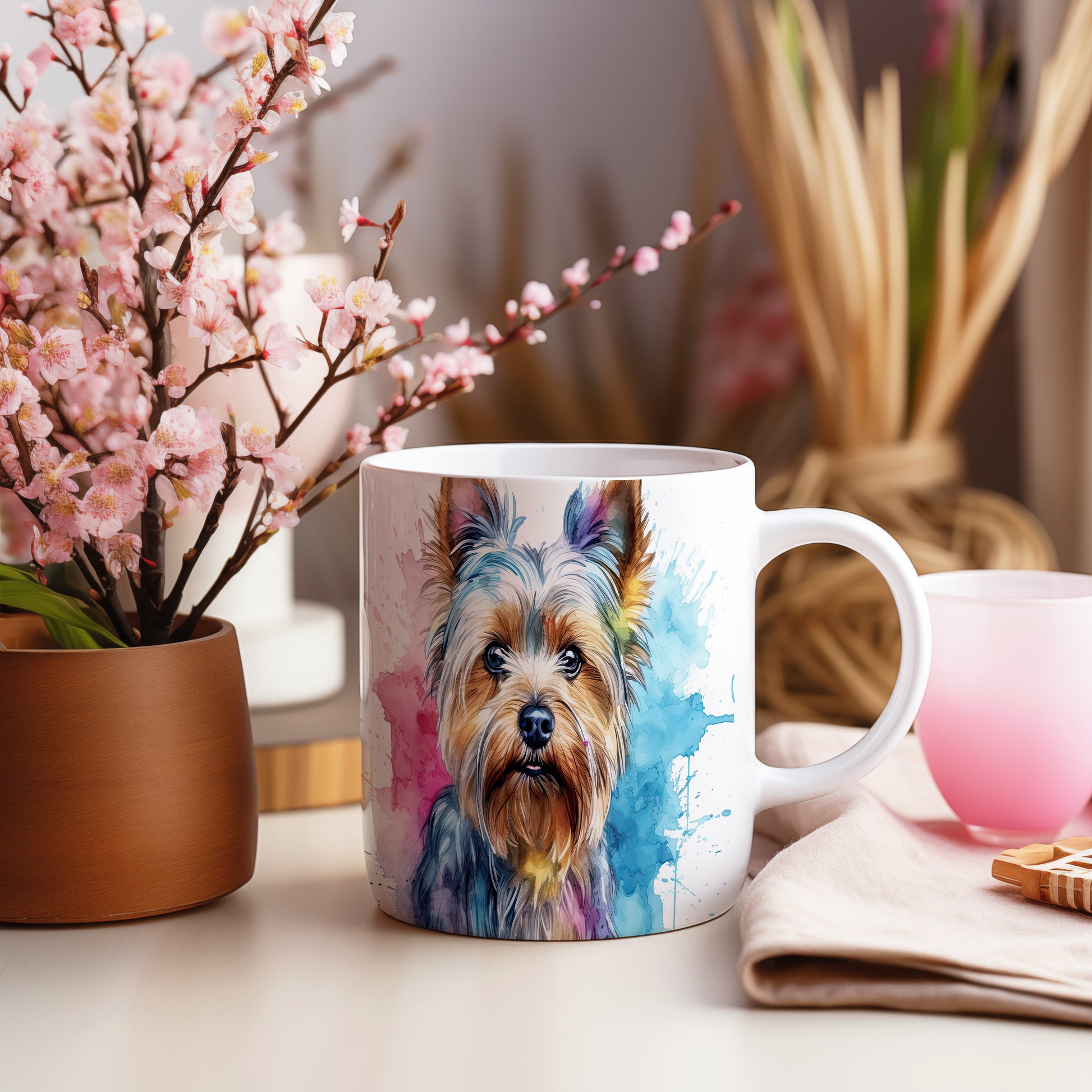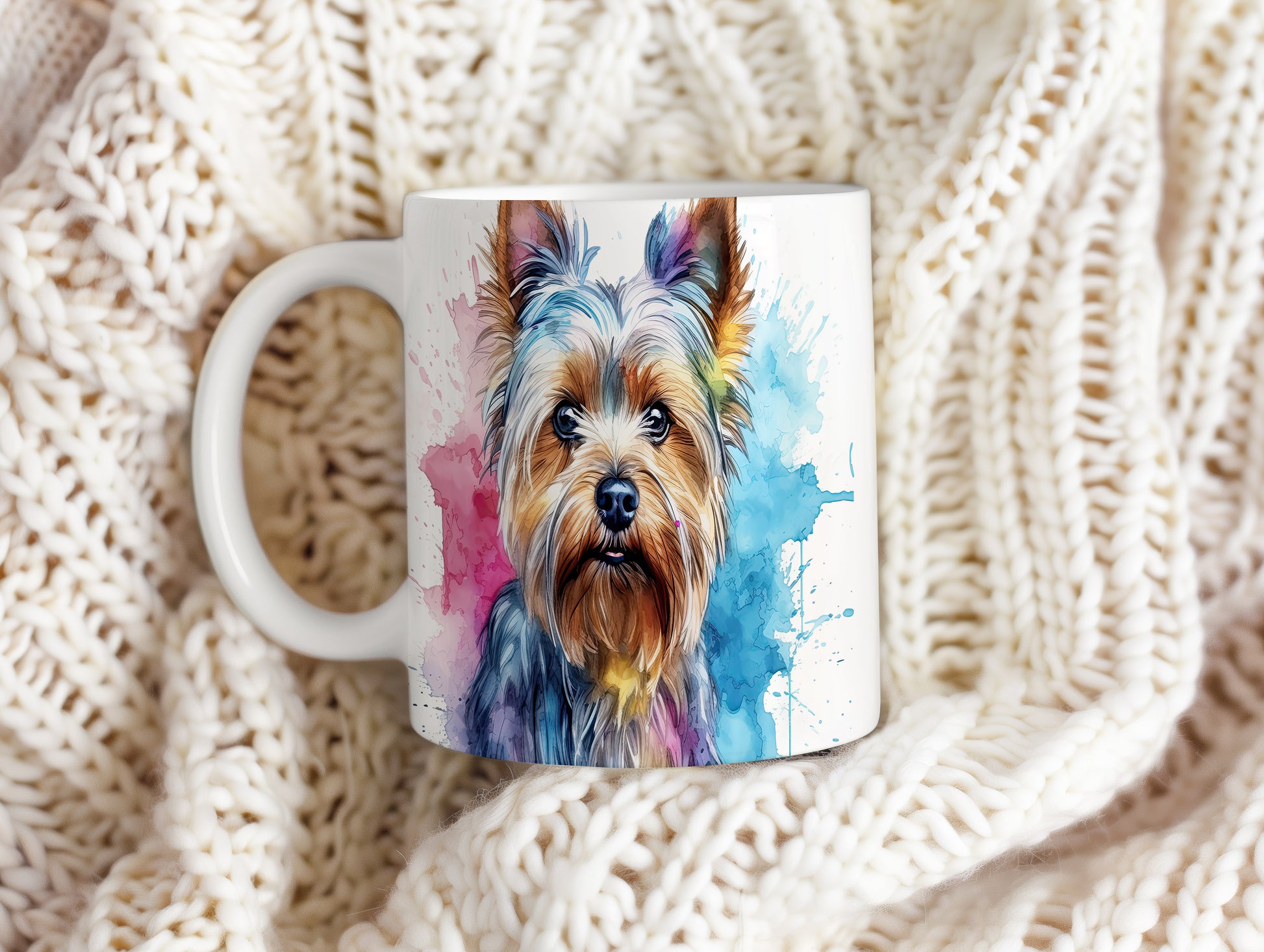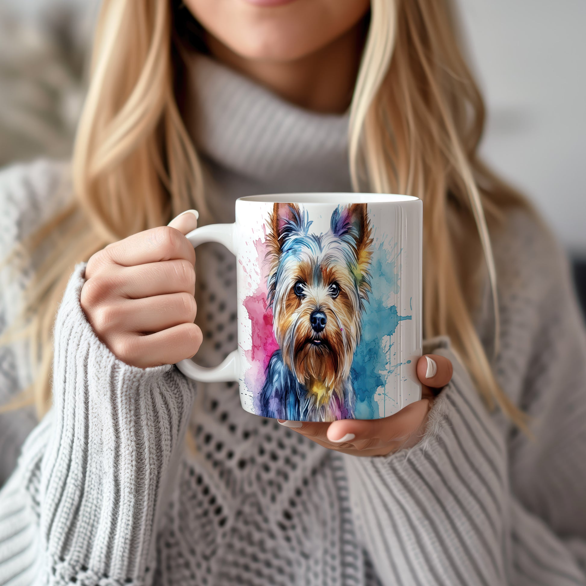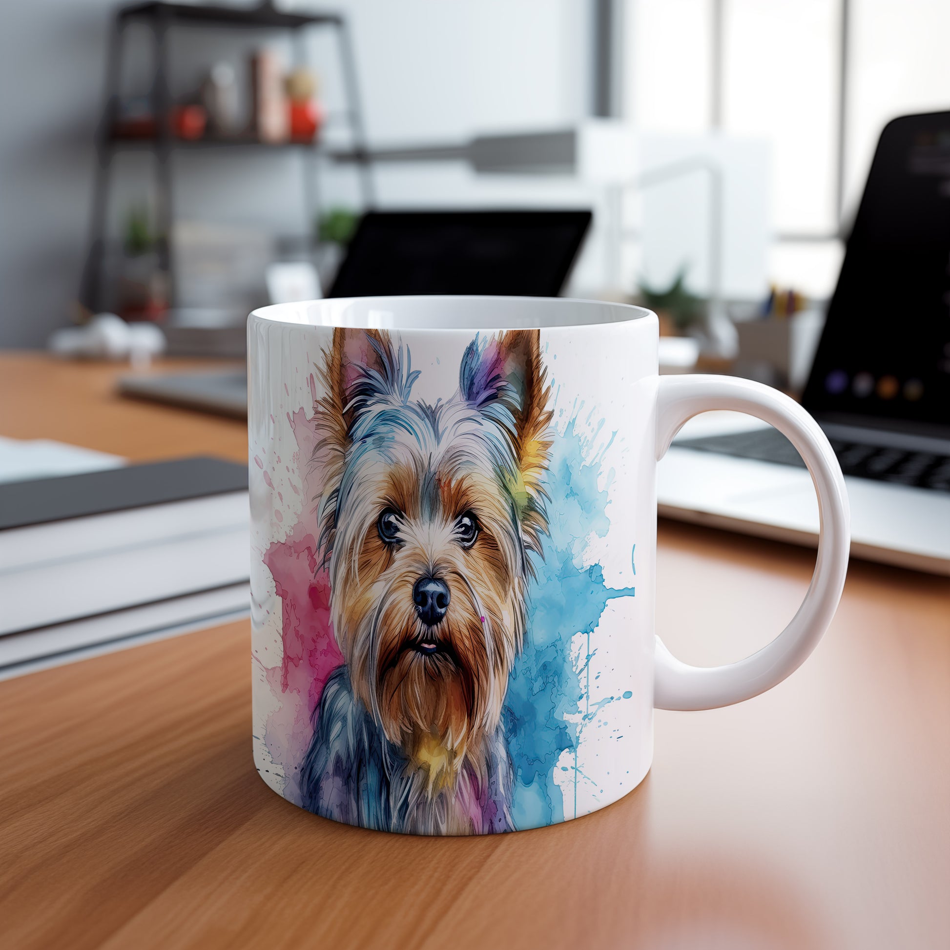 Keramický hrnek s barevným portrétem psa Yorkšírského teriéra. Tento motiv potěší všechny milovníky psů a je skvělým dárkem pro každého, kdo má rád tento roztomilý plemeno. Materiál: keramika. Objem: 330 ml. Vhodné do myčky i mikrovlnky. Užijte si kávu nebo čaj s tímto hrnkem a přidejte do svého dne trochu radosti.