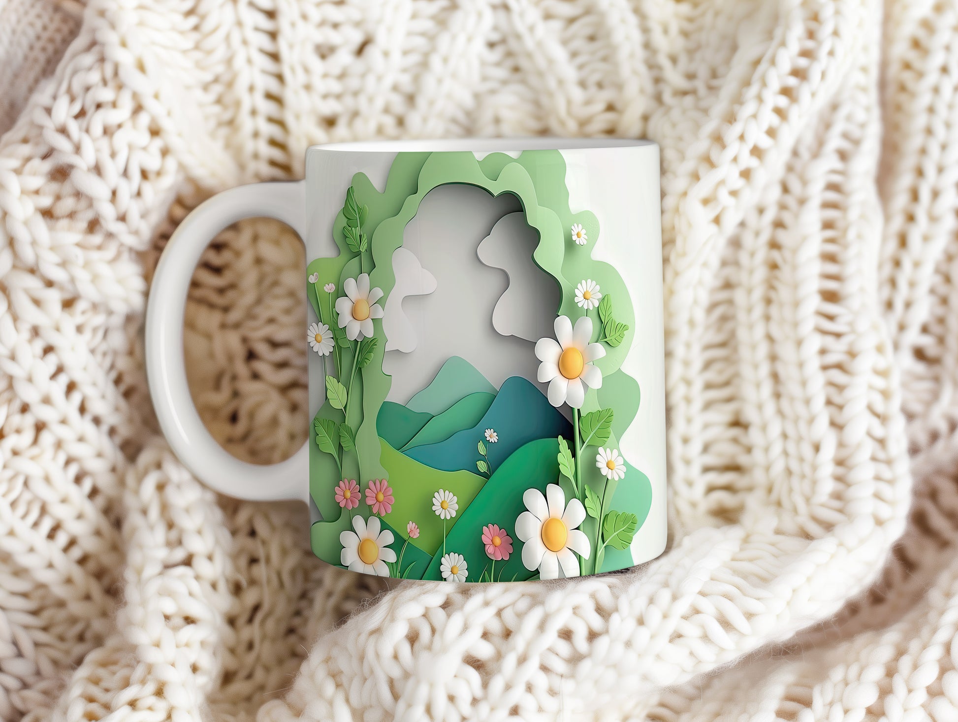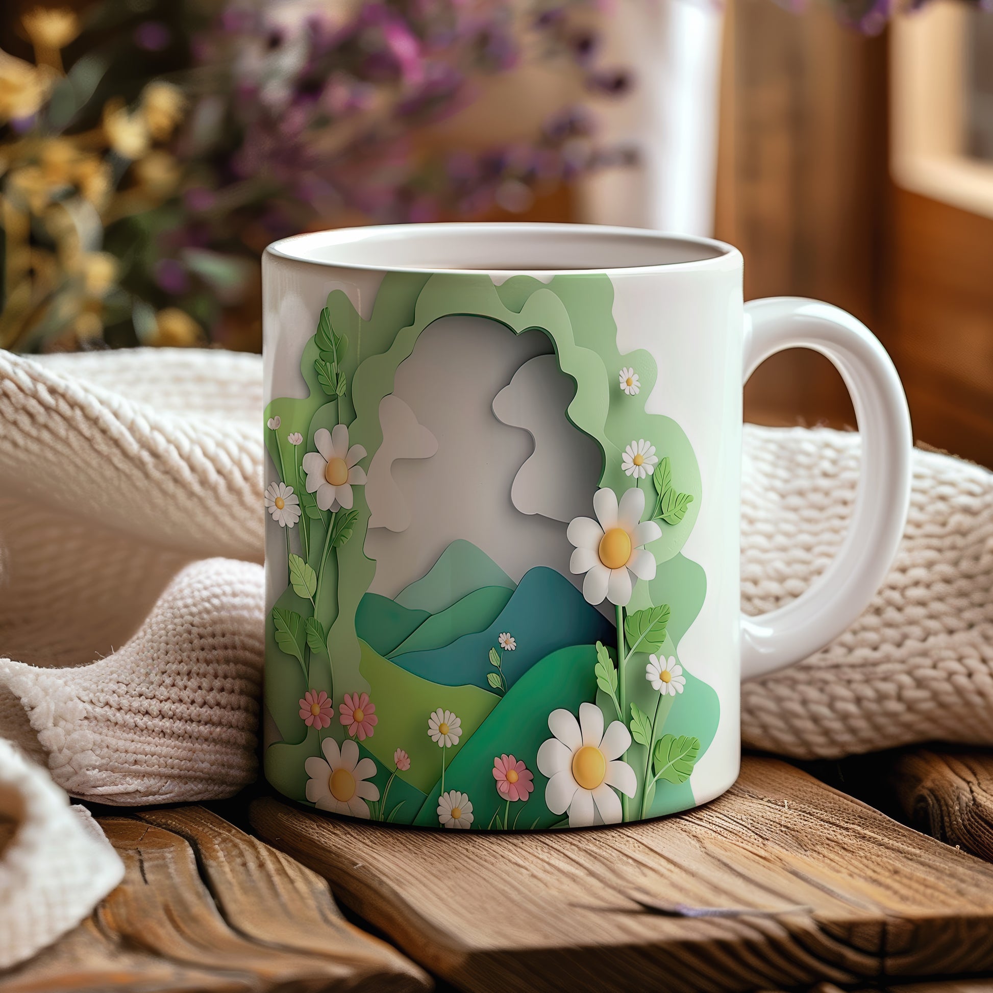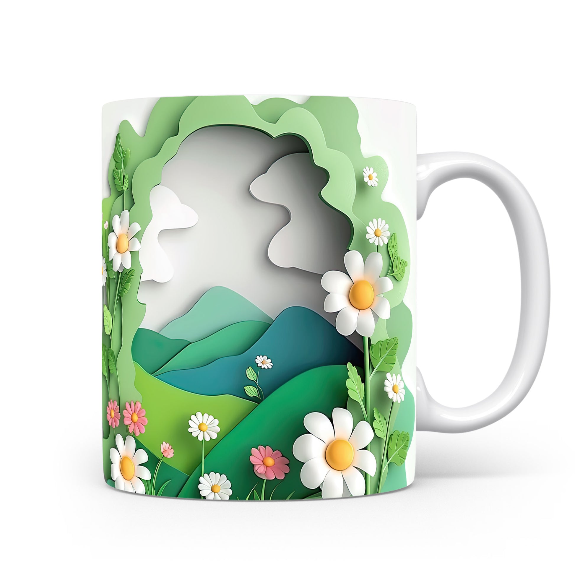 Tento hrnek zobrazuje nádhernou přírodní scenérii s květinami a kopci. Je ideální pro milovníky přírody a skvělým dárkem pro každého, kdo ocení krásu venkova. Materiál: keramika. Objem: 330 ml. Vhodné do myčky i mikrovlnky. Díky svému designu přináší do každodenního pití radost a pohodu.