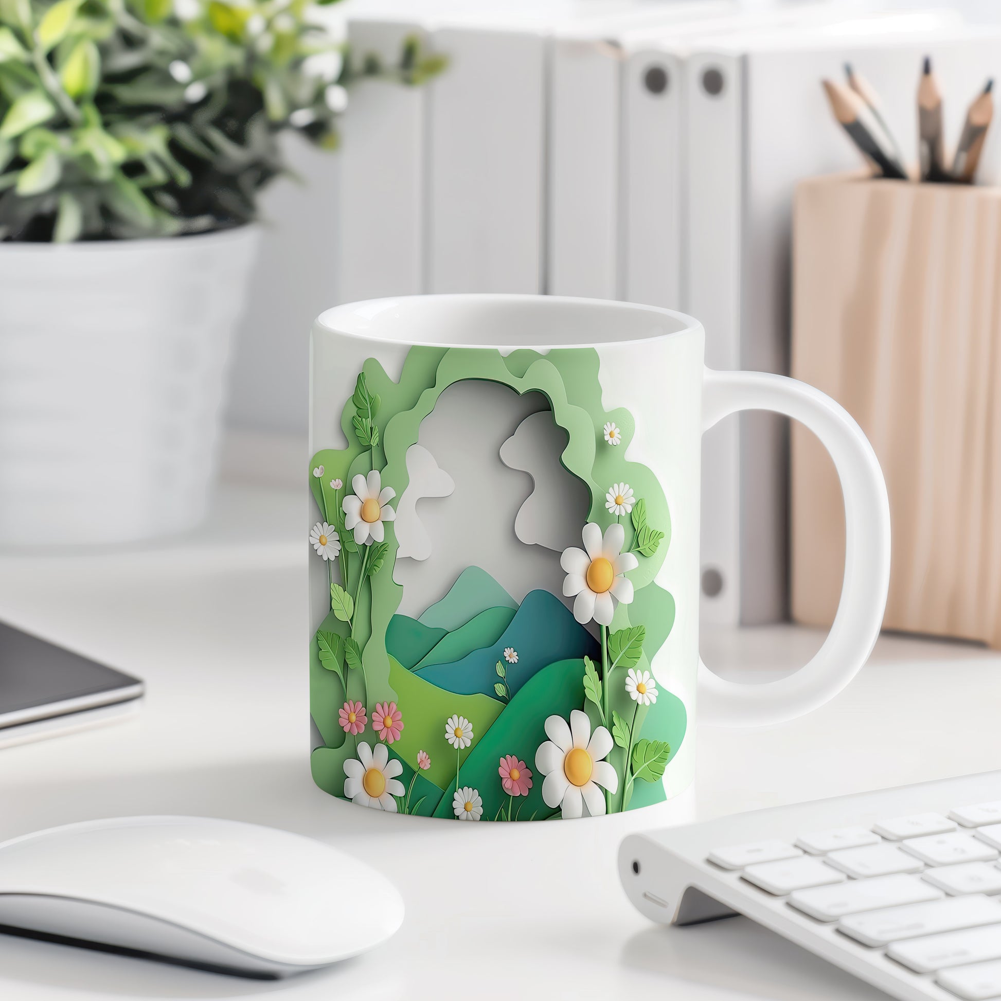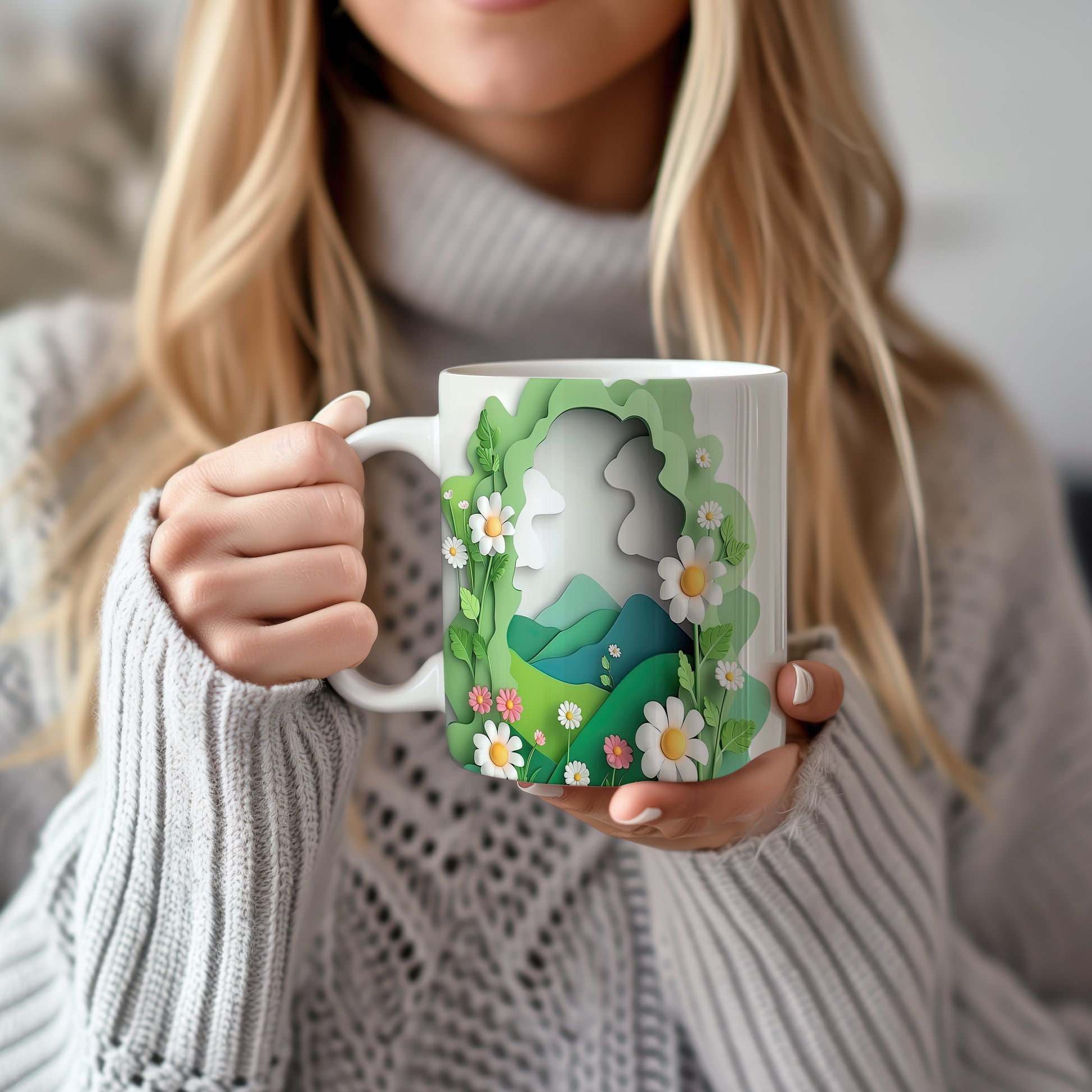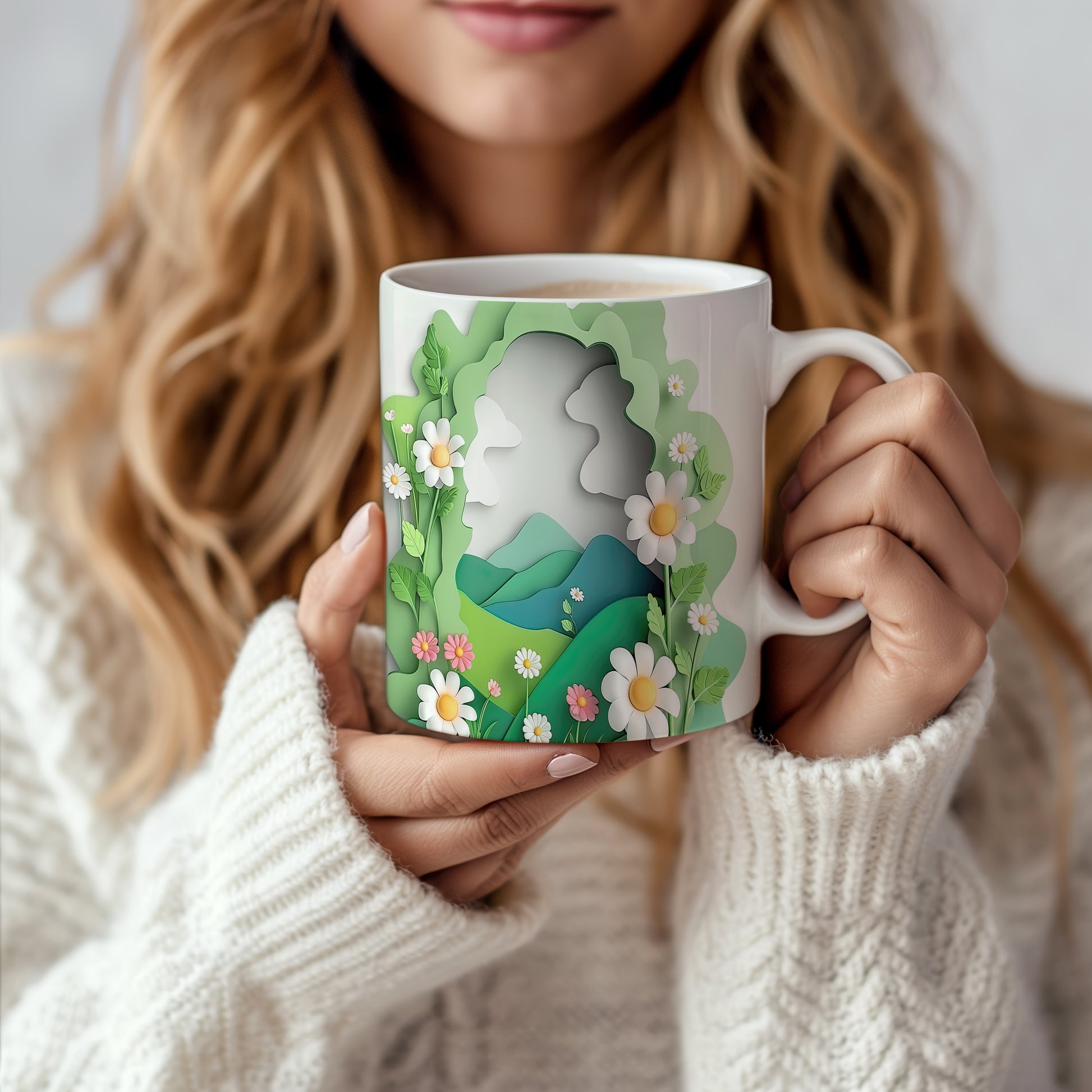 Tento hrnek zobrazuje nádhernou přírodní scenérii s květinami a kopci. Je ideální pro milovníky přírody a skvělým dárkem pro každého, kdo ocení krásu venkova. Materiál: keramika. Objem: 330 ml. Vhodné do myčky i mikrovlnky. Díky svému designu přináší do každodenního pití radost a pohodu.