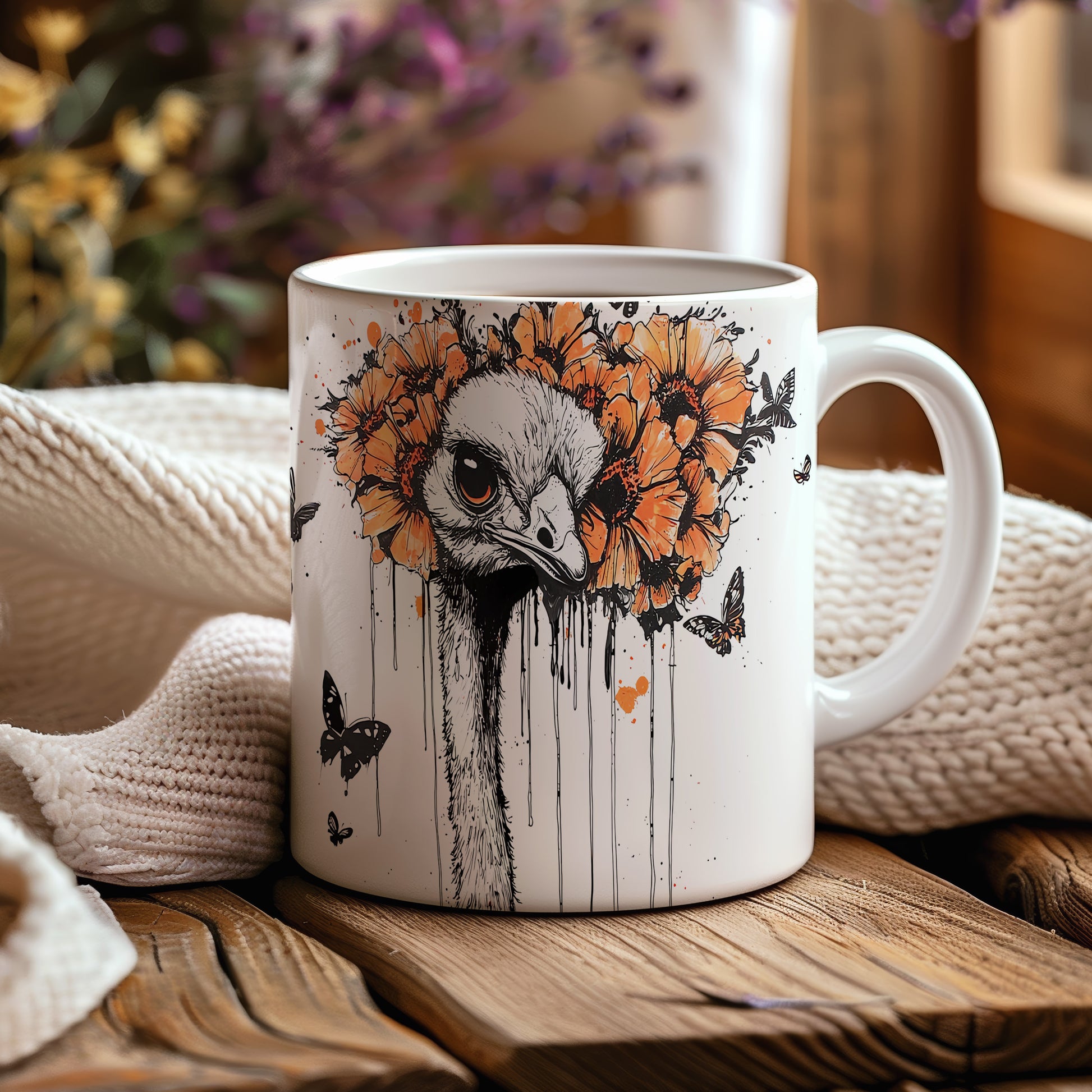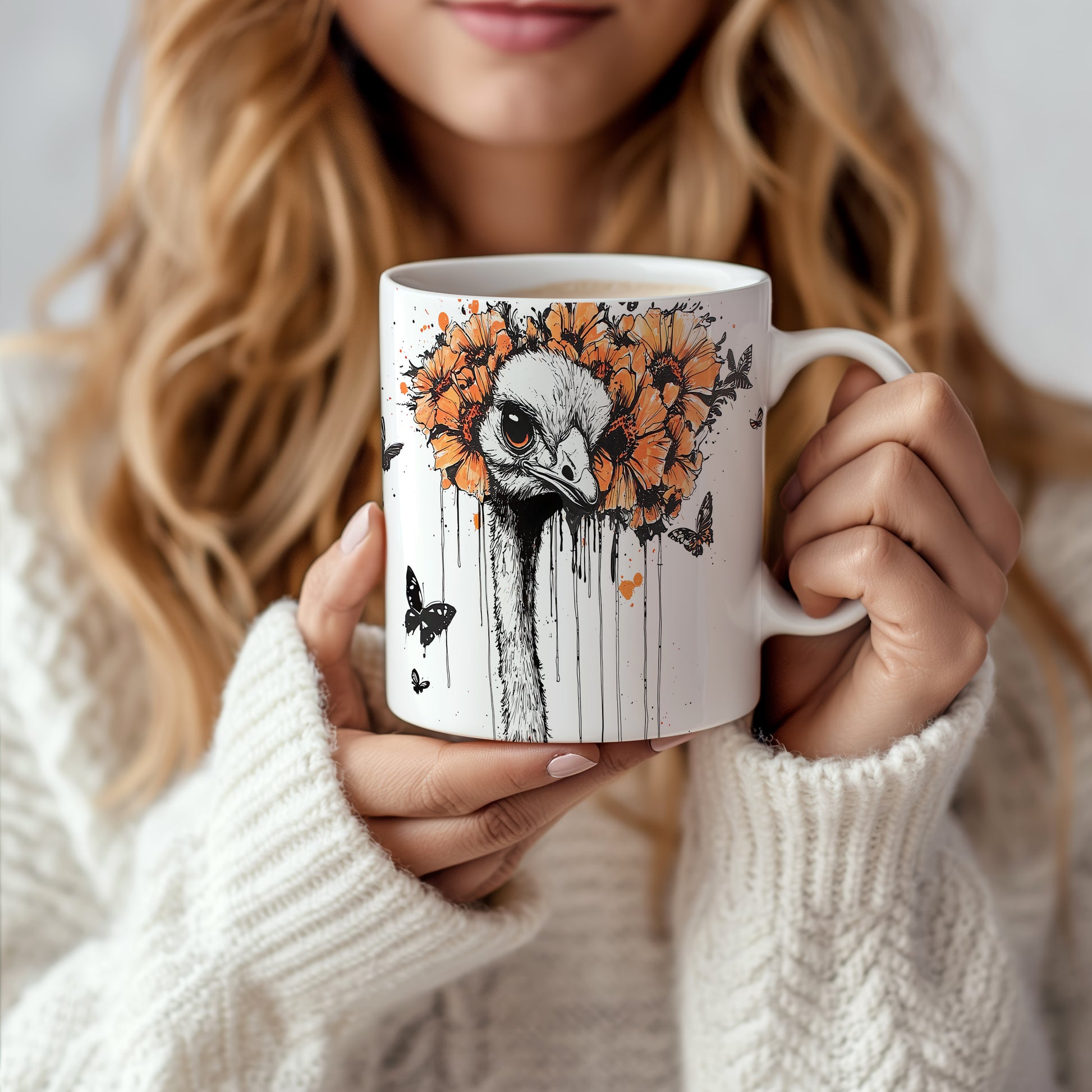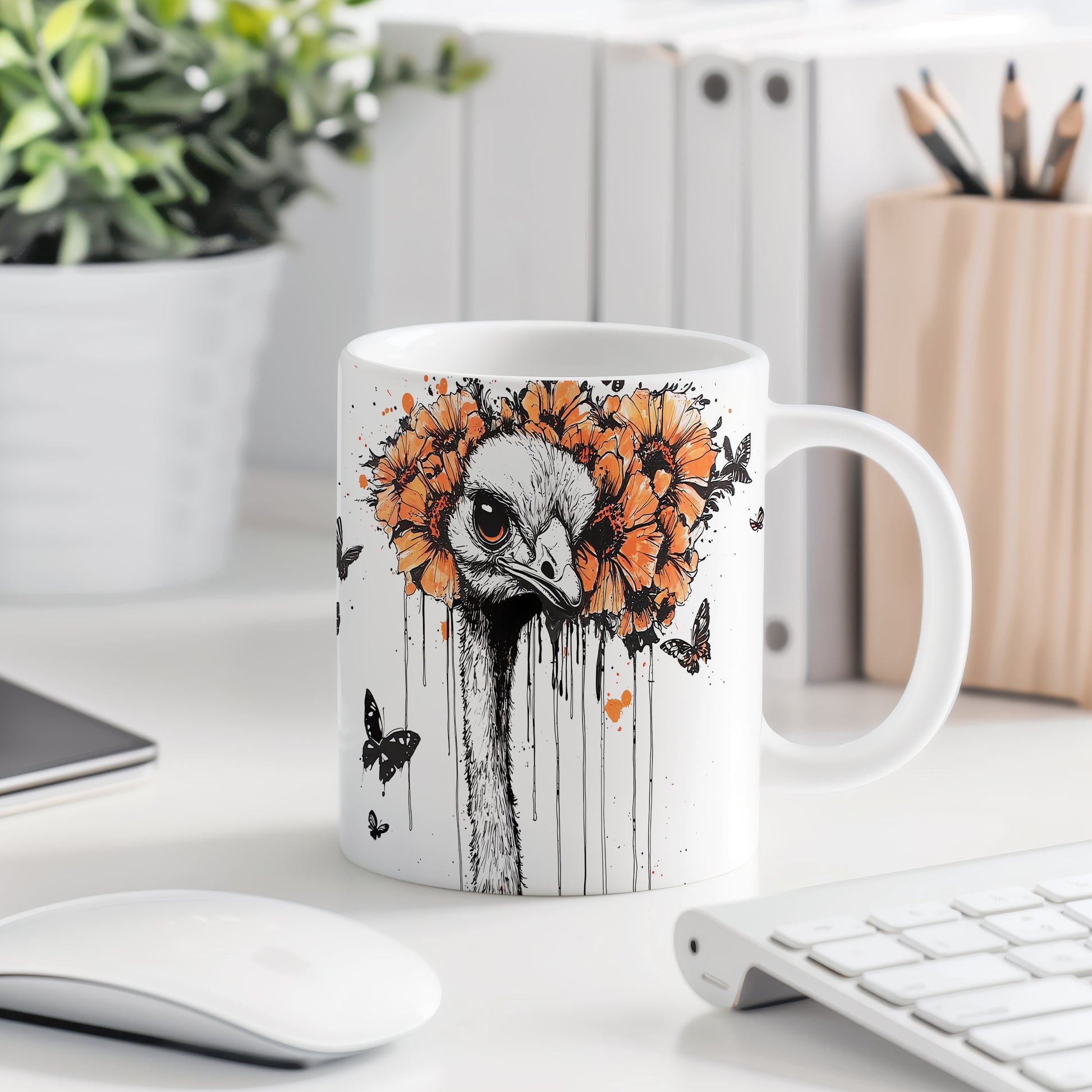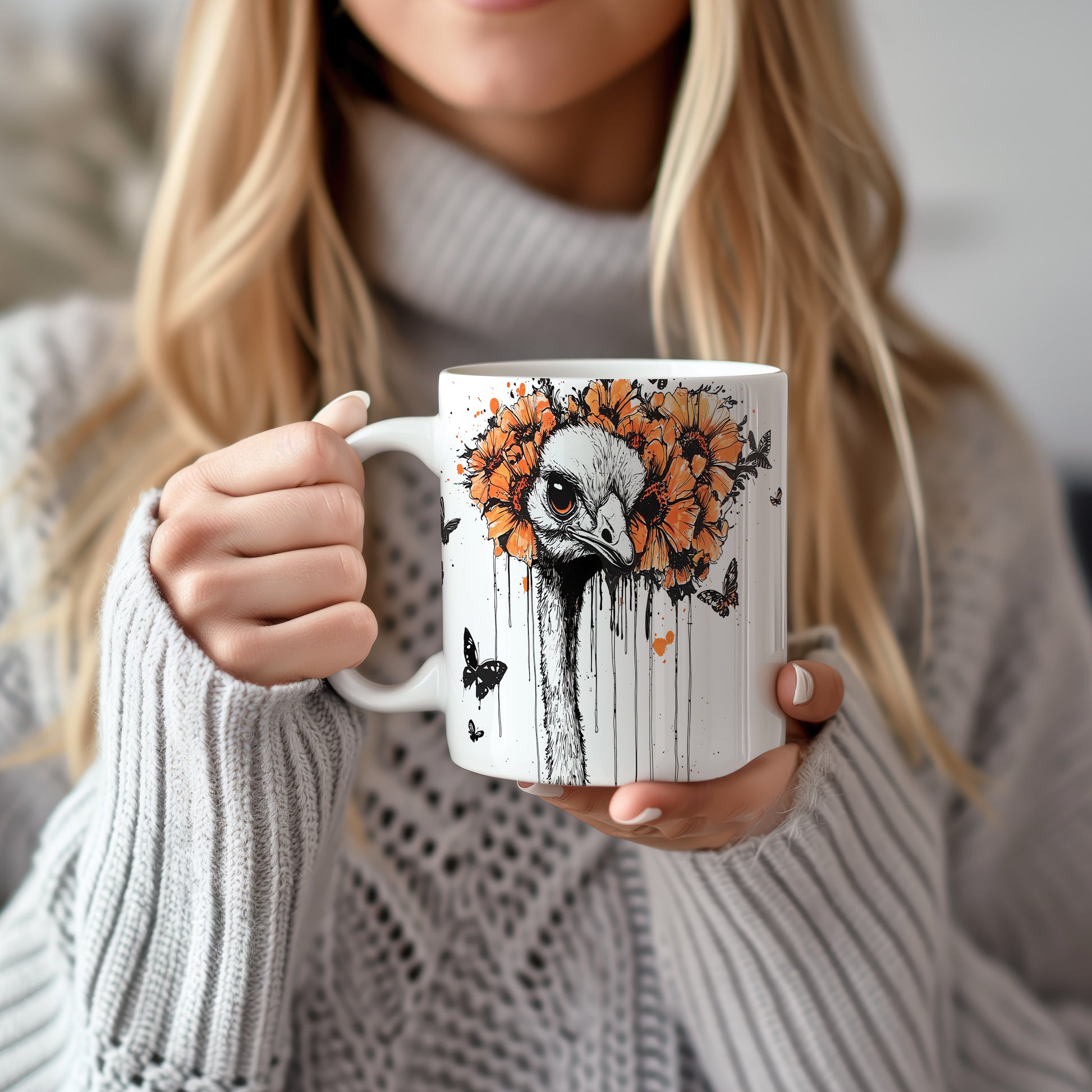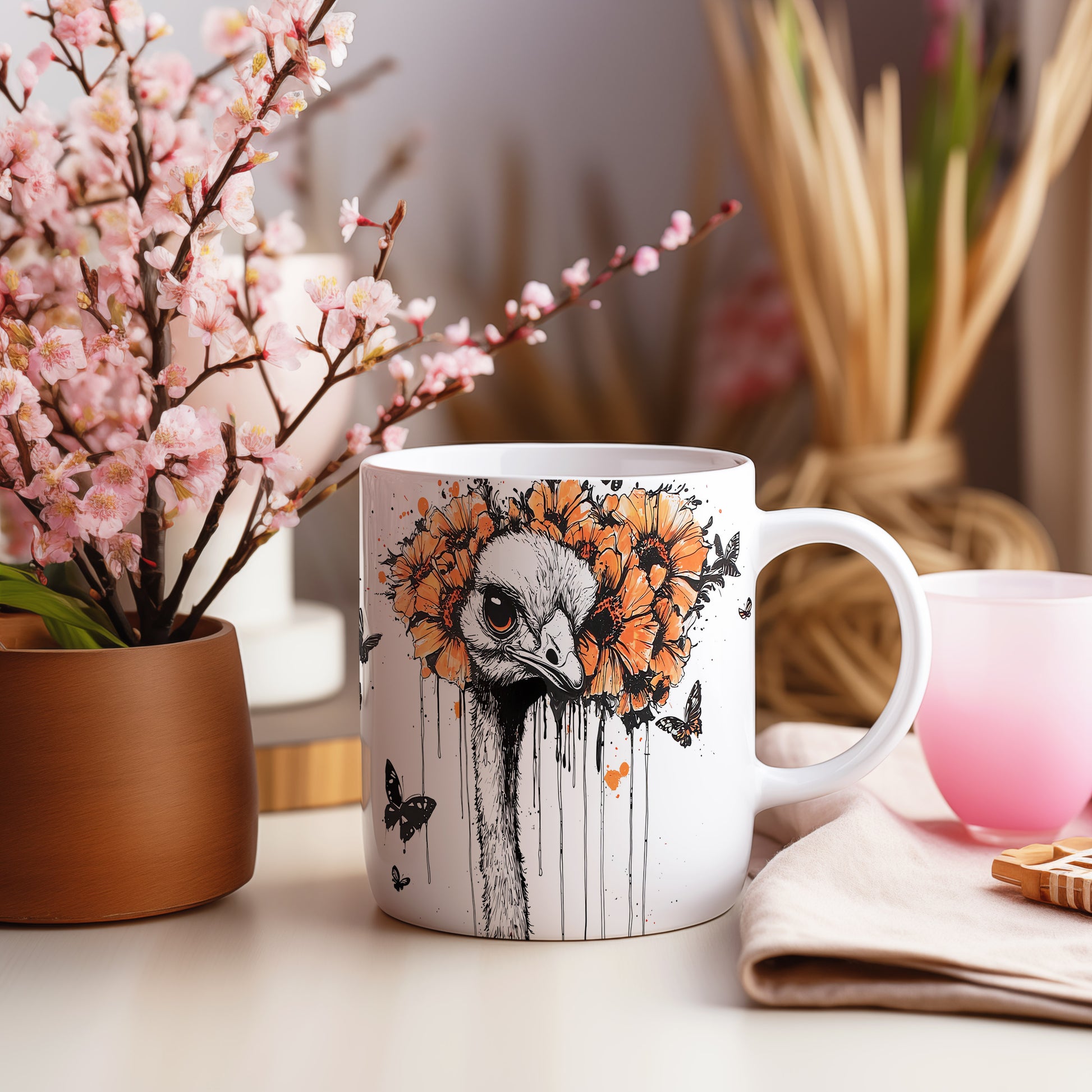 Tento keramický hrnek s pštrosem a květinovým vzorem je ideální pro milovníky přírody. Skvěle se hodí jako dárek pro přátele nebo rodinu, kteří ocení originální design. Materiál: keramika. Objem: 330 ml. Vhodné do myčky i mikrovlnky. Díky svému objemu je perfektní pro každodenní pití oblíbených nápojů.