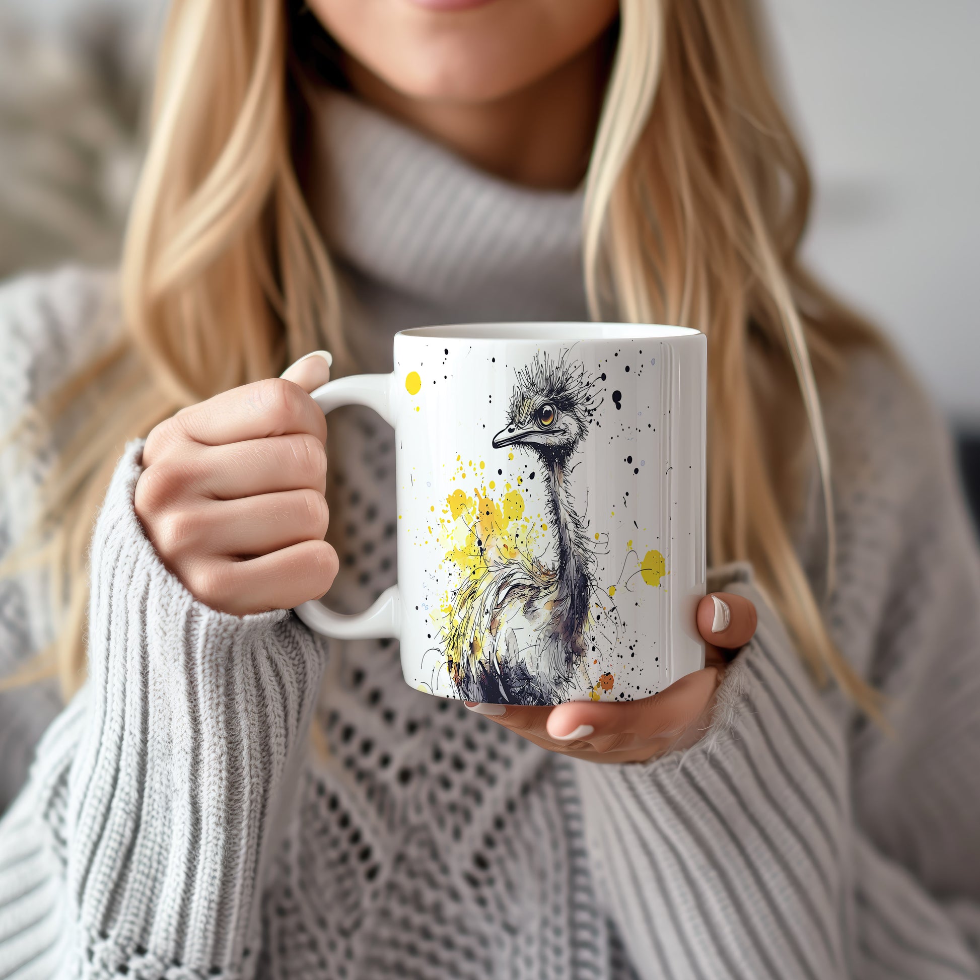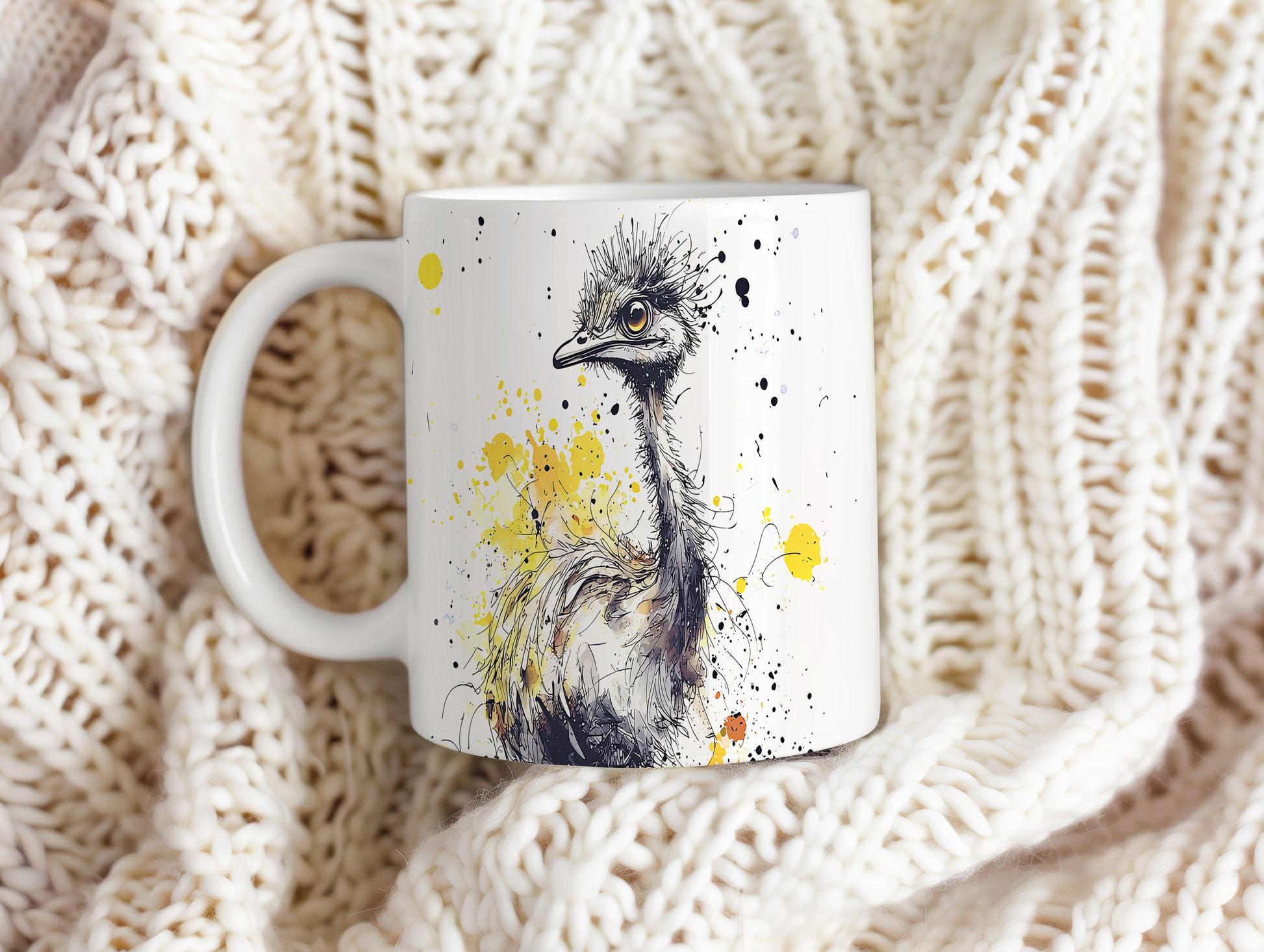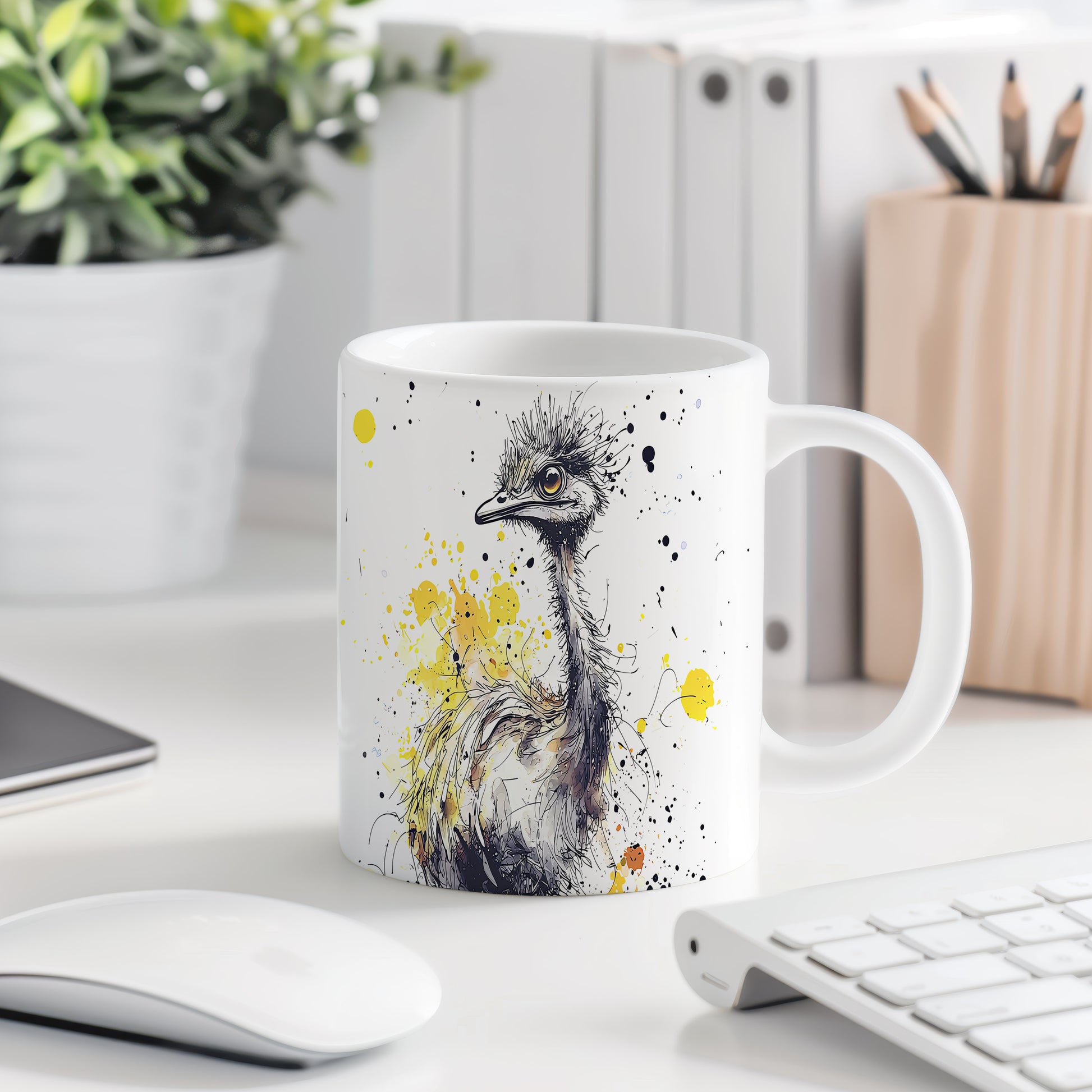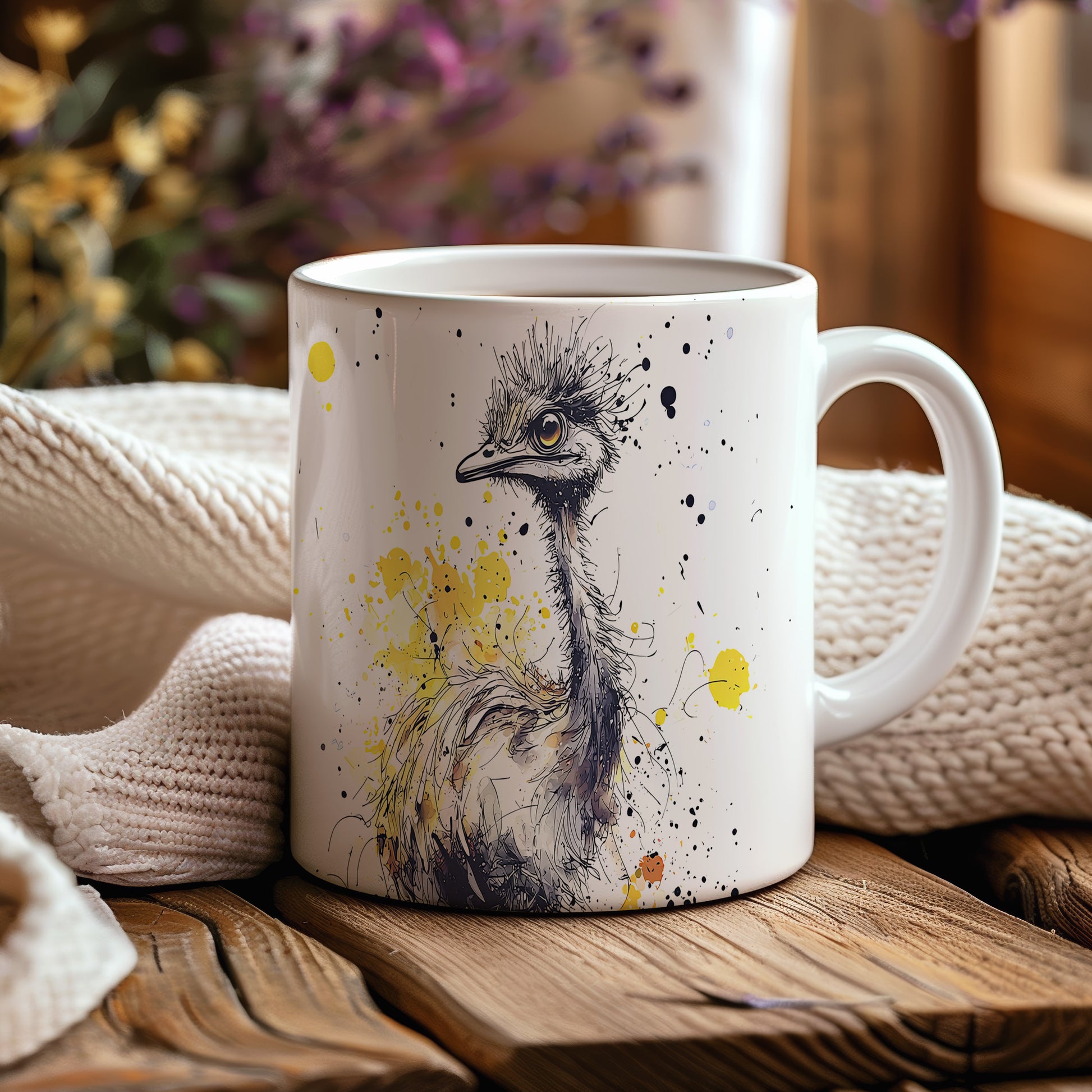 Hrnek s motivem pštrosa na barevném pozadí přináší hravou atmosféru. Je ideální pro milovníky zvířat a originálních designů, skvělý tip na dárek pro přátele nebo rodinu. Materiál: keramika. Objem: 330 ml. Vhodné do myčky i mikrovlnky. Tento hrnek dodá každému nápoji jedinečný šarm a potěší vás při každém doušku.