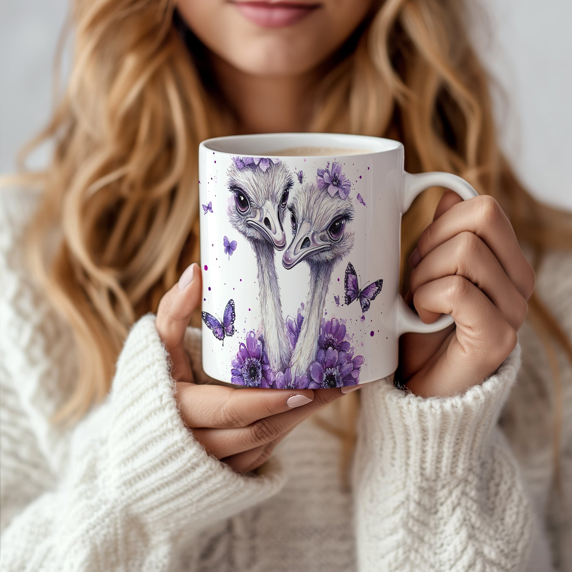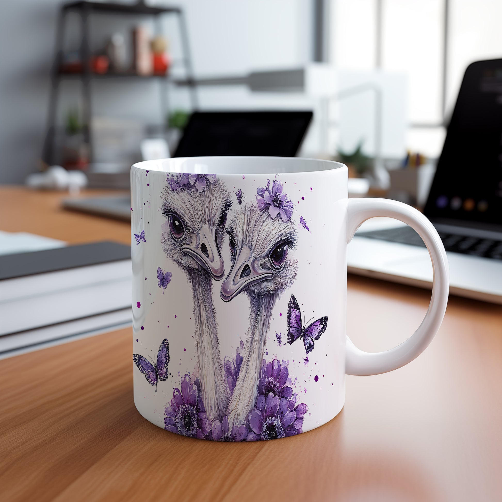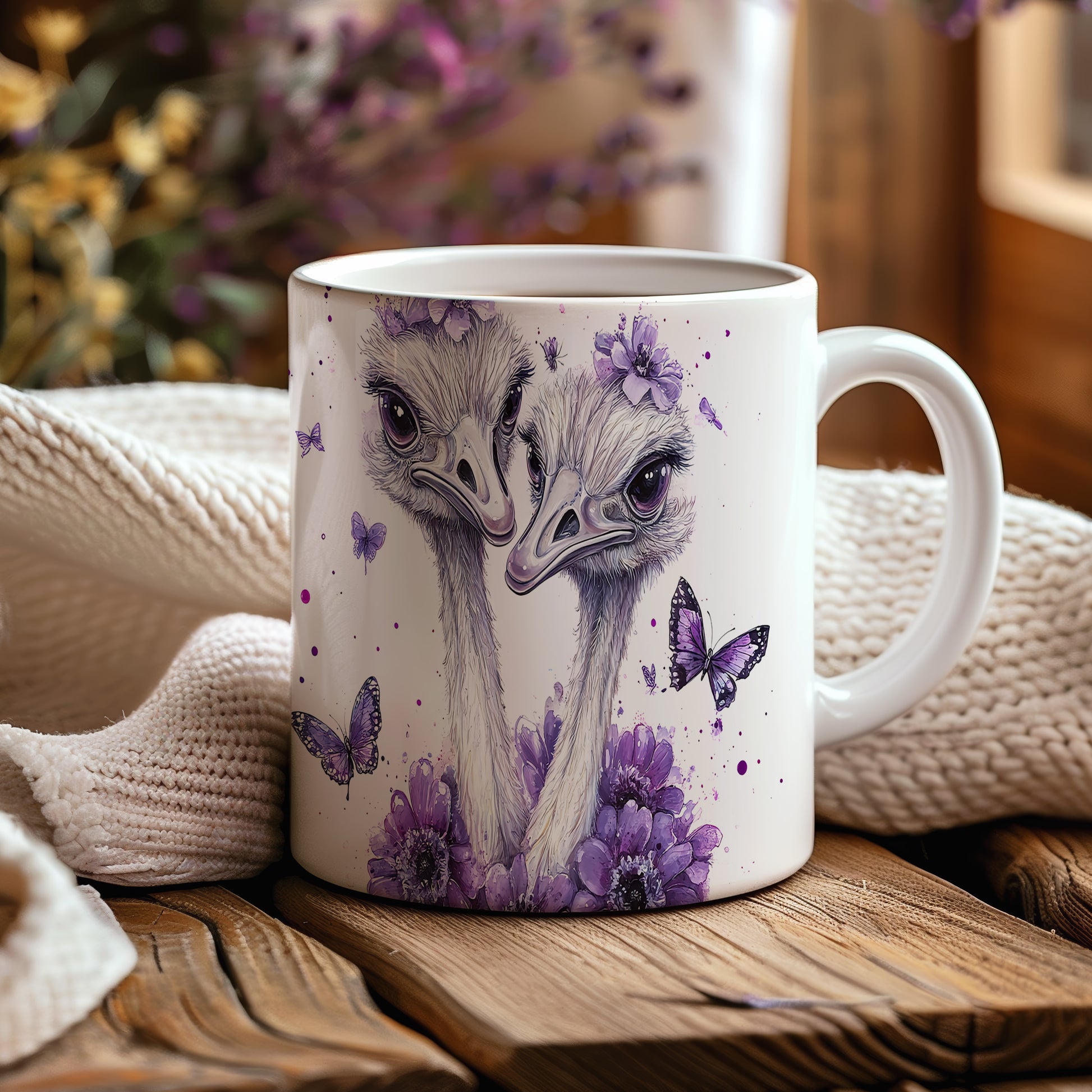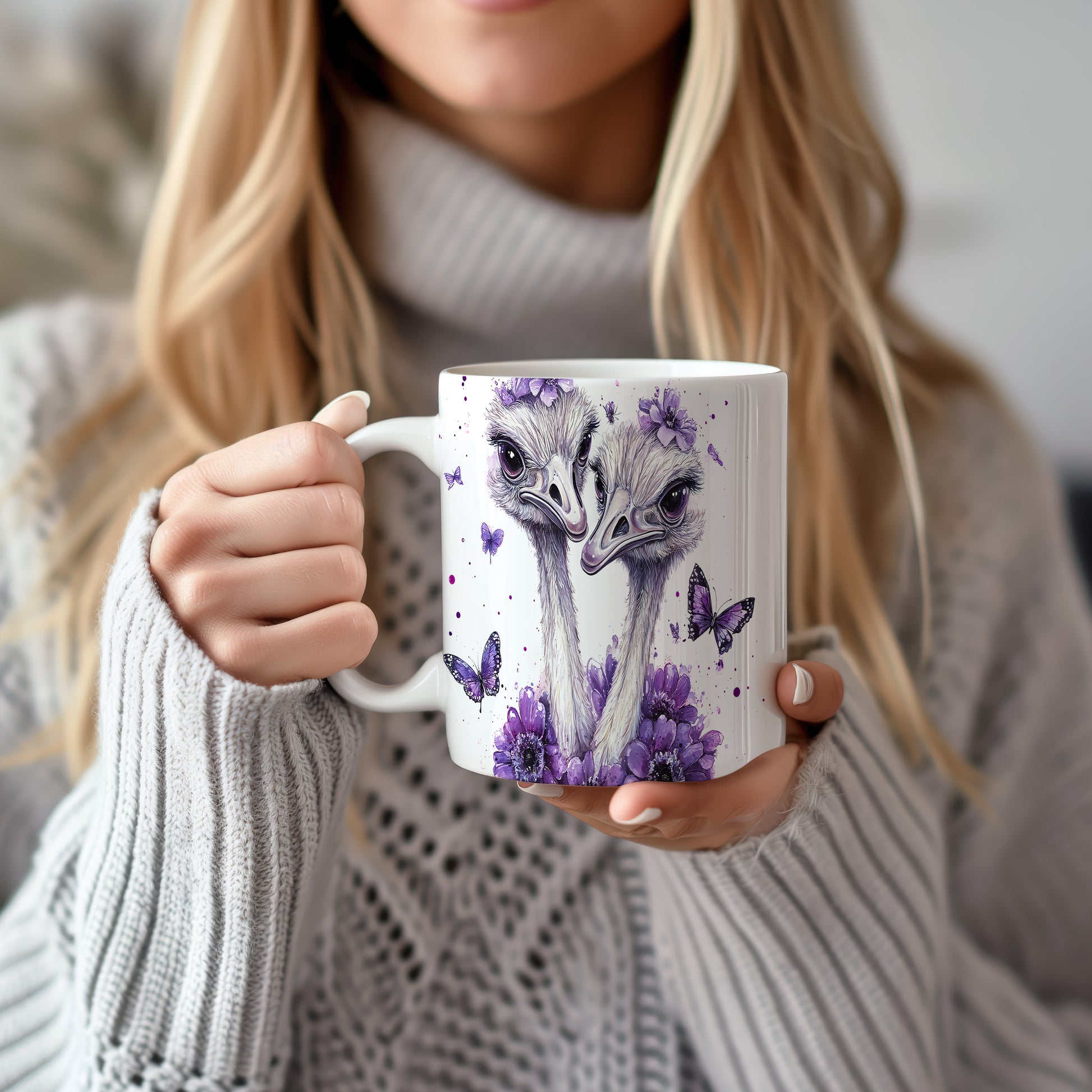 Hrnek s pštrosy a květinami je krásným keramickým kouskem, který potěší každého milovníka přírody. Tento hrnek je skvělým dárkem pro přátele nebo rodinu na různé příležitosti. Materiál: keramika. Objem: 330 ml. Vhodné do myčky i mikrovlnky. Díky svému designu přináší radost do každodenního pití.