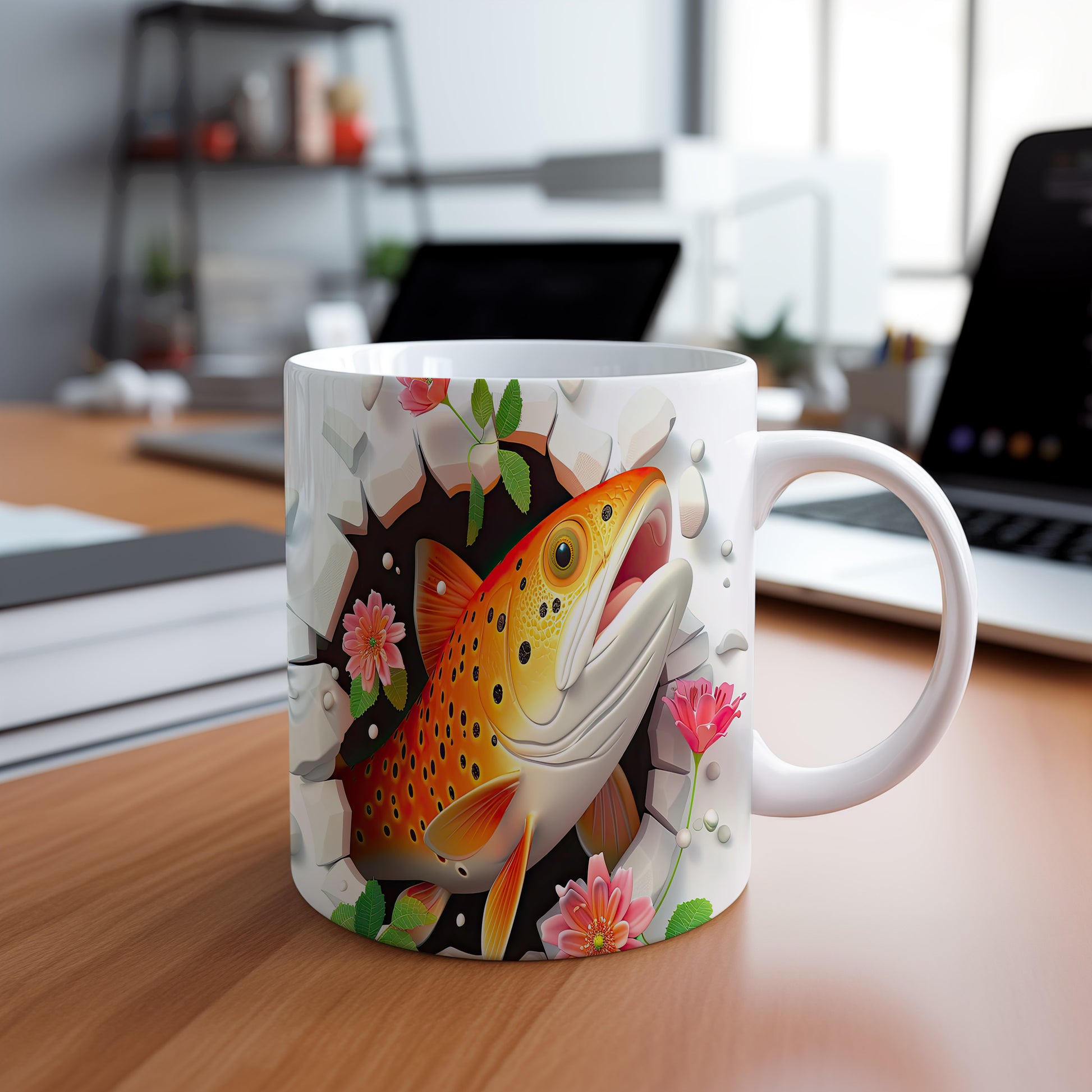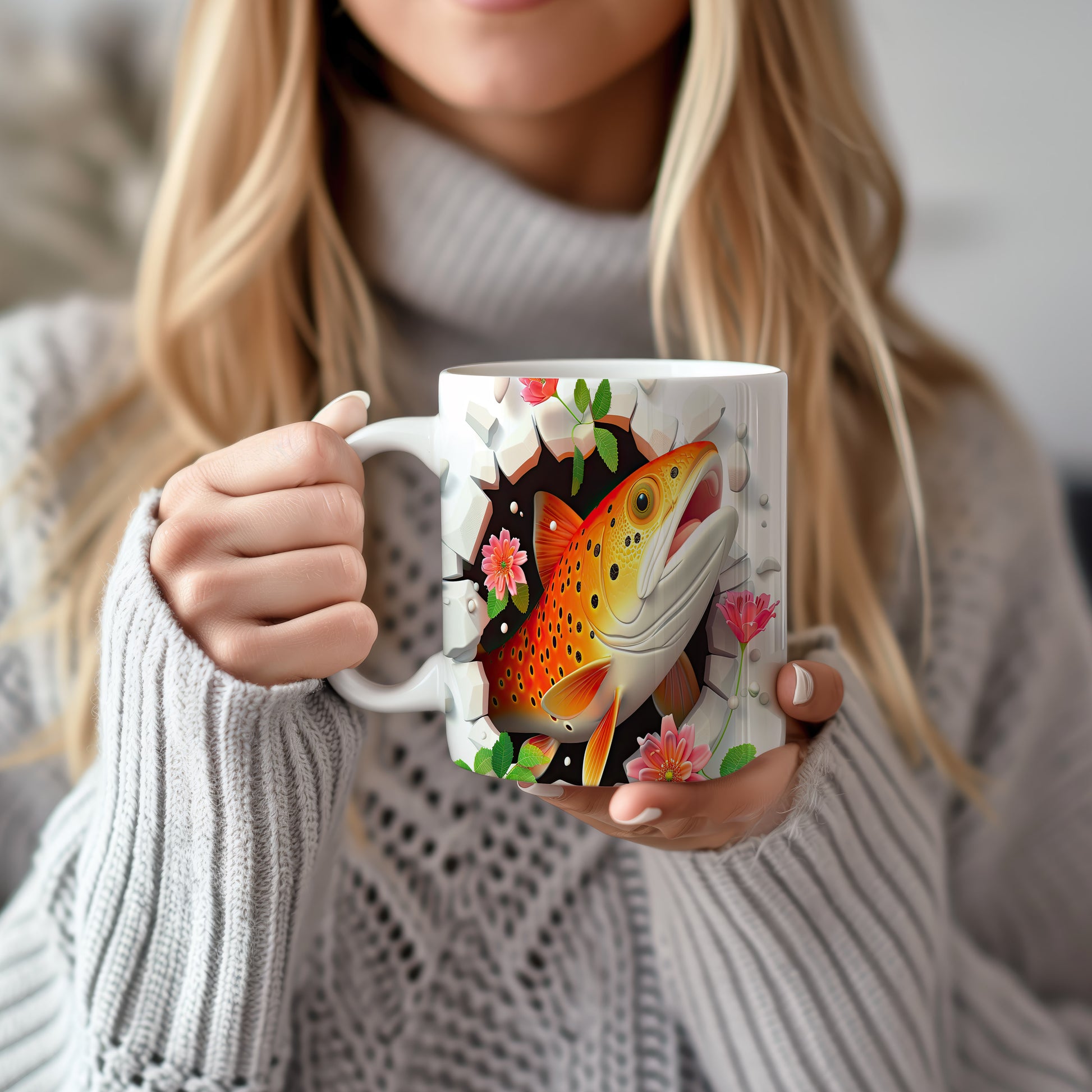 Hrnek s motivem pstruha a květin je skvělou volbou pro milovníky přírody. Tento keramický hrnek o objemu 330 ml potěší každého rybáře a je ideálním dárkem pro všechny, kdo mají rádi vodní svět. Materiál: keramika. Objem: 330 ml. Vhodné do myčky i mikrovlnky. Užijte si kávu nebo čaj s tímto jedinečným designem, který přináší přírodní atmosféru do vašeho domova.