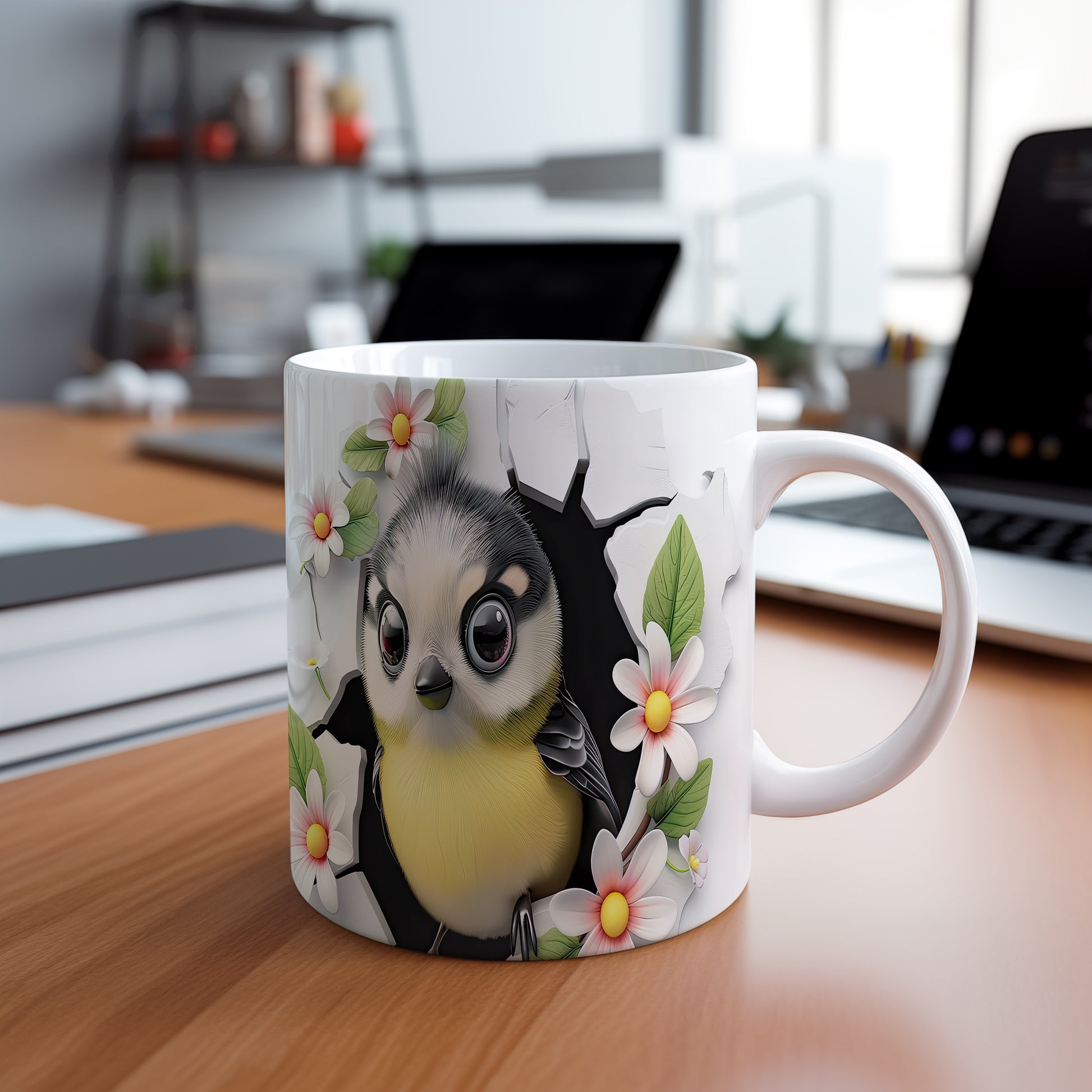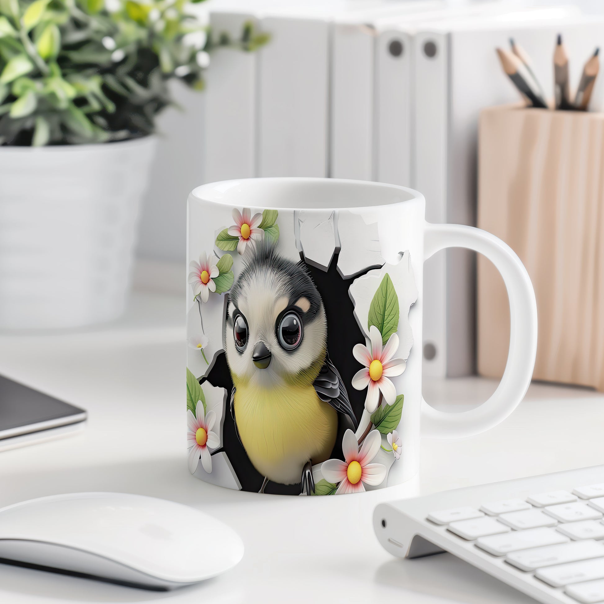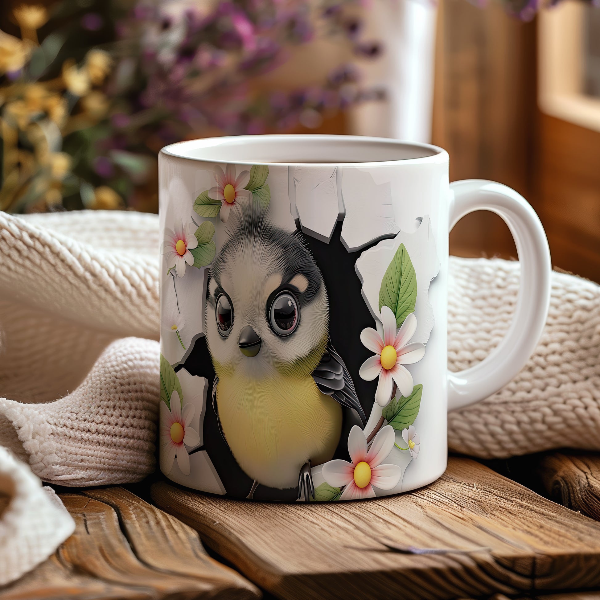 Hrnek s motivem ptáčka obklopeného květinami je ideálním doplňkem pro milovníky přírody. Tento hrnek potěší každého, kdo hledá originální dárek pro své blízké. Materiál: keramika. Objem: 330 ml. Vhodné do myčky i mikrovlnky. Používání tohoto hrnku přináší radost a oživuje každodenní chvíle s oblíbeným nápojem.