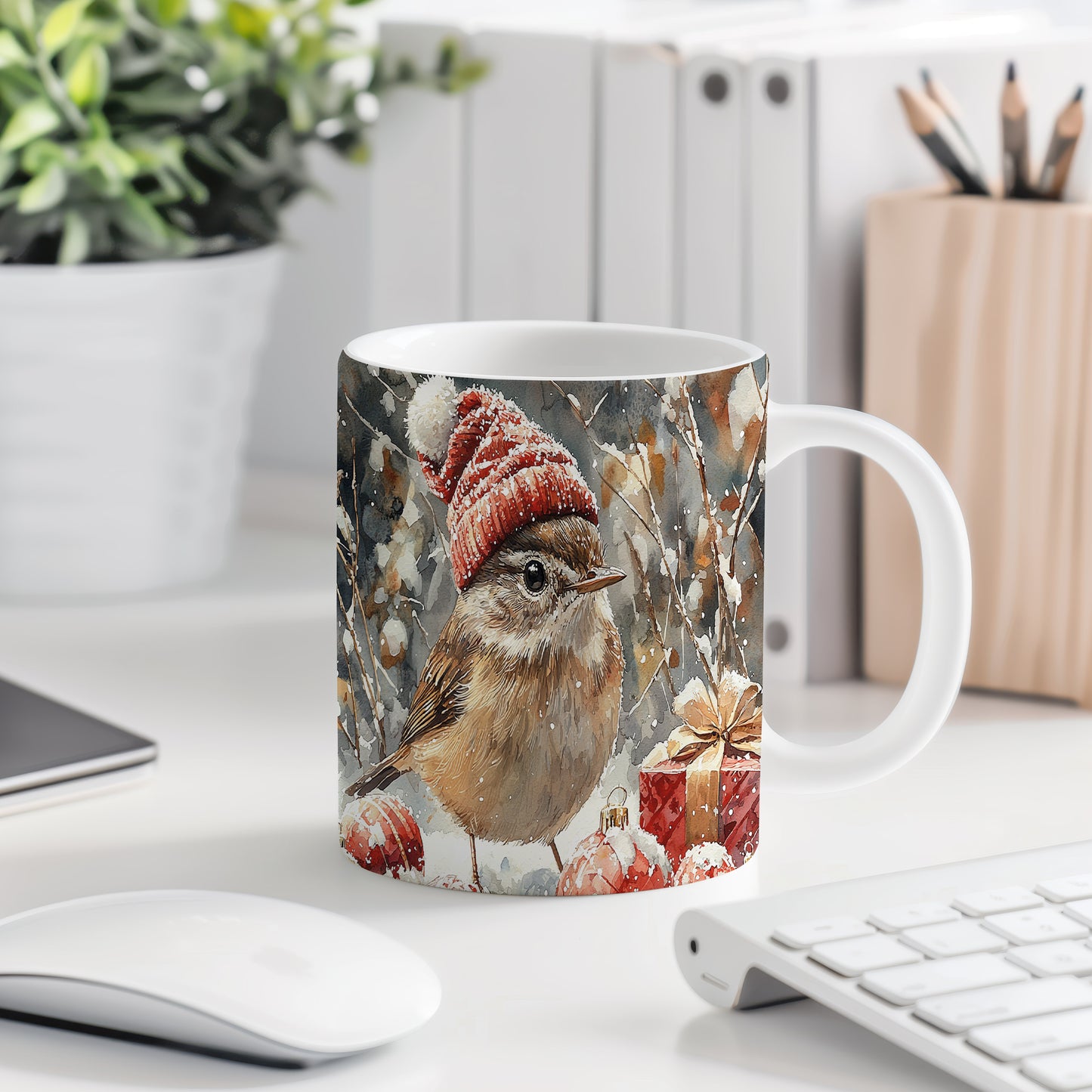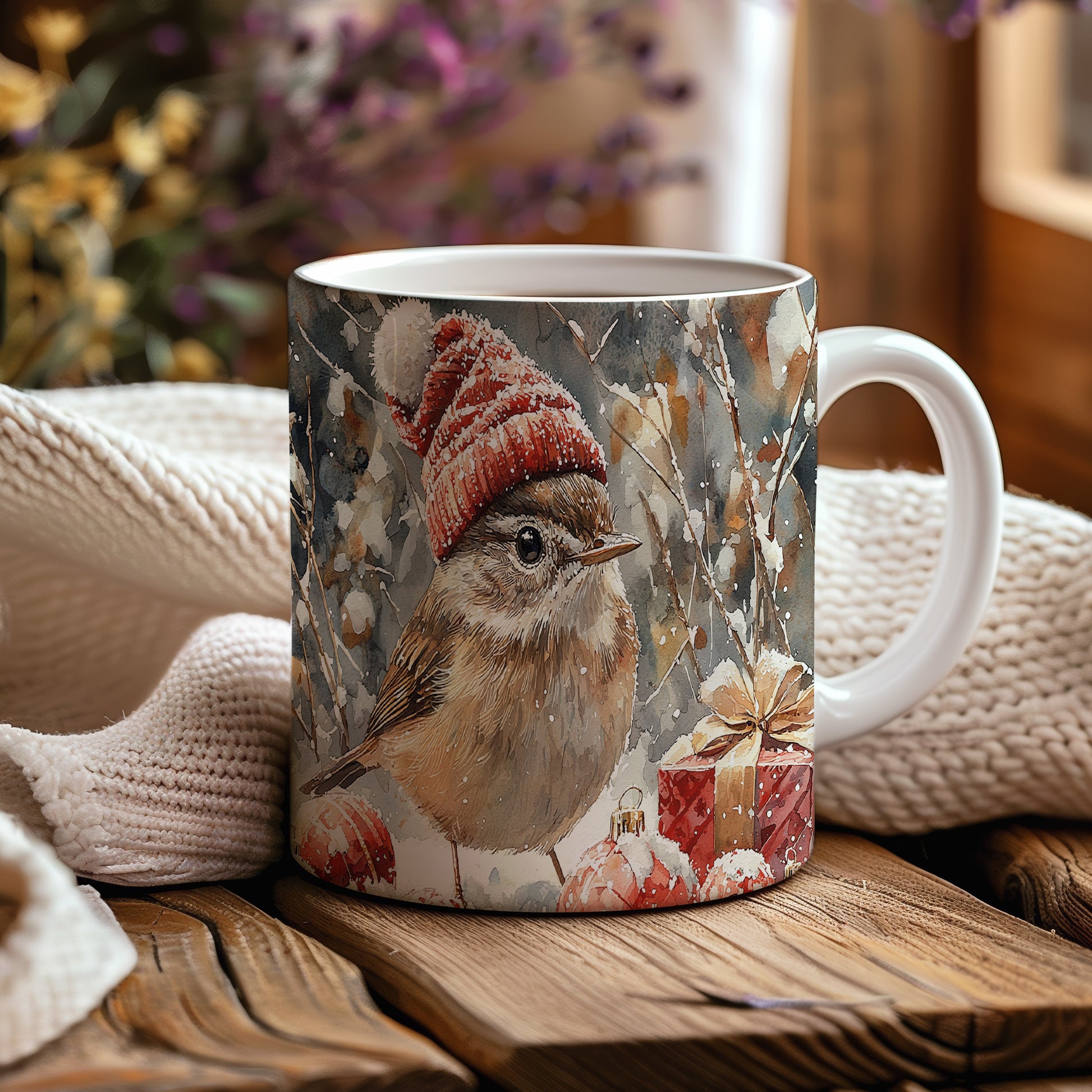 Hrnek s motivem ptáčka v čepici, který evokuje vánoční atmosféru. Tento hrnek je skvělým dárkem pro milovníky zimních radovánek a vánočních svátků. Materiál: keramika. Objem: 330 ml. Vhodné do myčky i mikrovlnky. Užívejte si teplé nápoje v příjemném stylu.