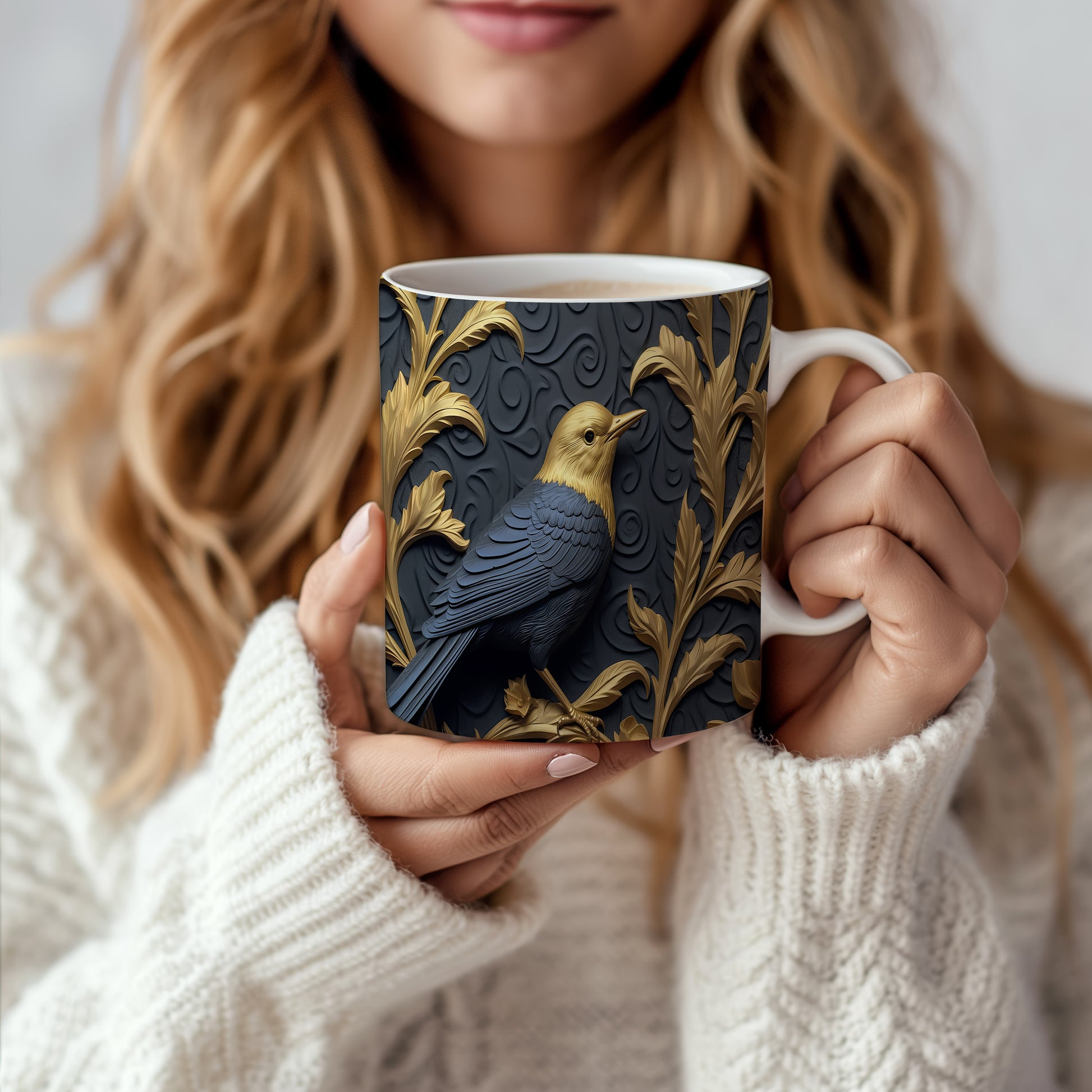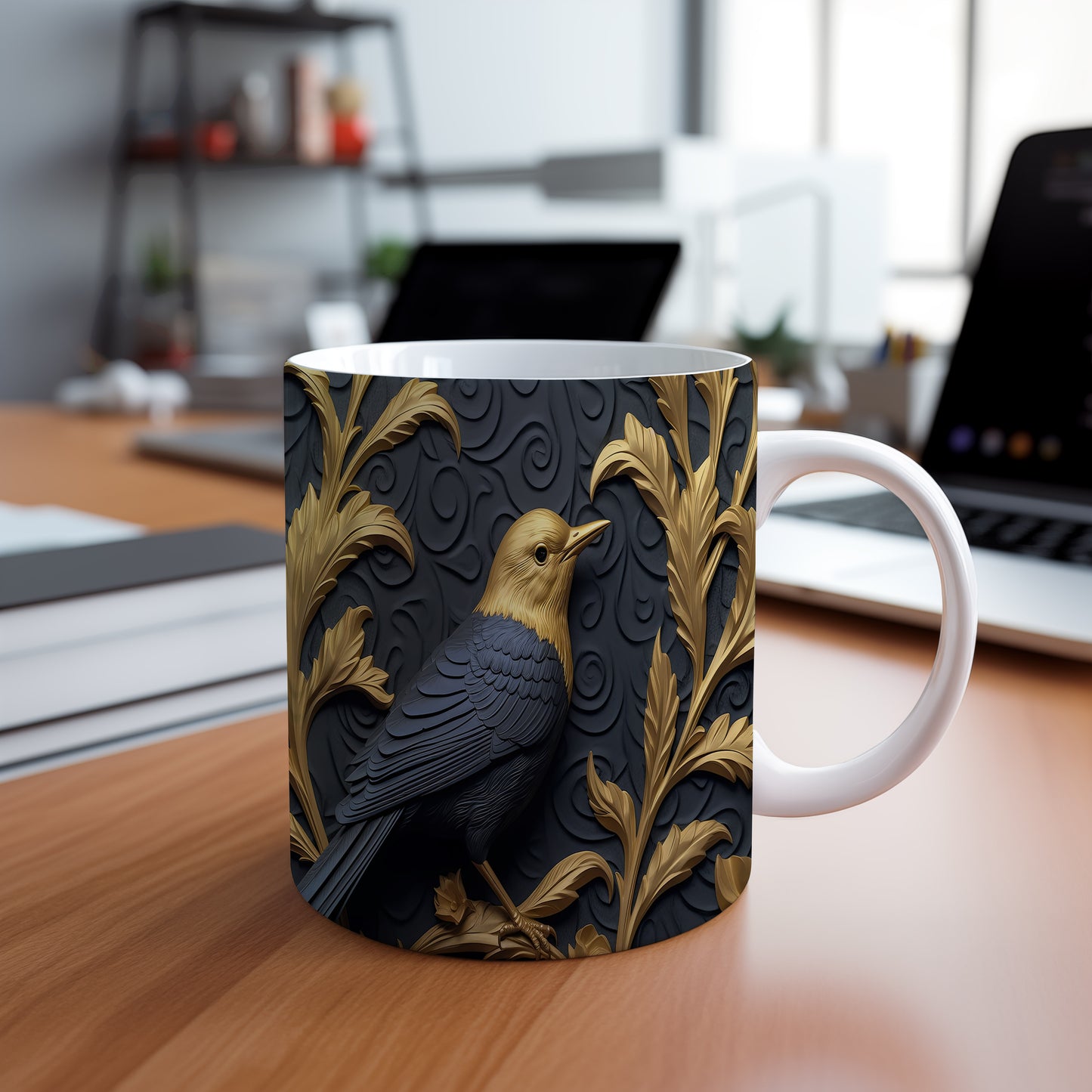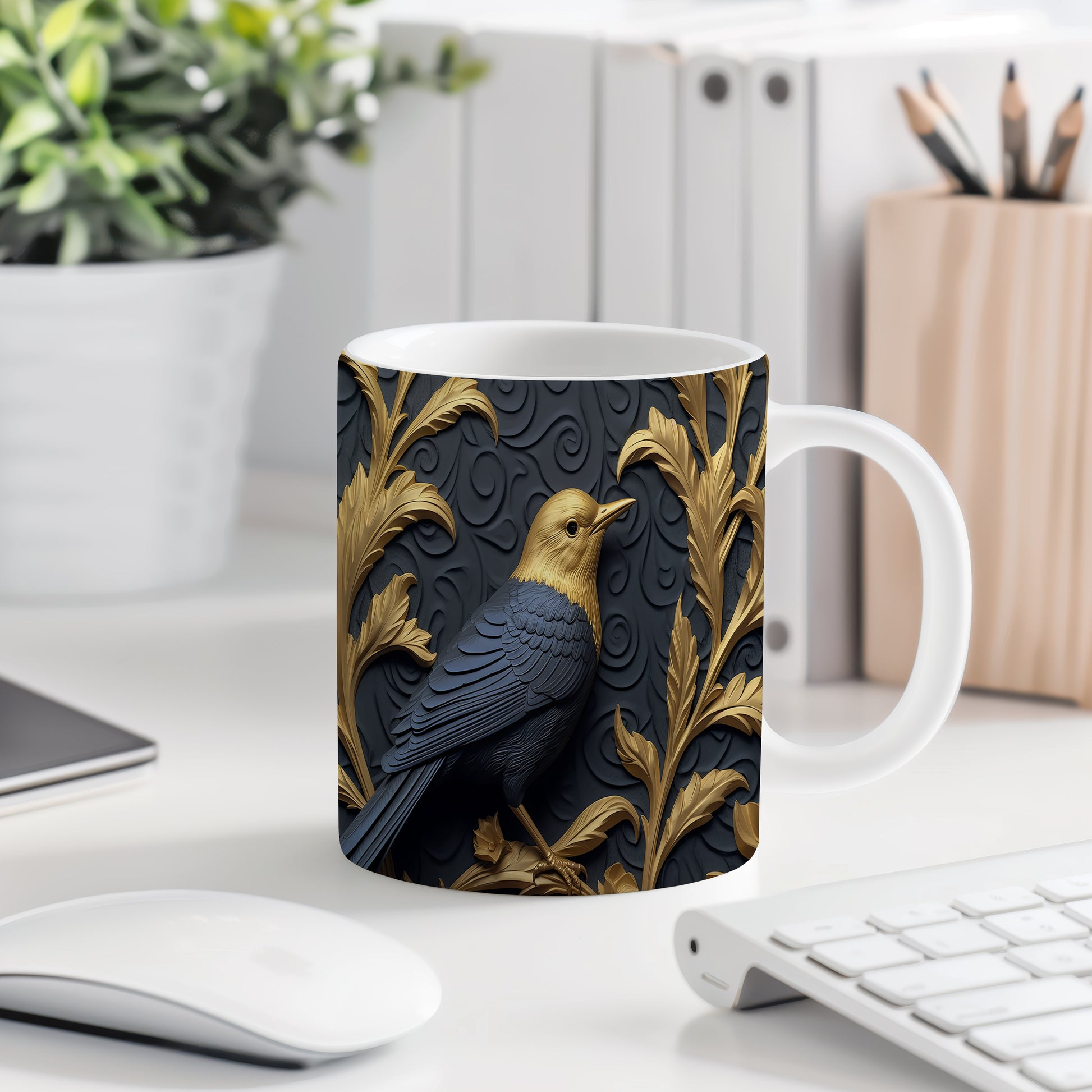 Keramický hrnek s motivem ptáka na zlatém pozadí, elegantní a stylový. Tento hrnek je ideální pro milovníky přírody a skvělý dárek pro přátele či rodinu. Materiál: keramika. Objem: 330 ml. Vhodné do myčky i mikrovlnky. Užívejte si kávu nebo čaj s tímto jedinečným designem, který přináší radost do každého dne.