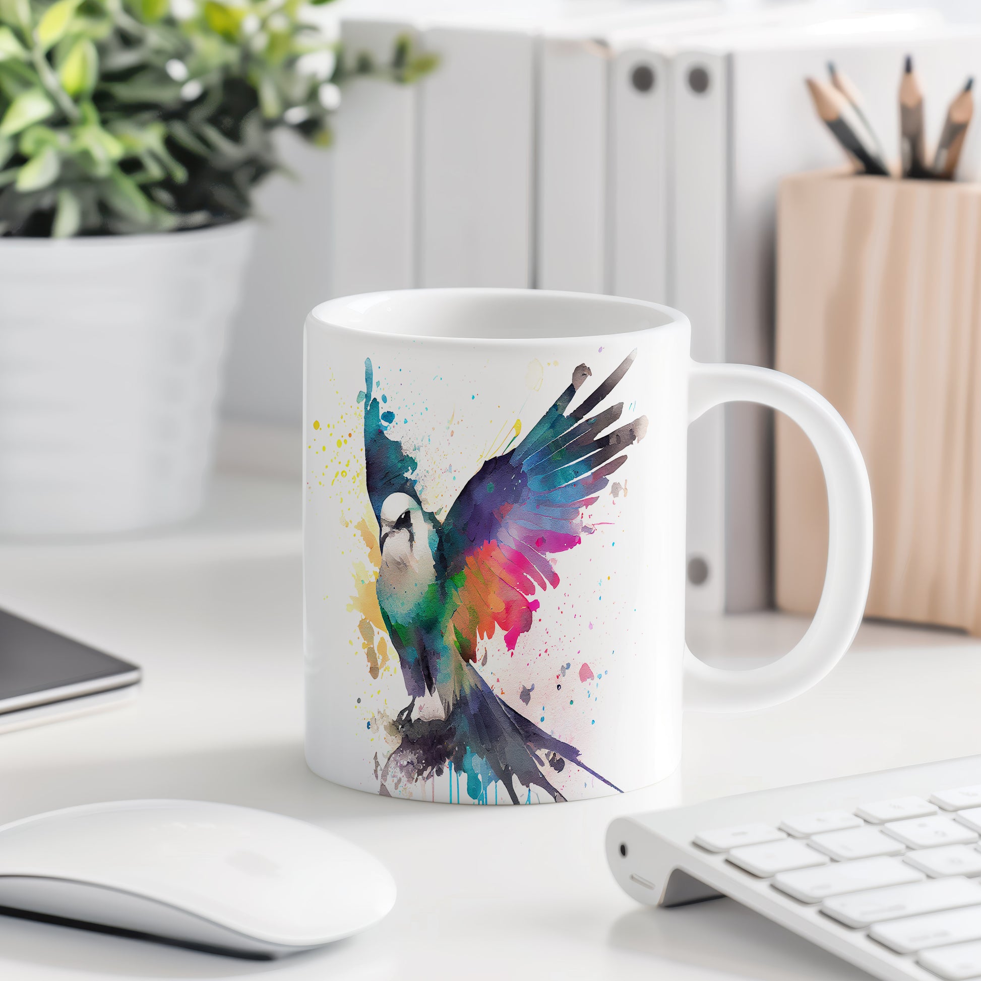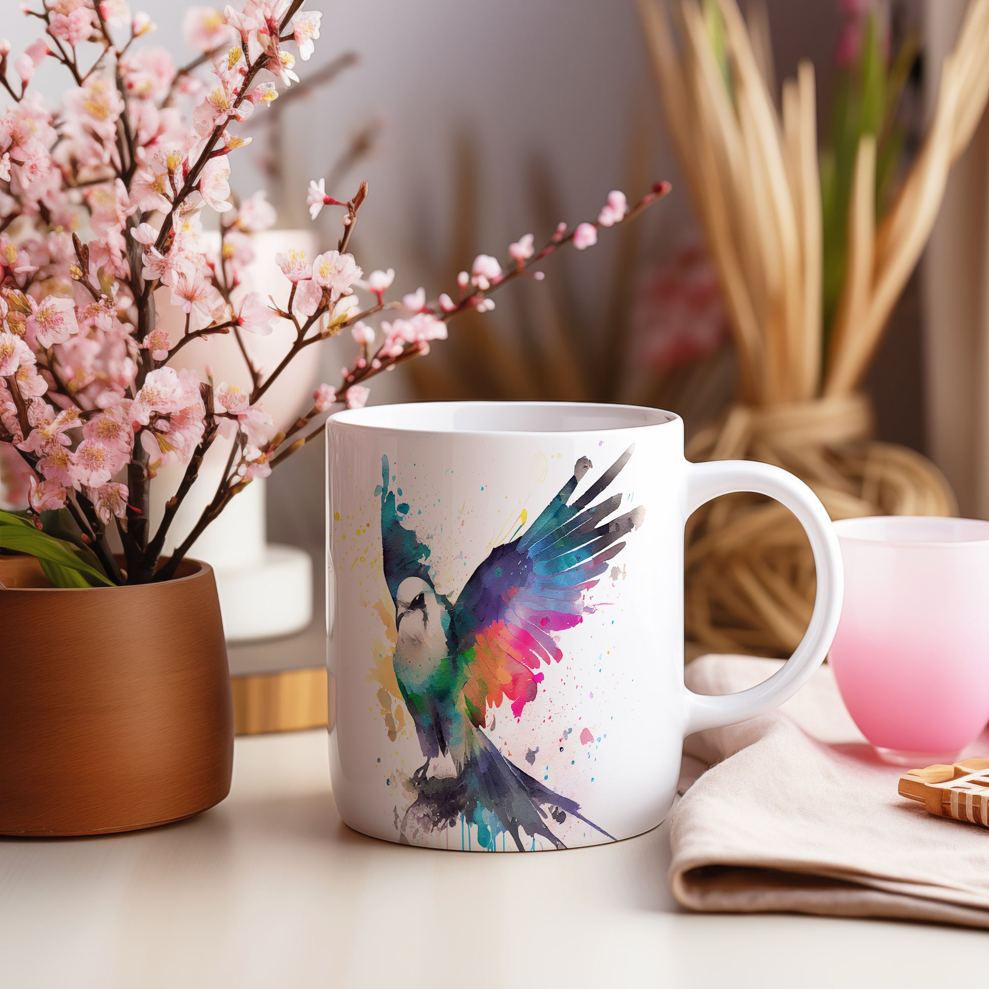 Tento hrnek zobrazuje ptáka s roztaženými křídly v živých barvách akvarelu. Je ideální pro milovníky přírody a skvělým dárkem pro každého, kdo ocení krásu umění. Materiál: keramika. Objem: 330 ml. Vhodné do myčky i mikrovlnky. Díky svému designu přináší do každodenního pití radost a barevnost.