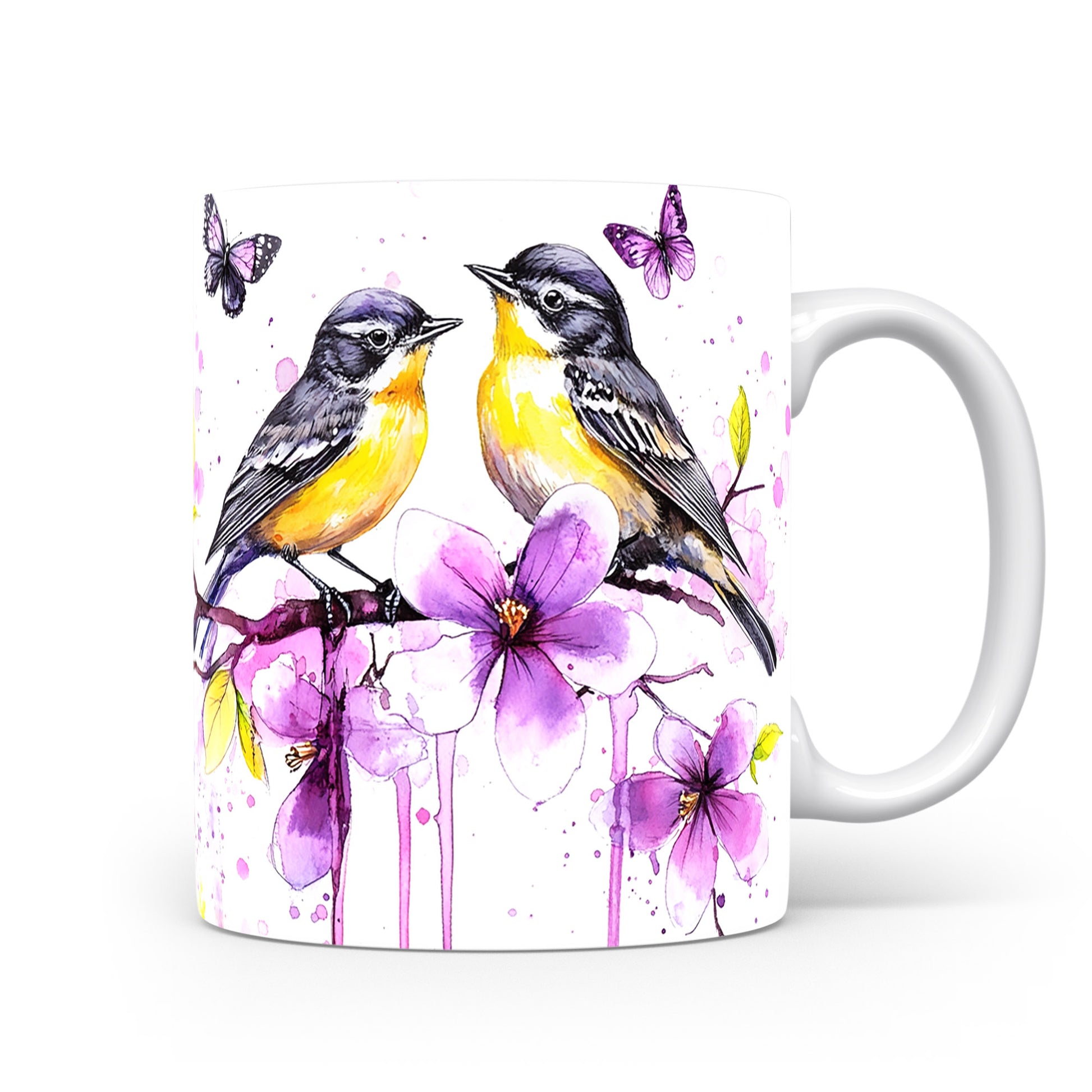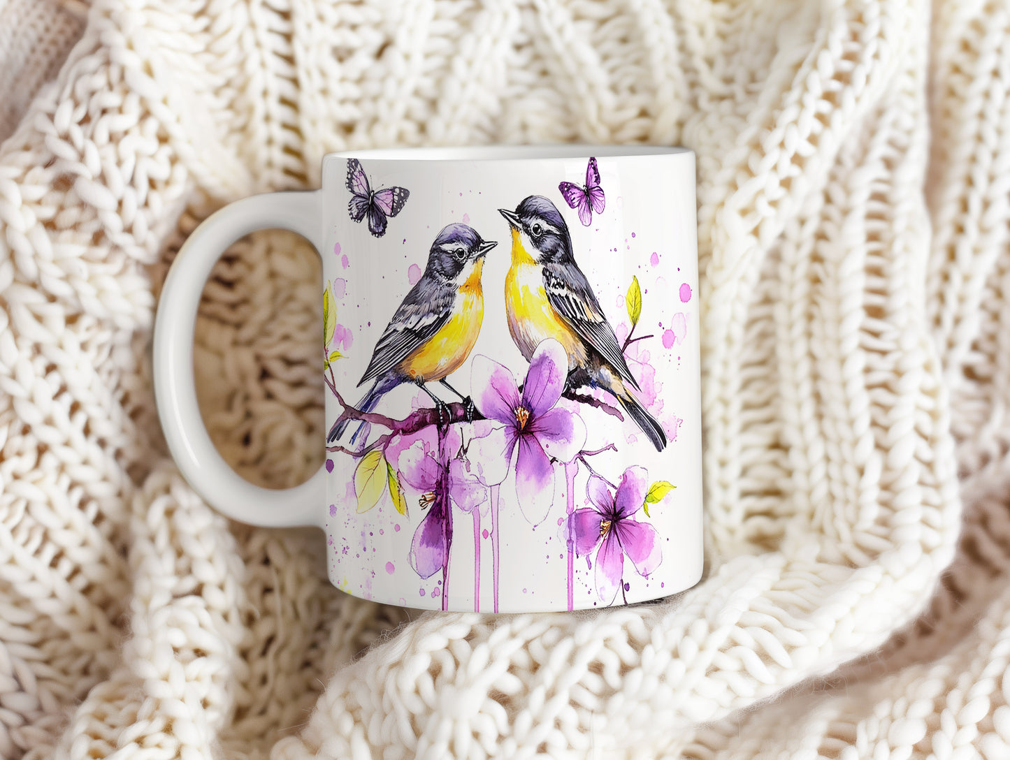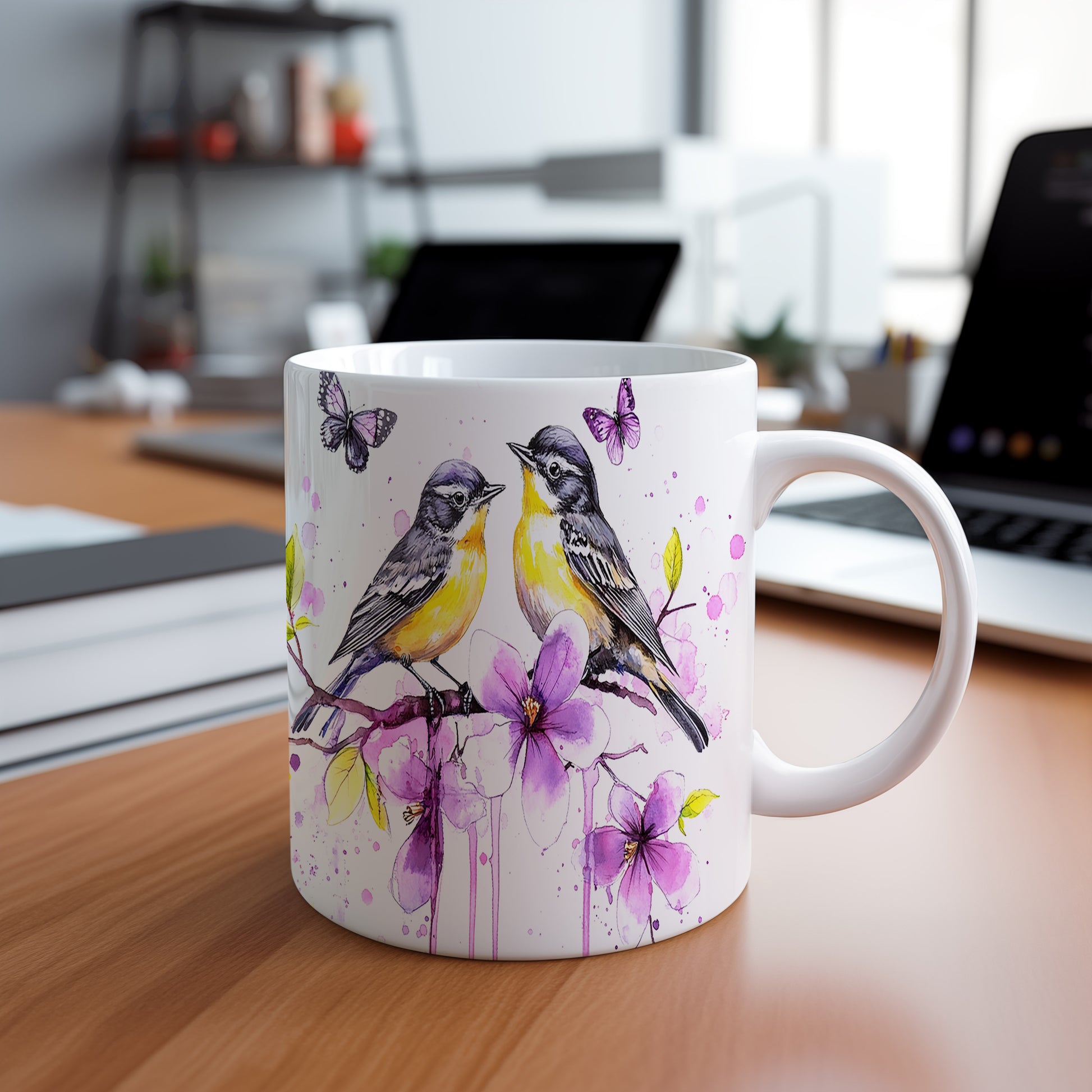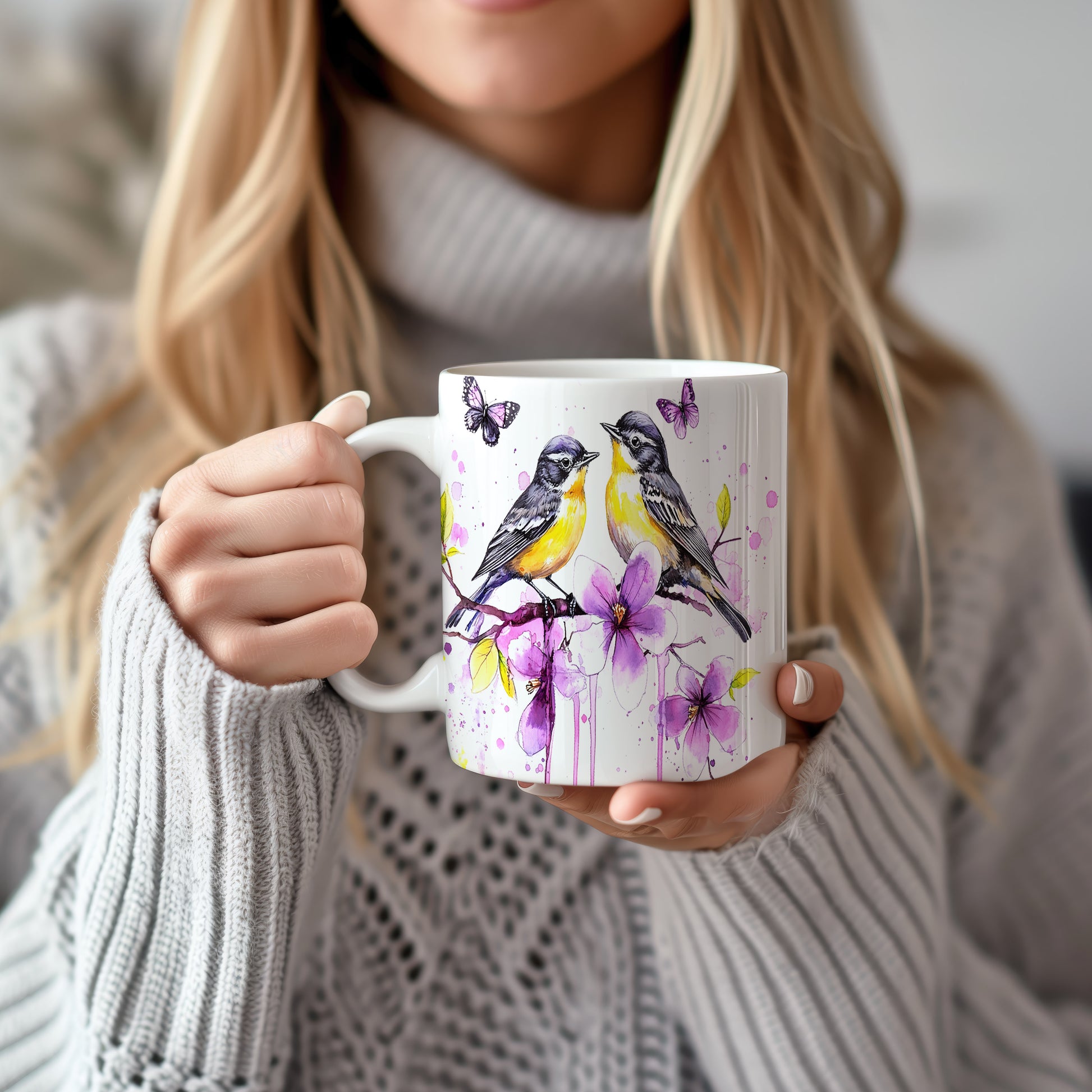 Hrnek s překrásnými ilustracemi ptáků na větvi obklopených květinami. Tento stylový hrnek je ideální pro milovníky přírody a skvělý tip na dárek pro každou příležitost. Materiál: keramika. Objem: 330 ml. Vhodné do myčky i mikrovlnky. Používání tohoto hrnku přináší radost z každého doušku.