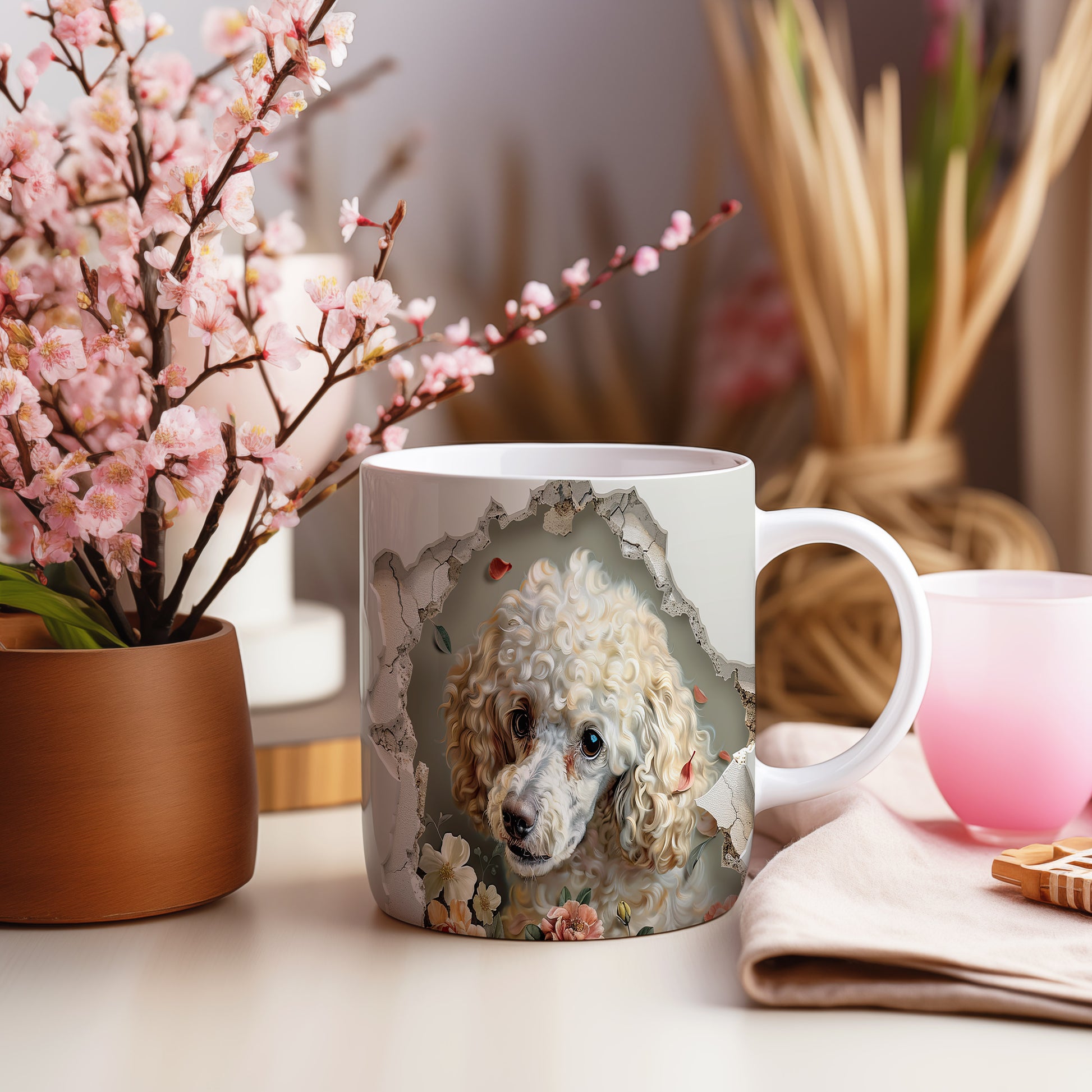 Hrnek s realistickým motivem roztomilého psa s kudrnatou srstí. Tento hrnek je ideální pro milovníky zvířat, kteří ocení originální design a chtějí potěšit své blízké. Materiál: keramika. Objem: 330 ml. Vhodné do myčky i mikrovlnky. Používání tohoto hrnku přináší radost z každého doušku.