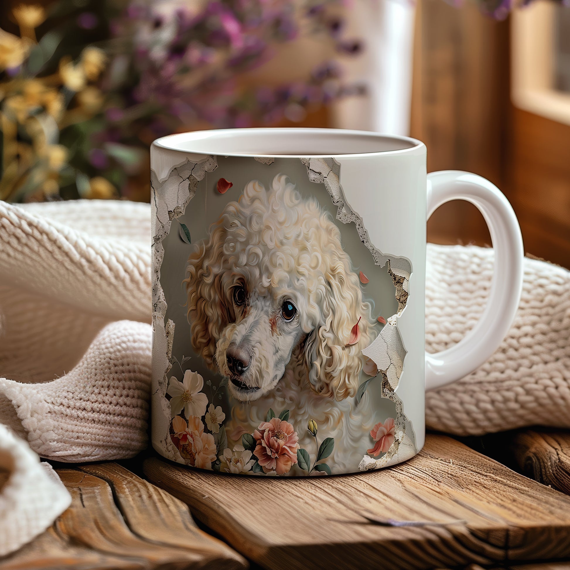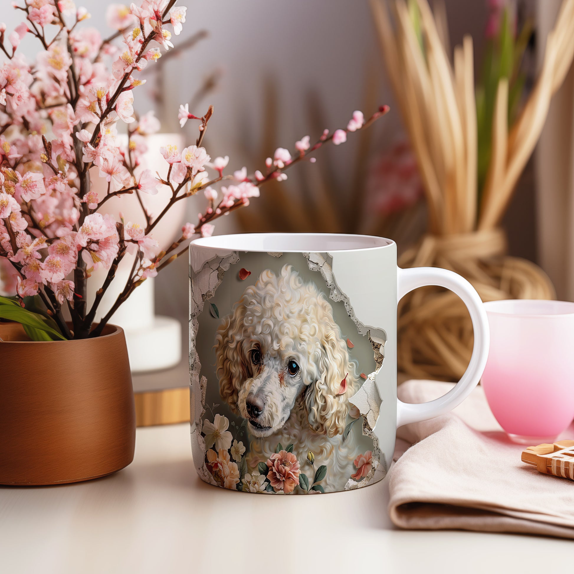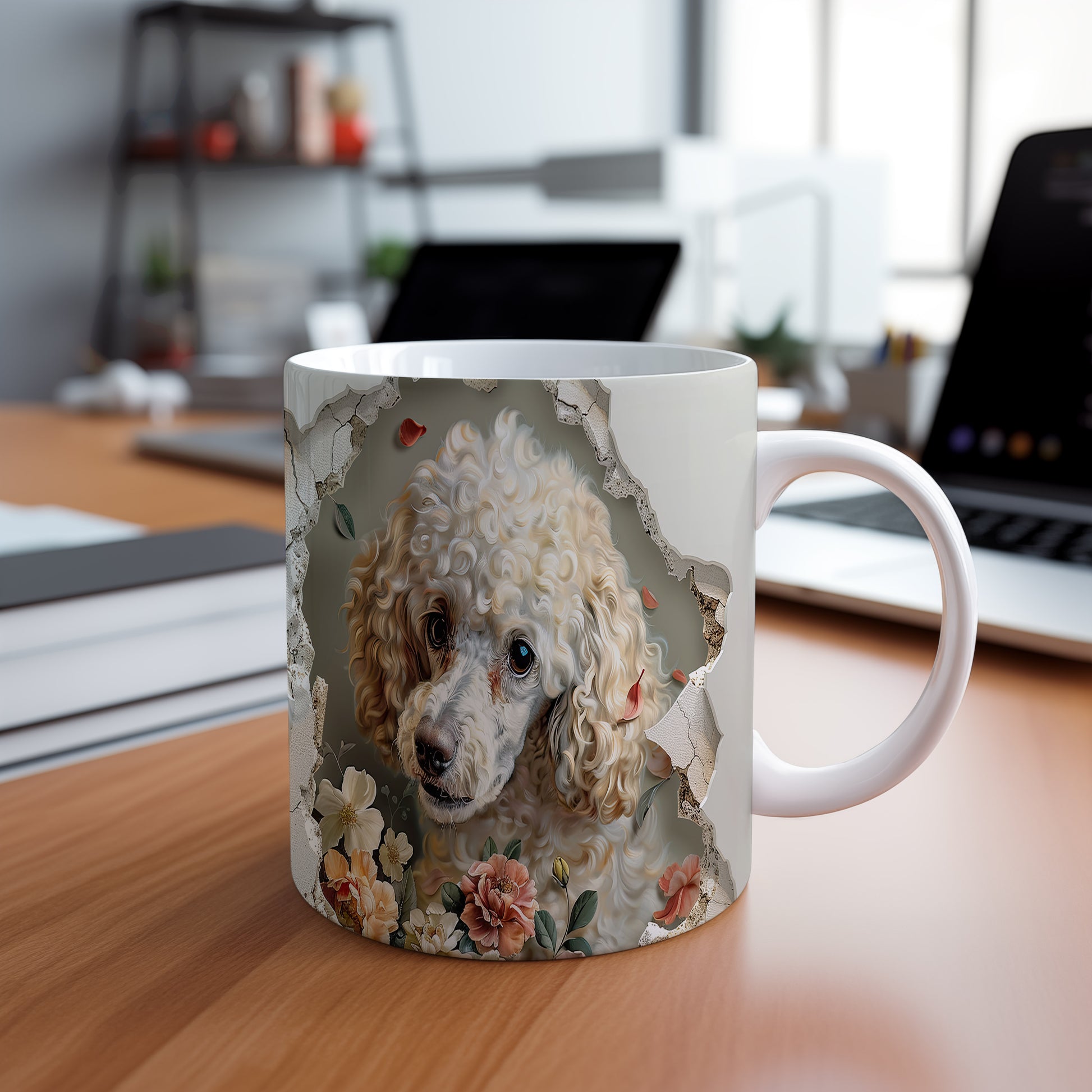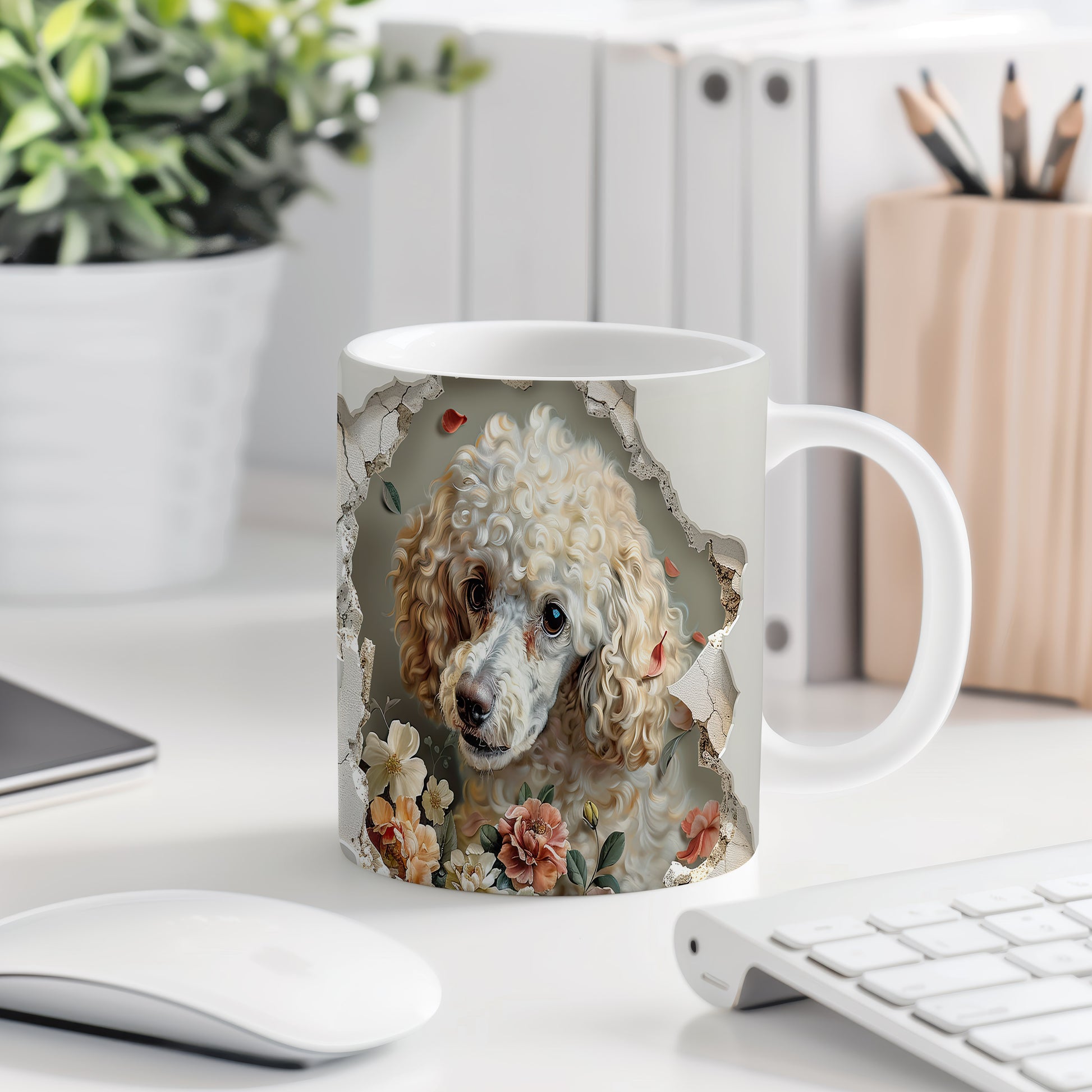 Hrnek s pudlem a květinovým 3D efektem