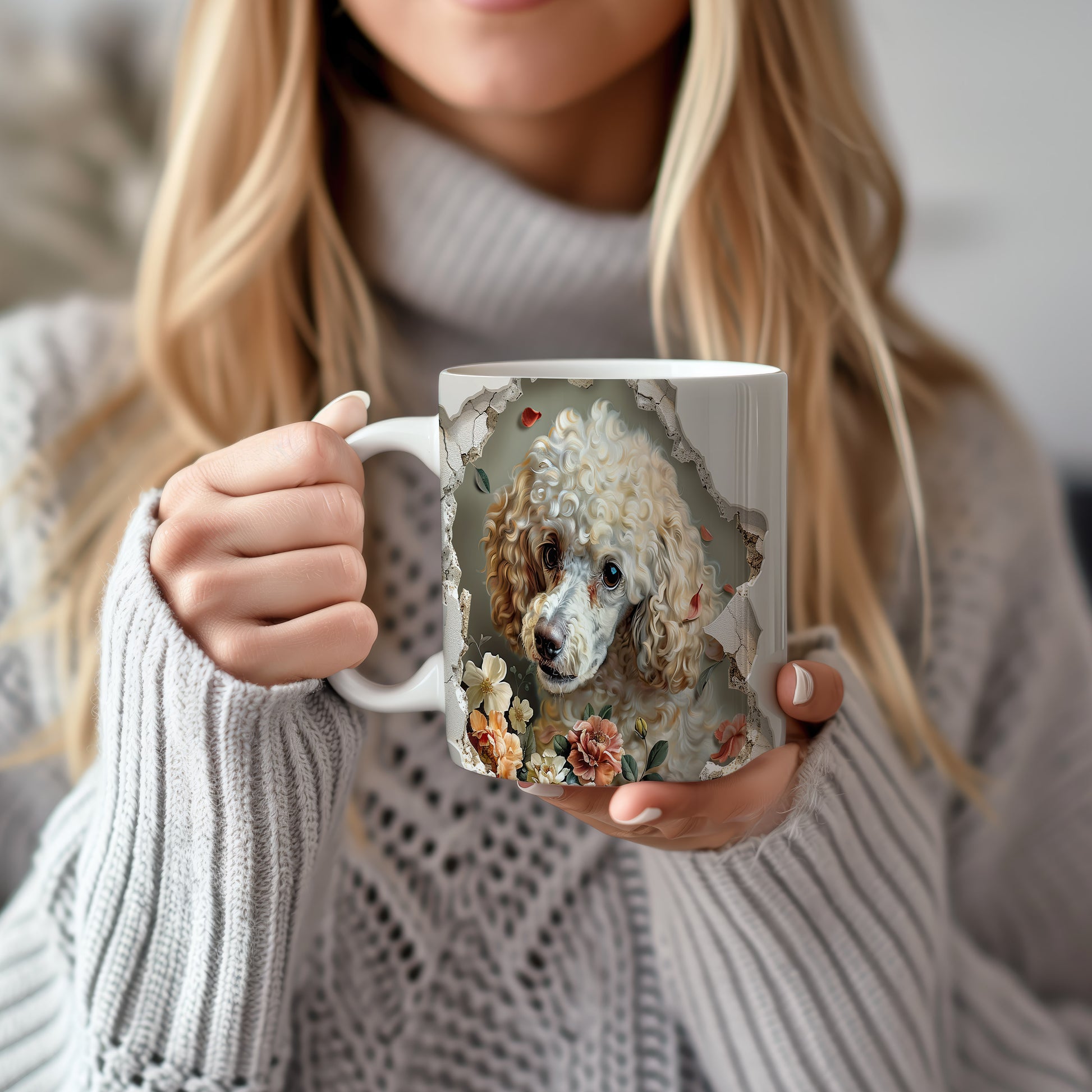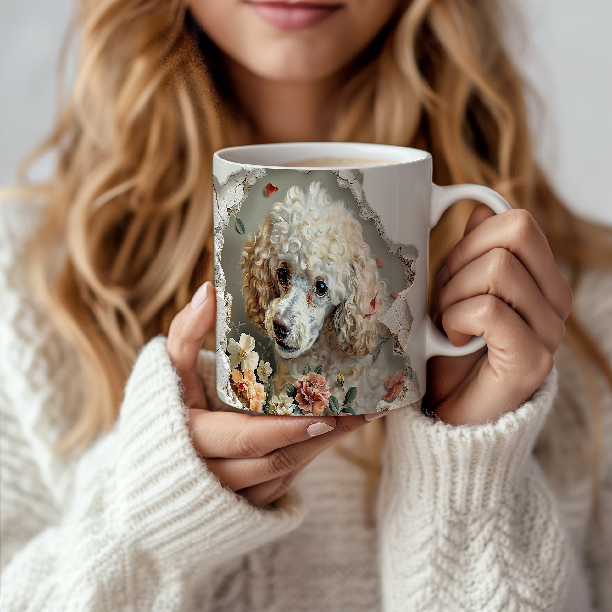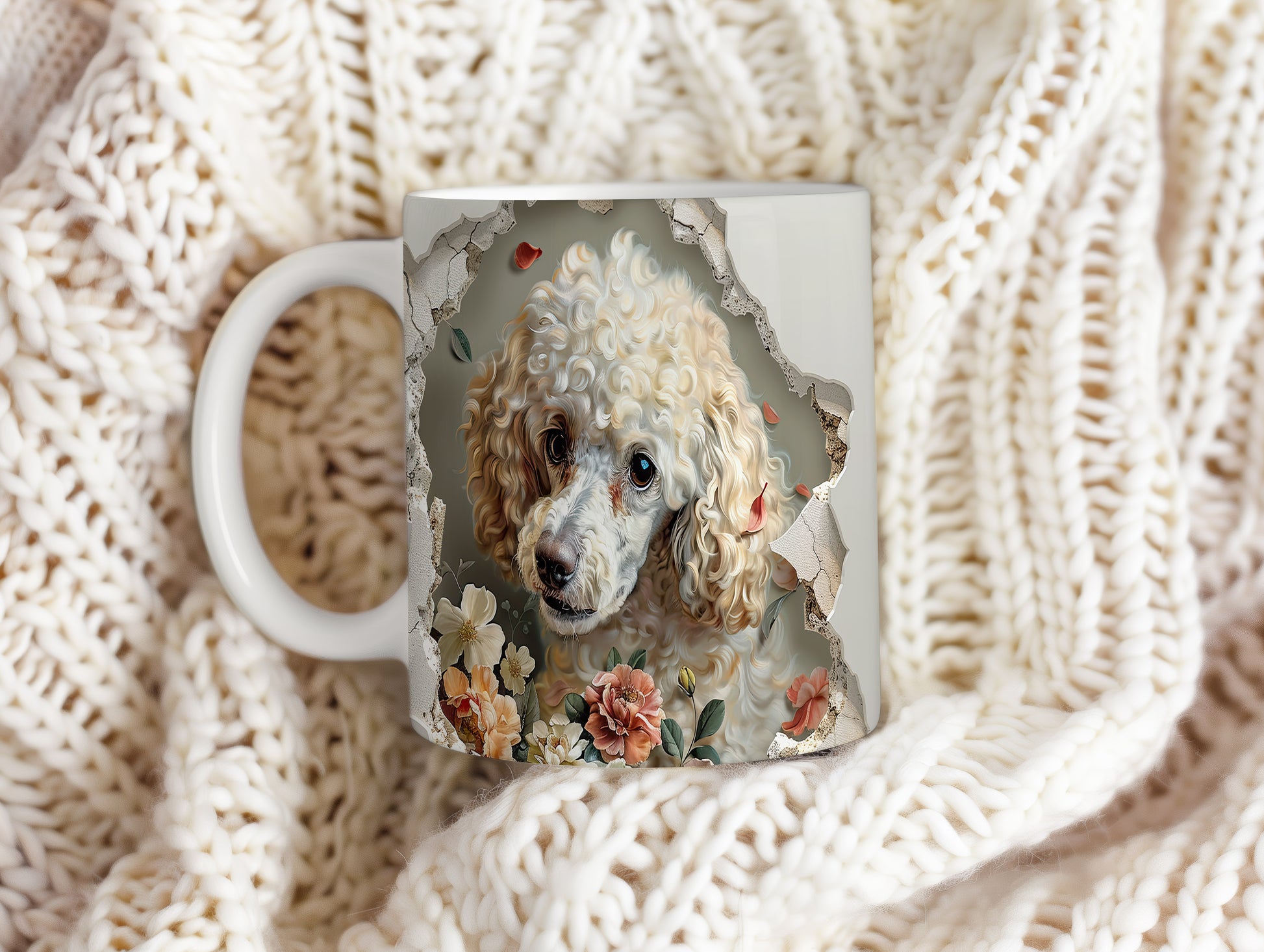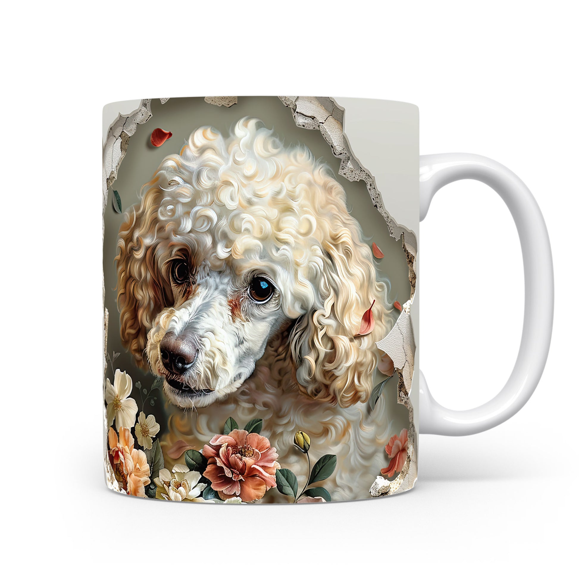 Hrnek s pudlem a květinovým 3D efektem