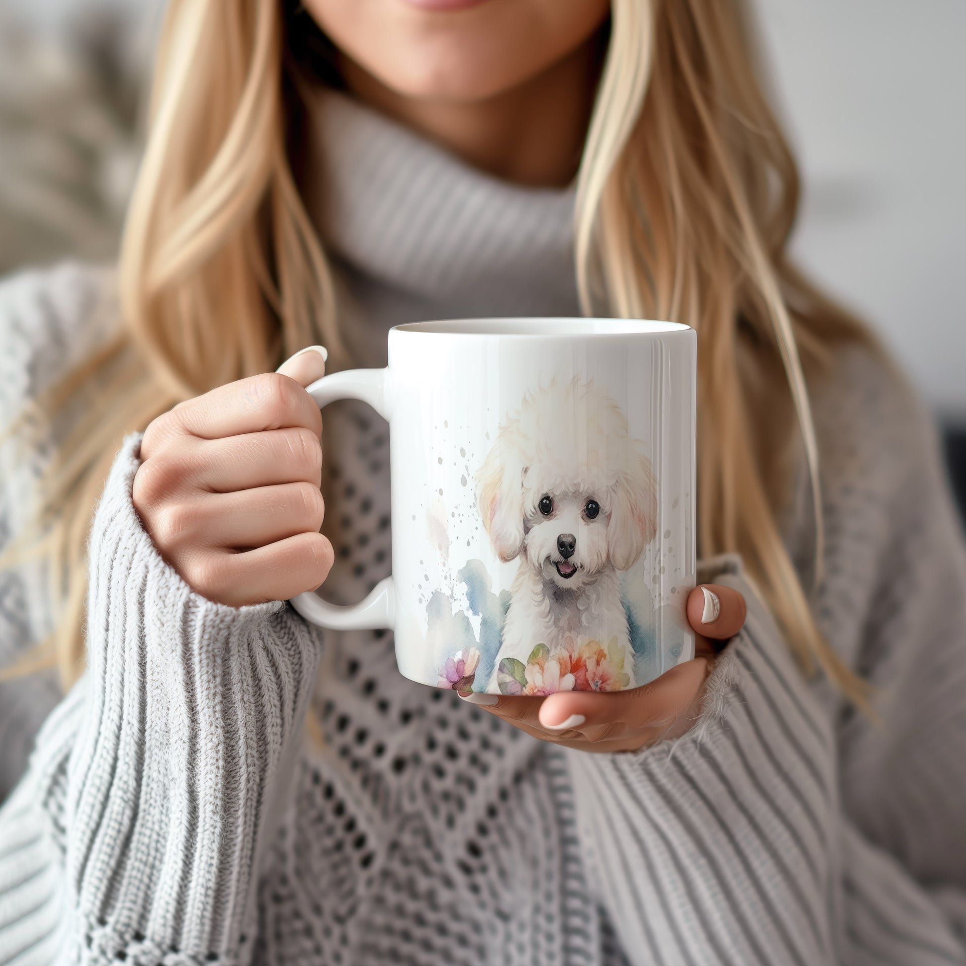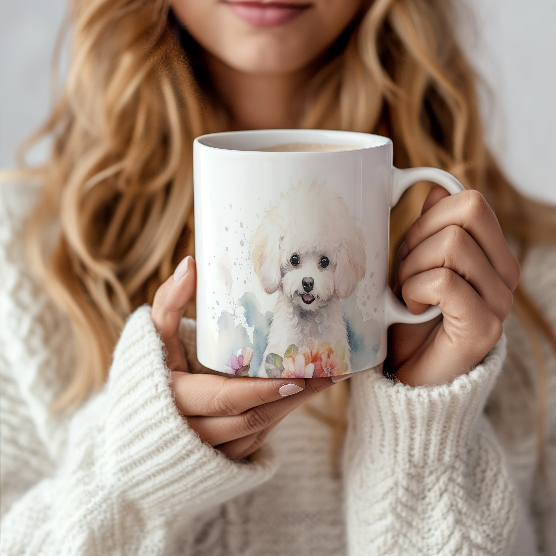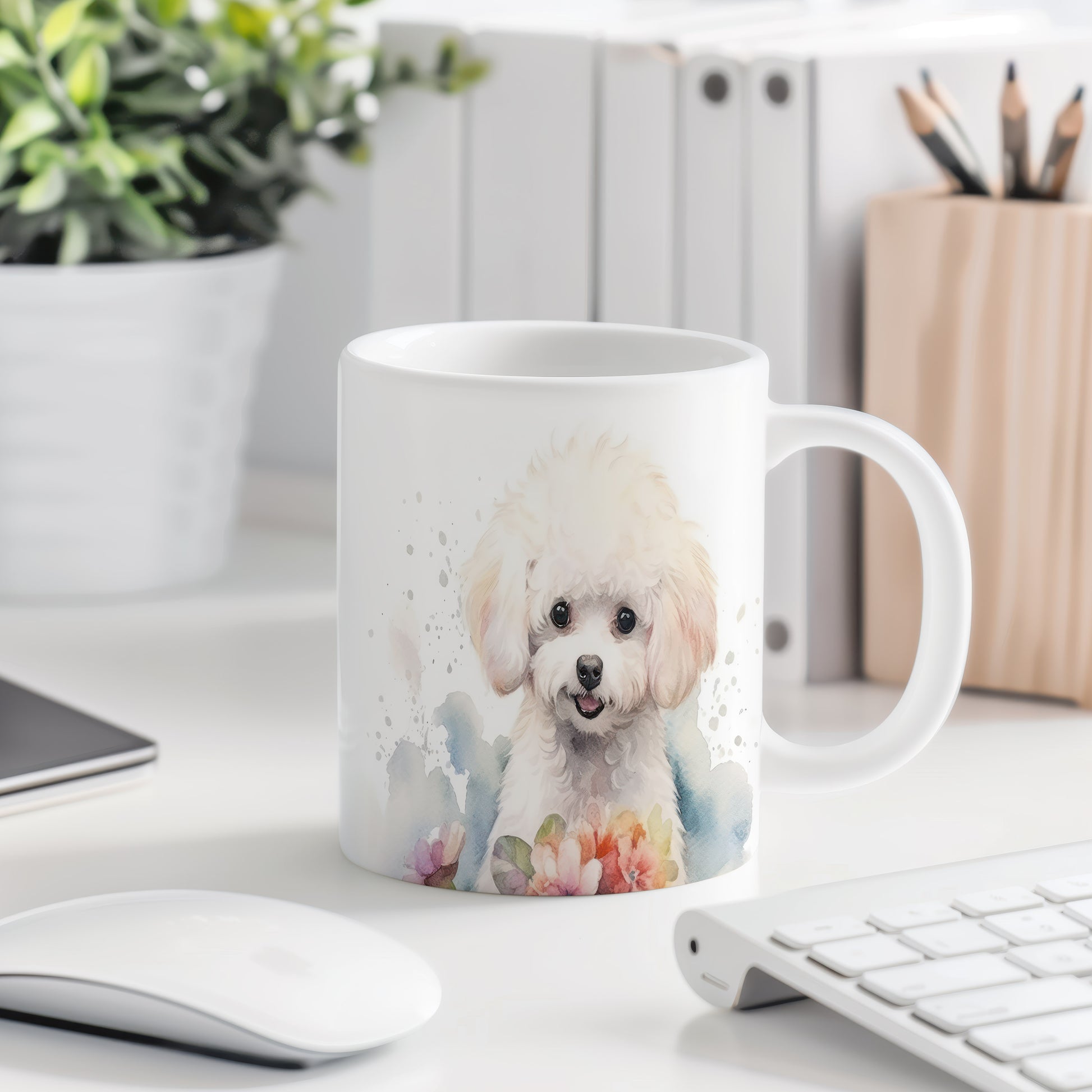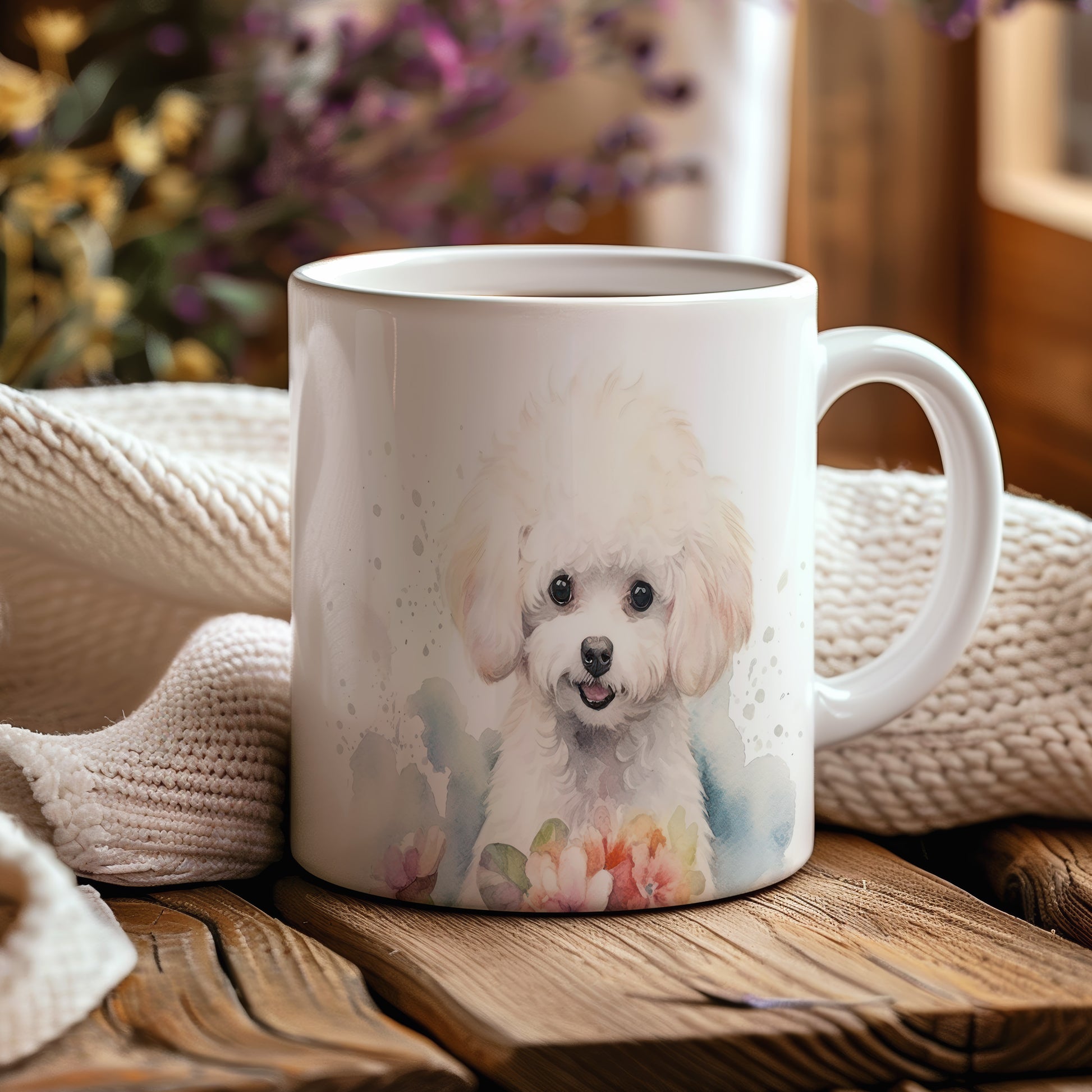 Tento hrnek zobrazuje roztomilého psa obklopeného barevnými květinami. Je ideální pro milovníky zvířat a přírody, skvělý tip na dárek pro přátele nebo rodinu. Materiál: keramika. Objem: 330 ml. Vhodné do myčky i mikrovlnky. Používání tohoto hrnku přináší radost při každém doušku vaší oblíbené kávy nebo čaje.