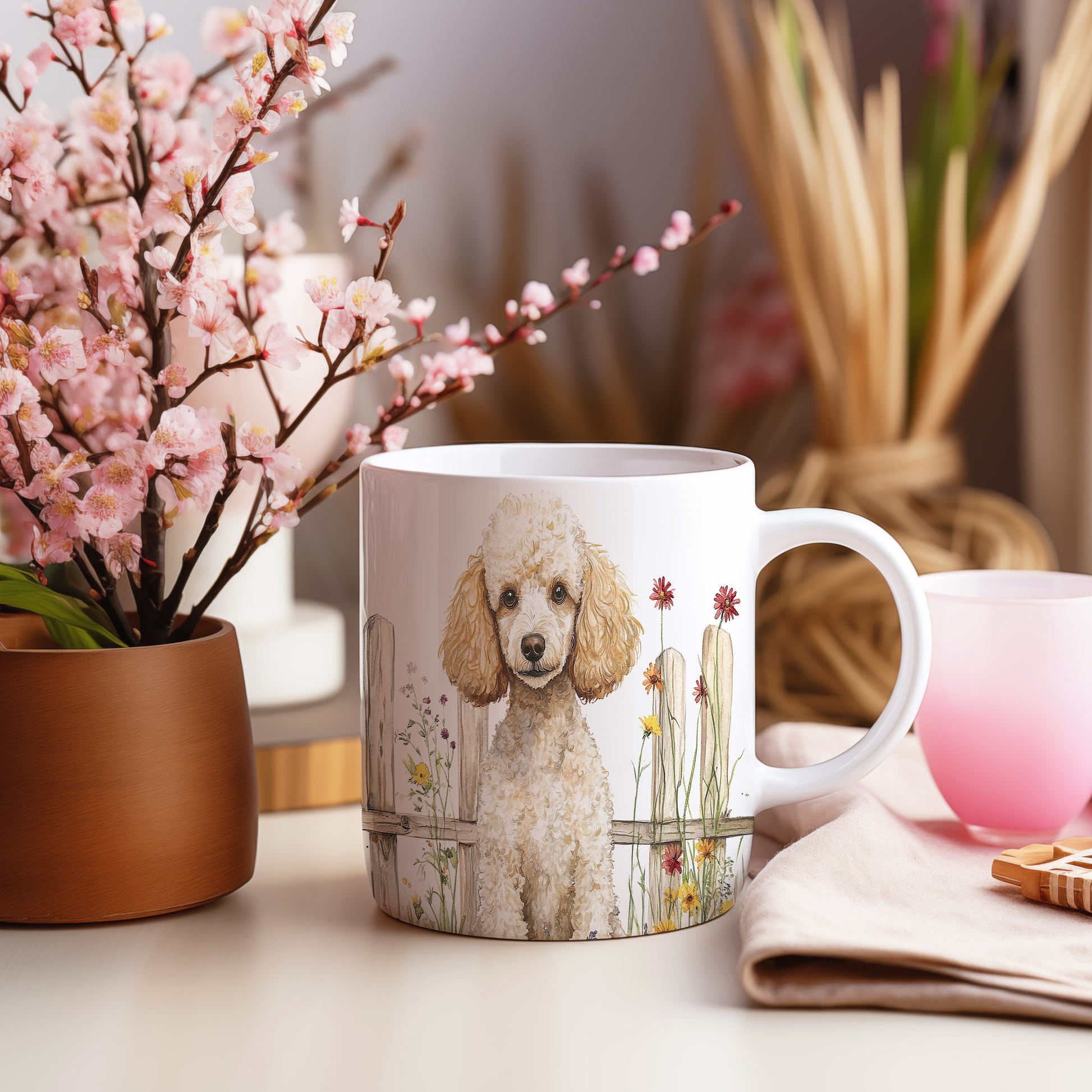 Hrnek s pudlem a letními květinami