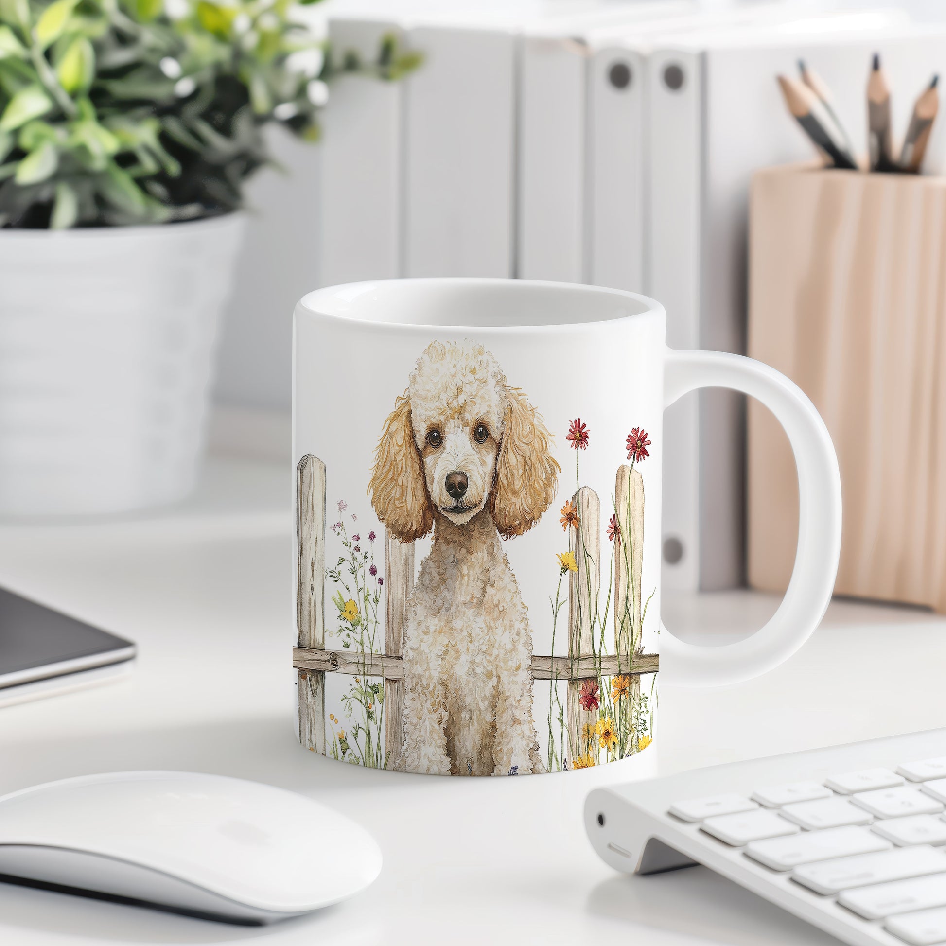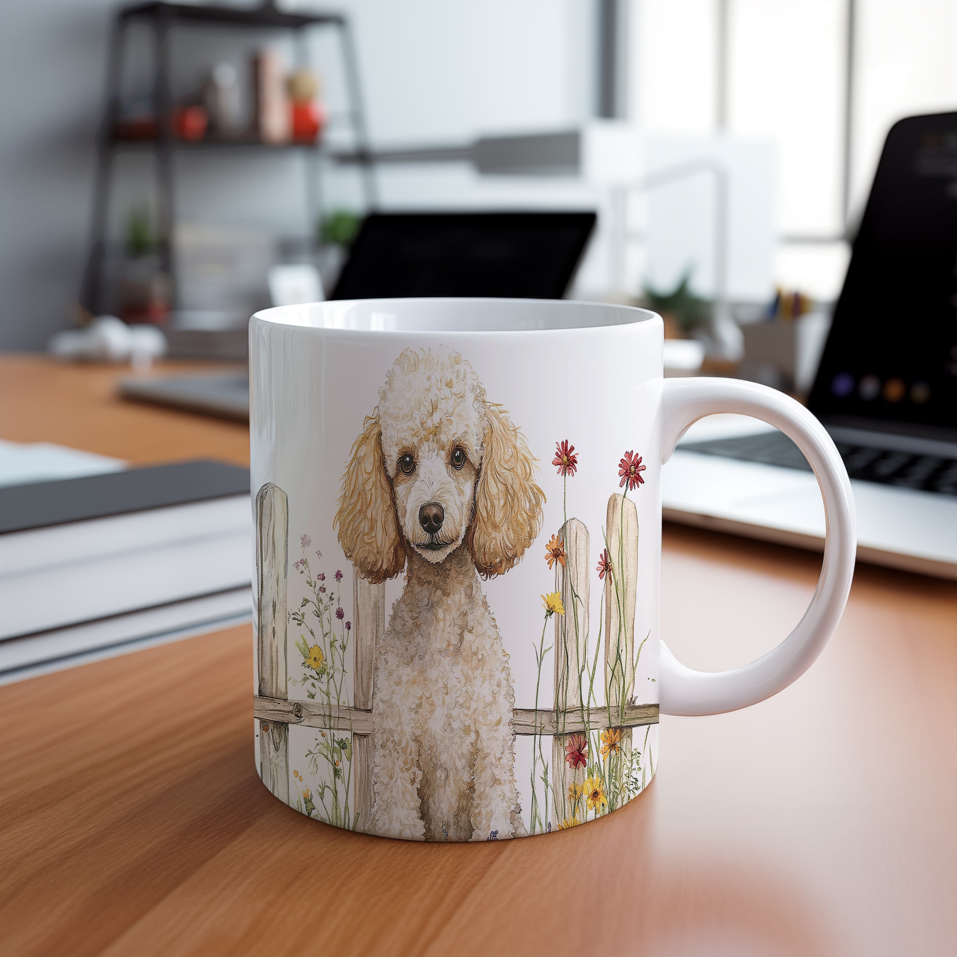 Tento hrnek zobrazuje rozkošného pudla v květinové zahradě. Je ideální pro milovníky zvířat a skvělým dárkem pro každého, kdo má rád keramiku. Materiál: keramika. Objem: 330 ml. Vhodné do myčky i mikrovlnky. Používání tohoto hrnku přináší radost a pohodlí při každém doušku.
