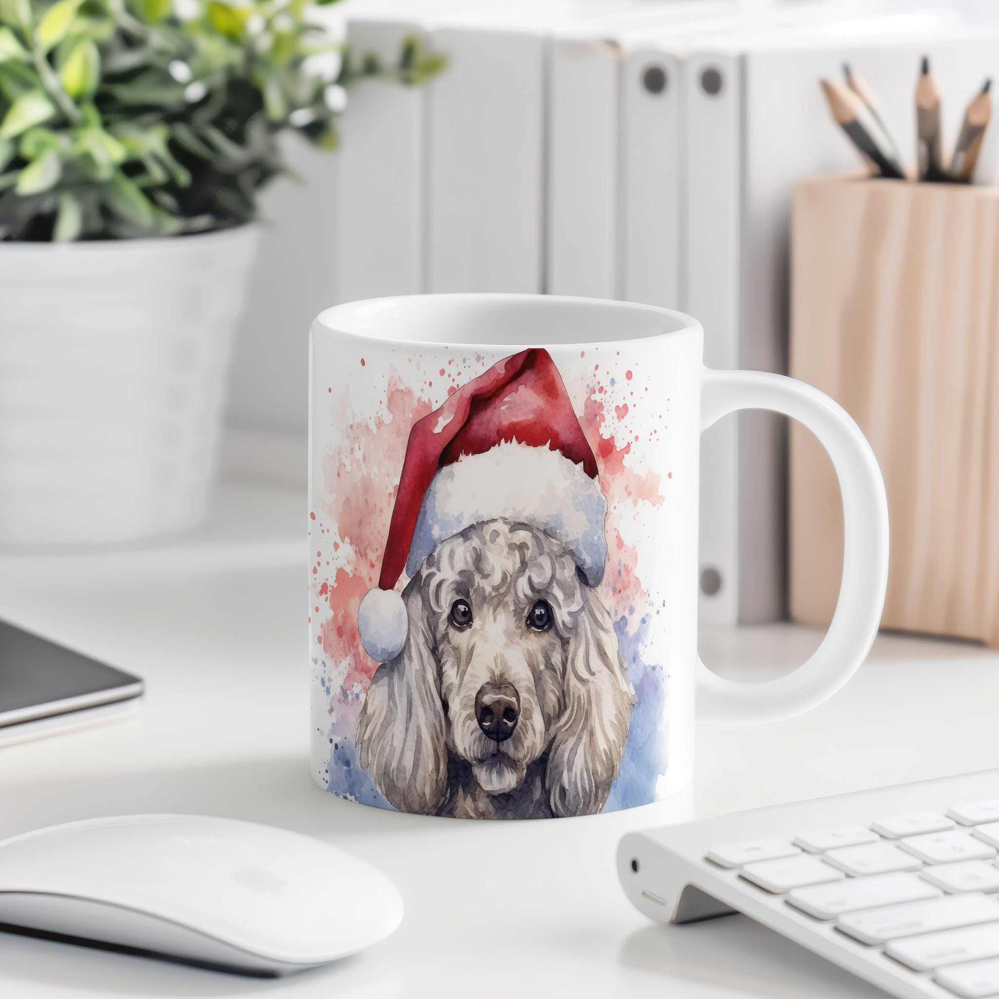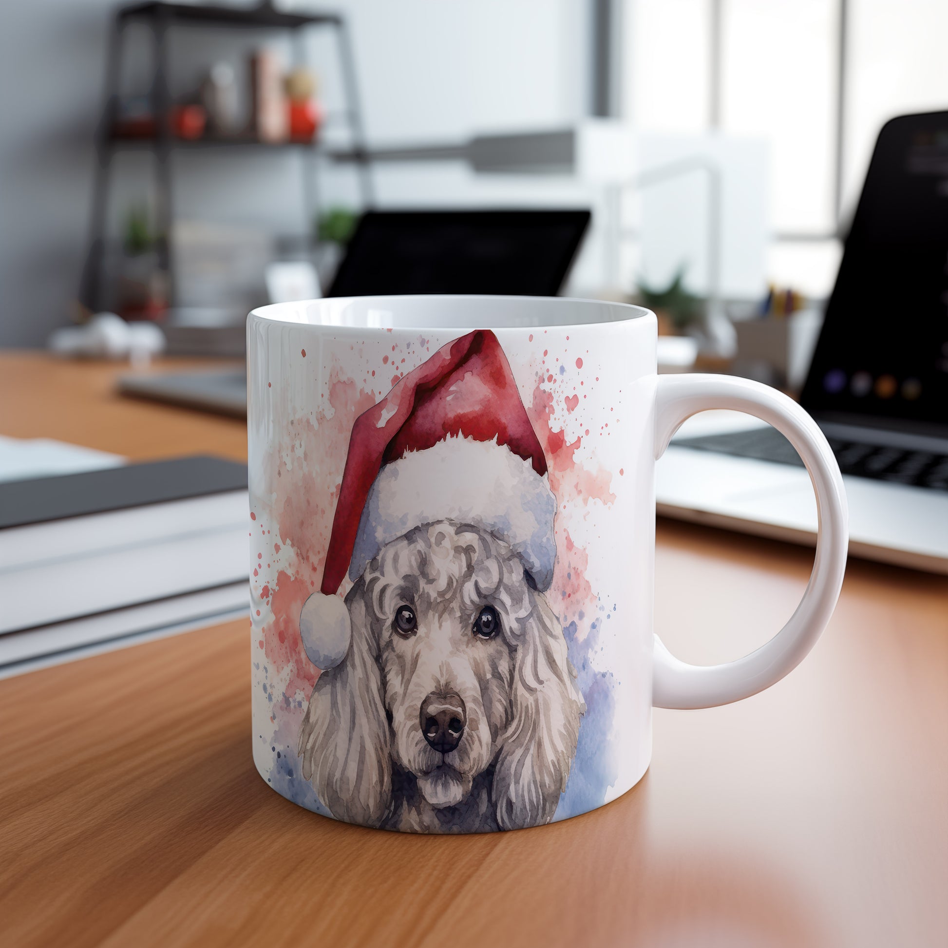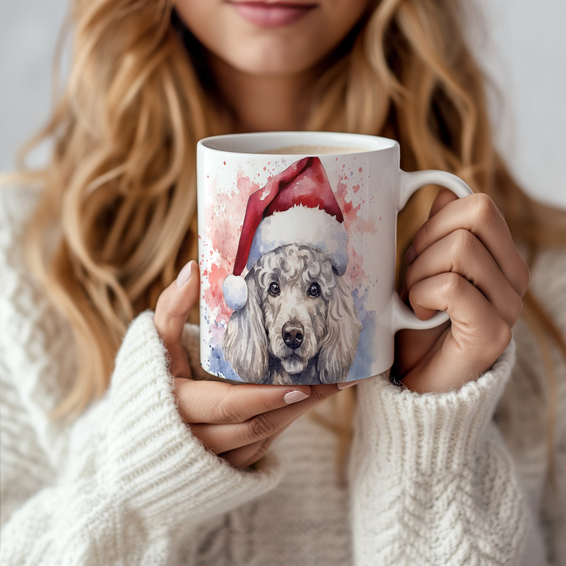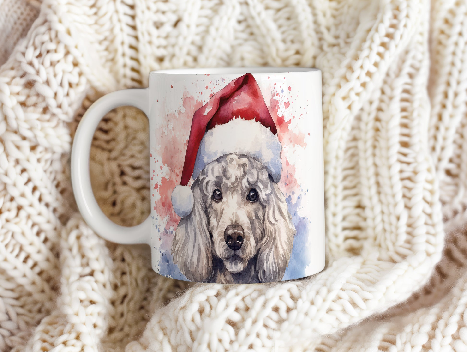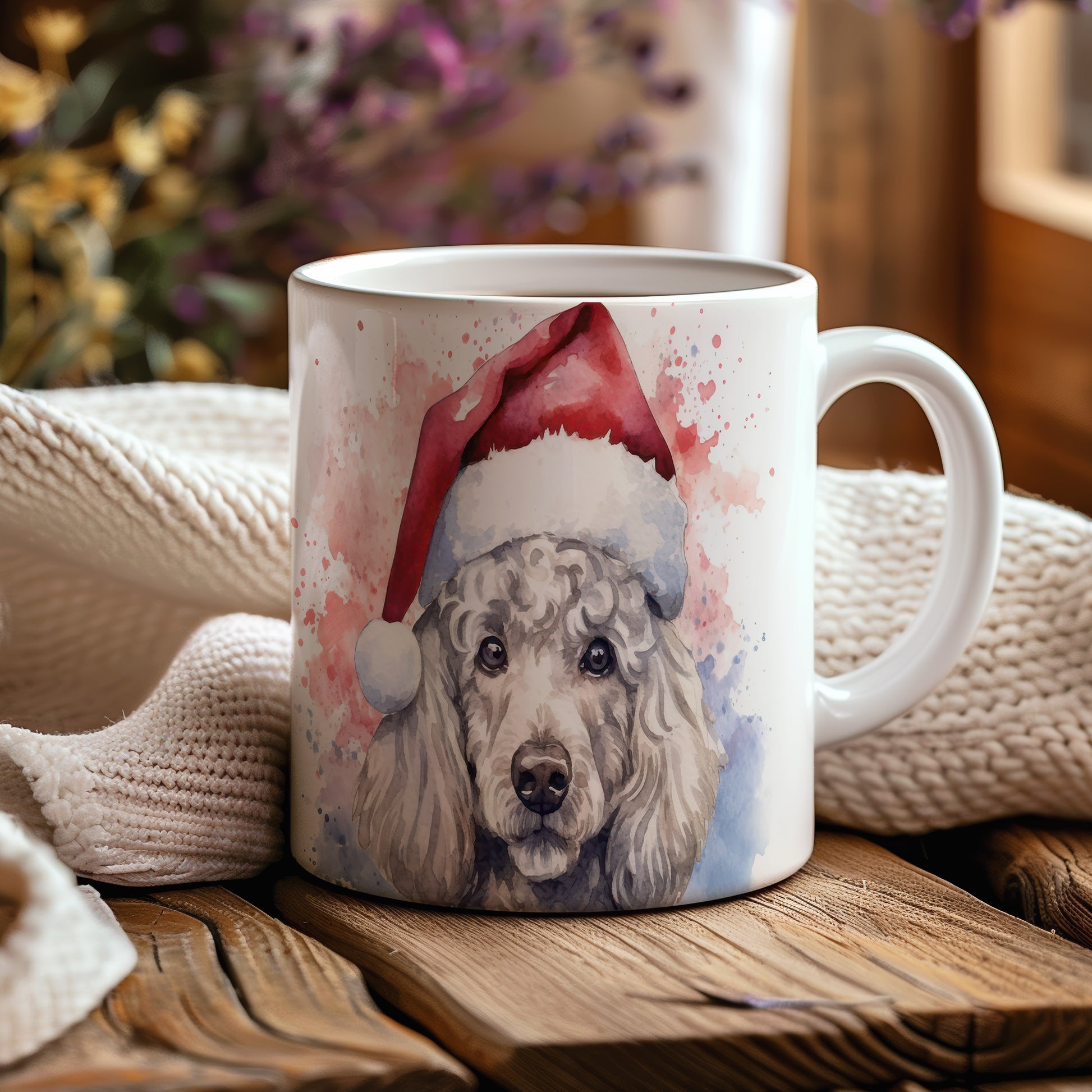 Hrnek s pudlem v čepici pro vánoční pohodu