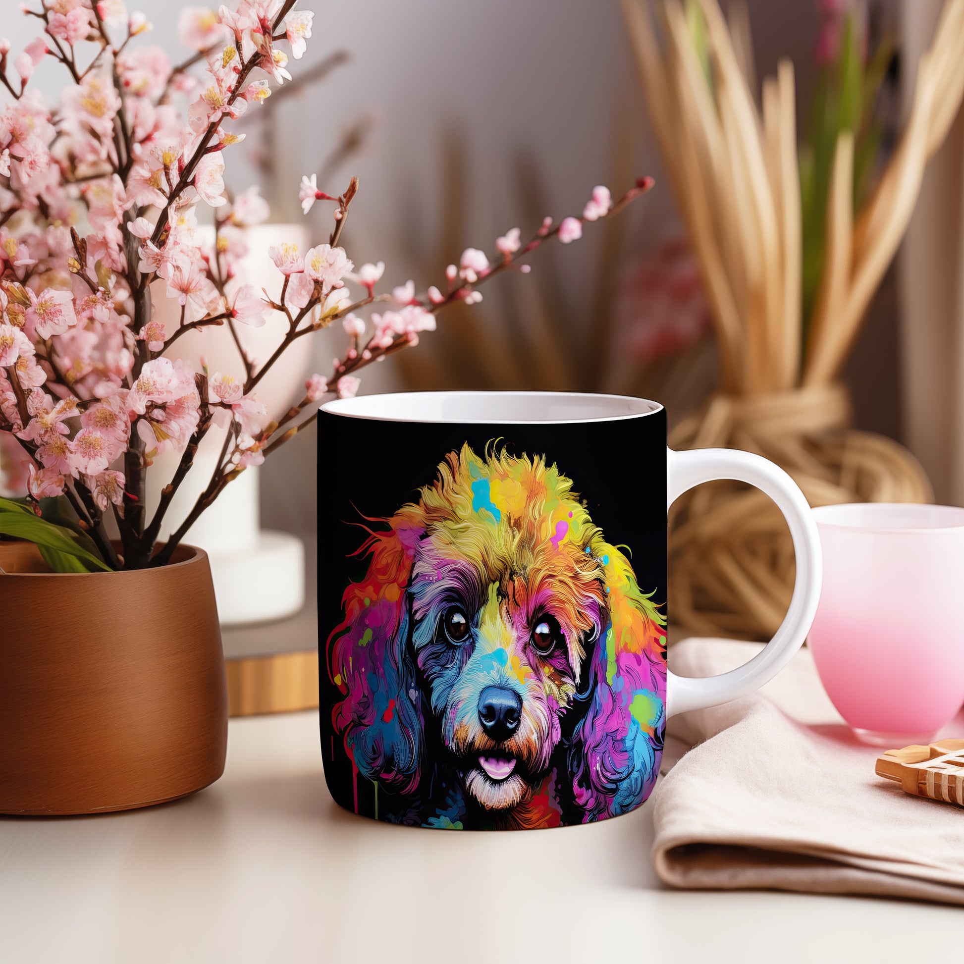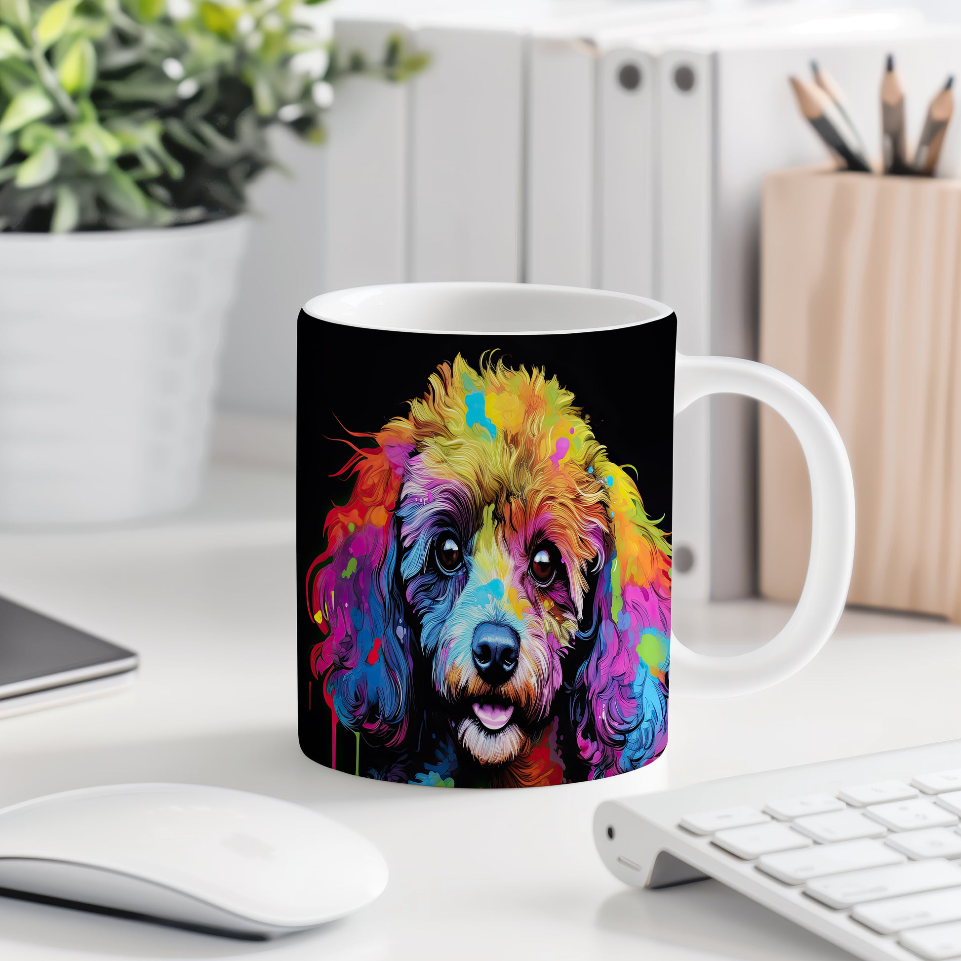 Hrnek s pudlem v duhových barvách