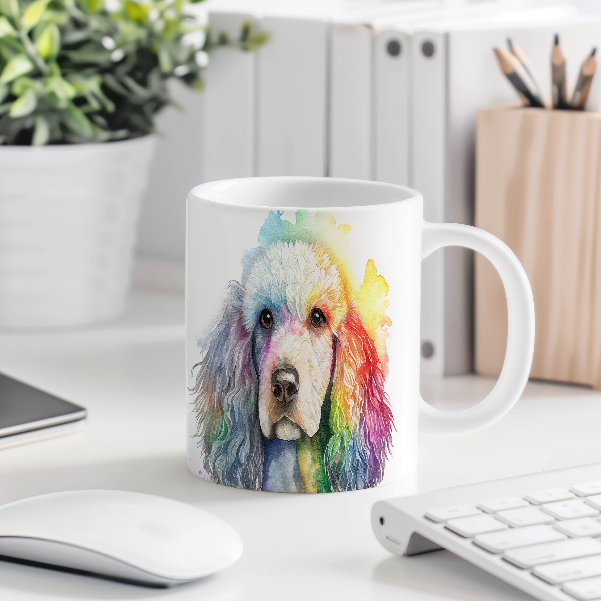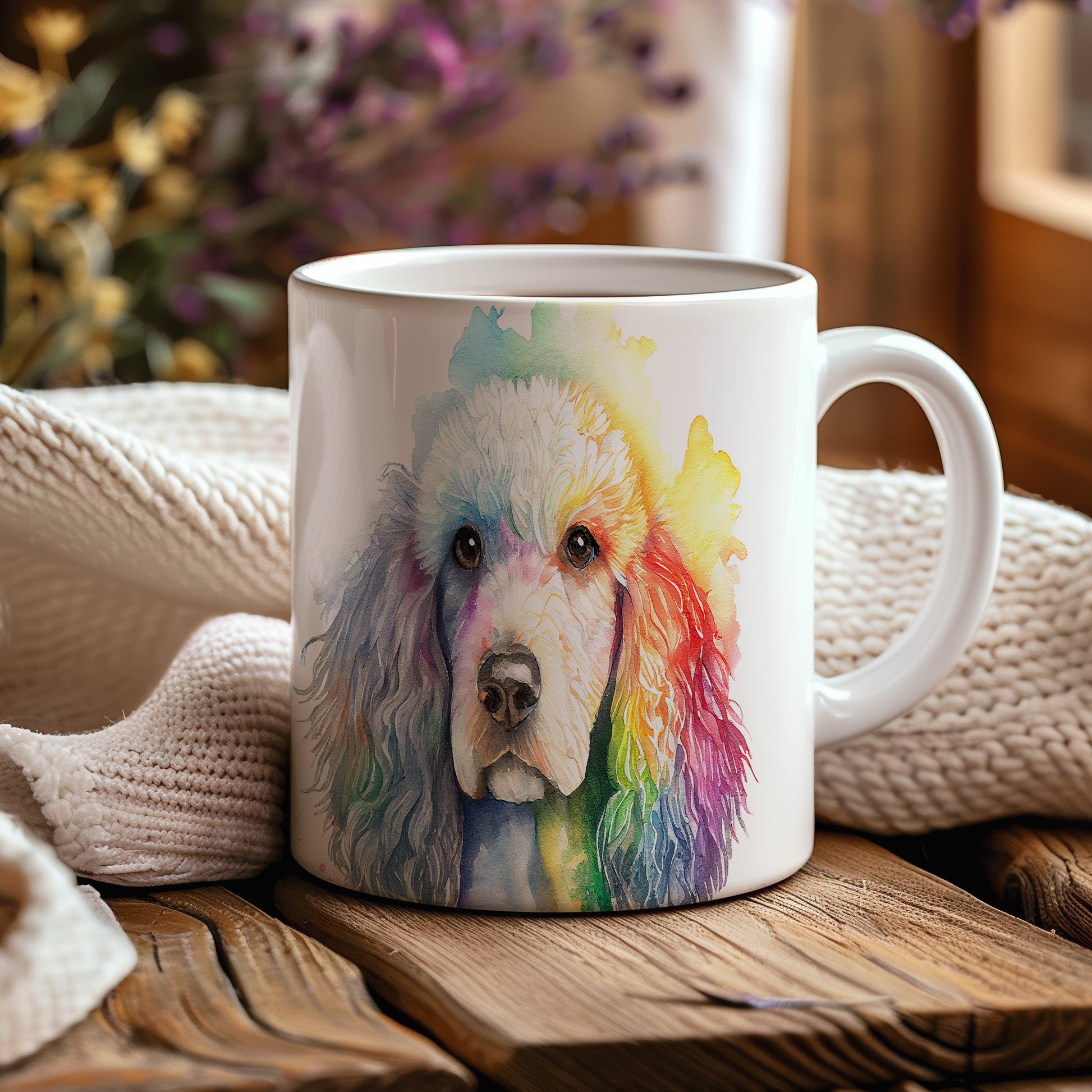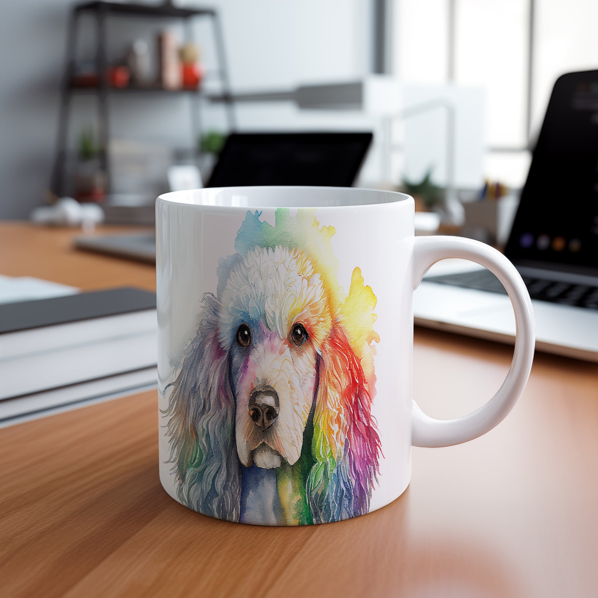 Hrnek s pudlem v duhových barvách – výrazným designem