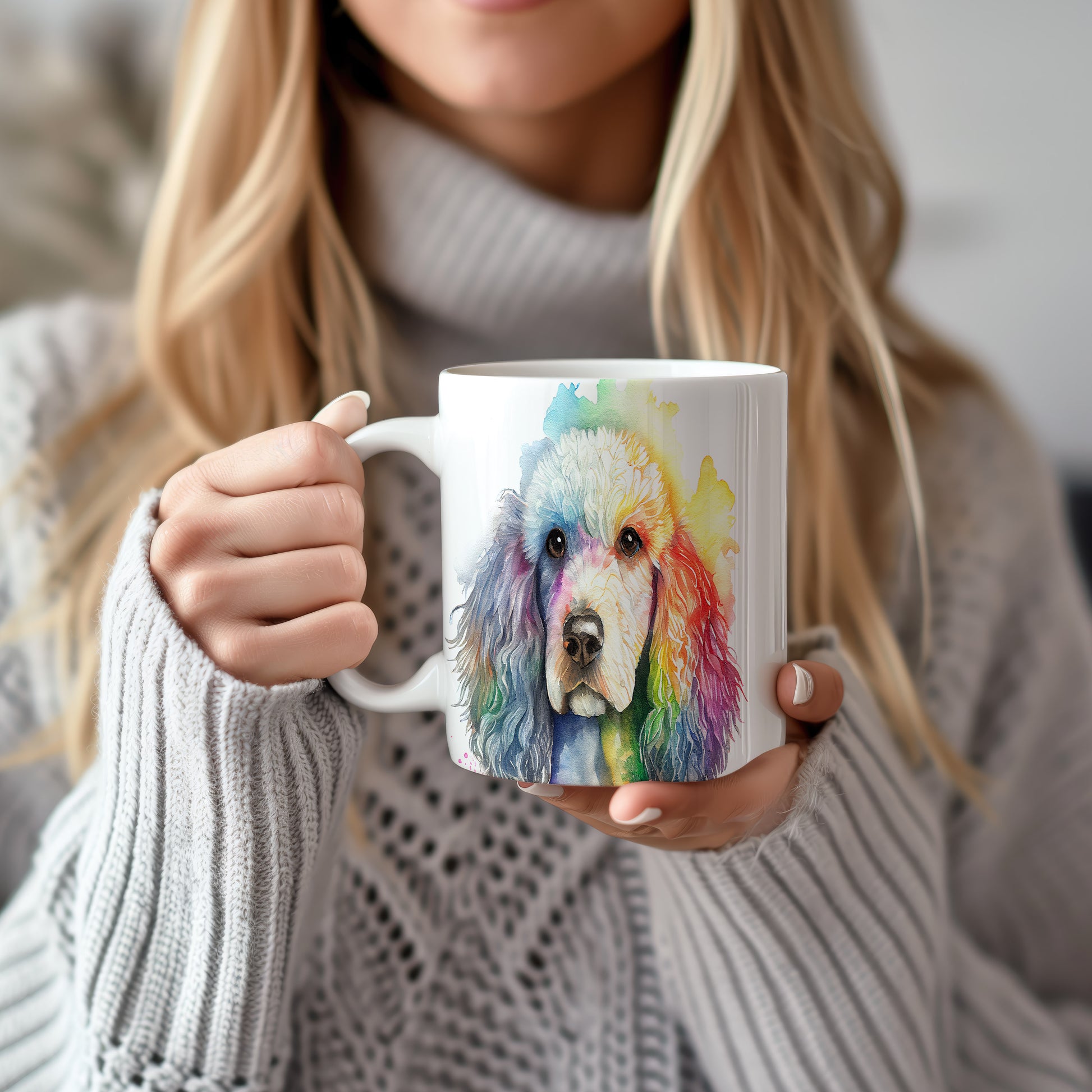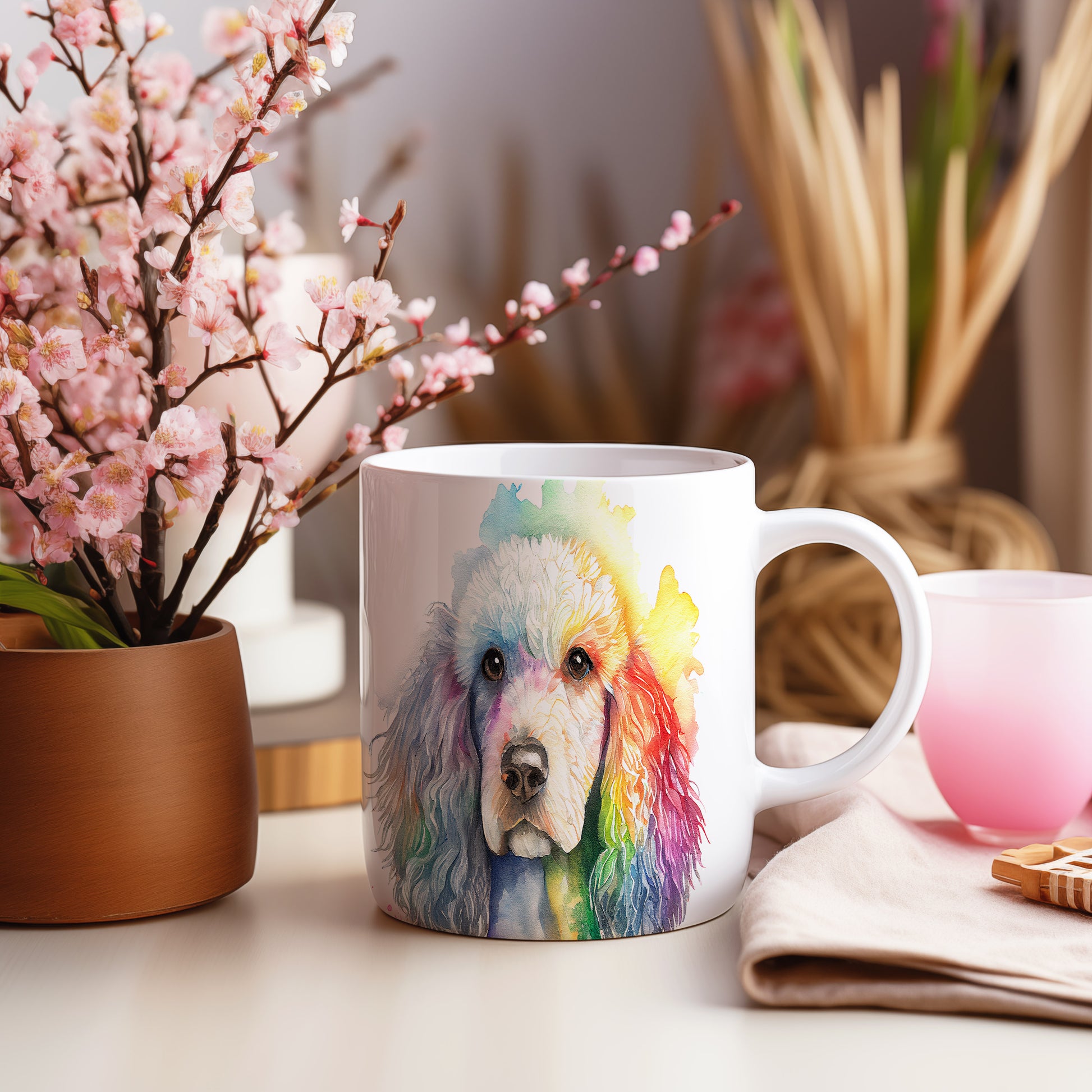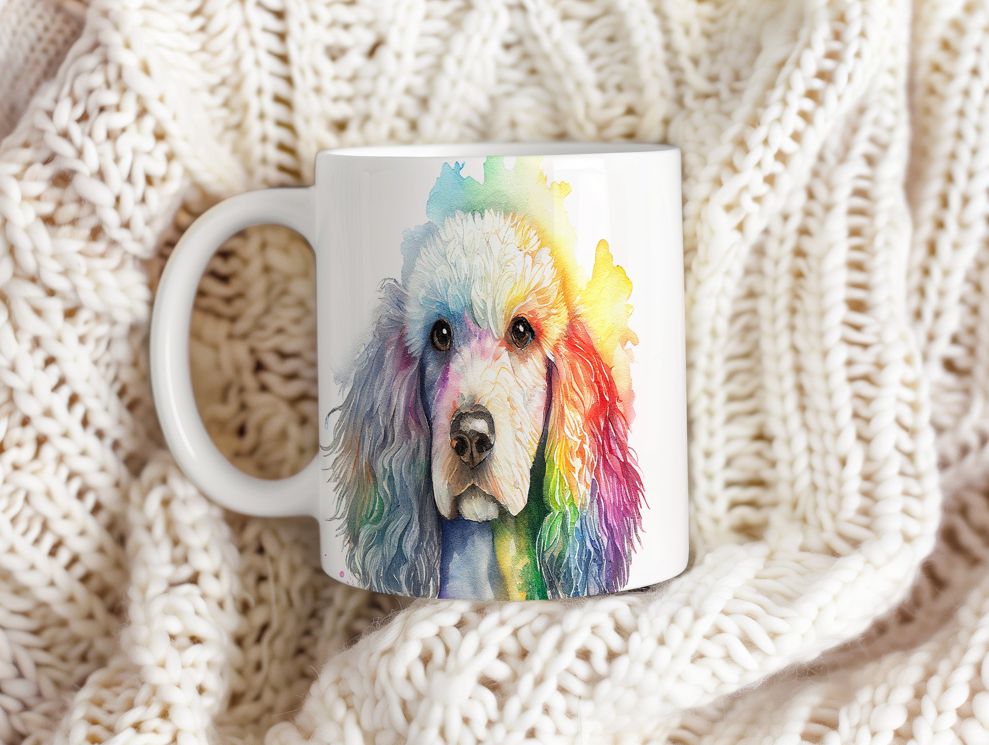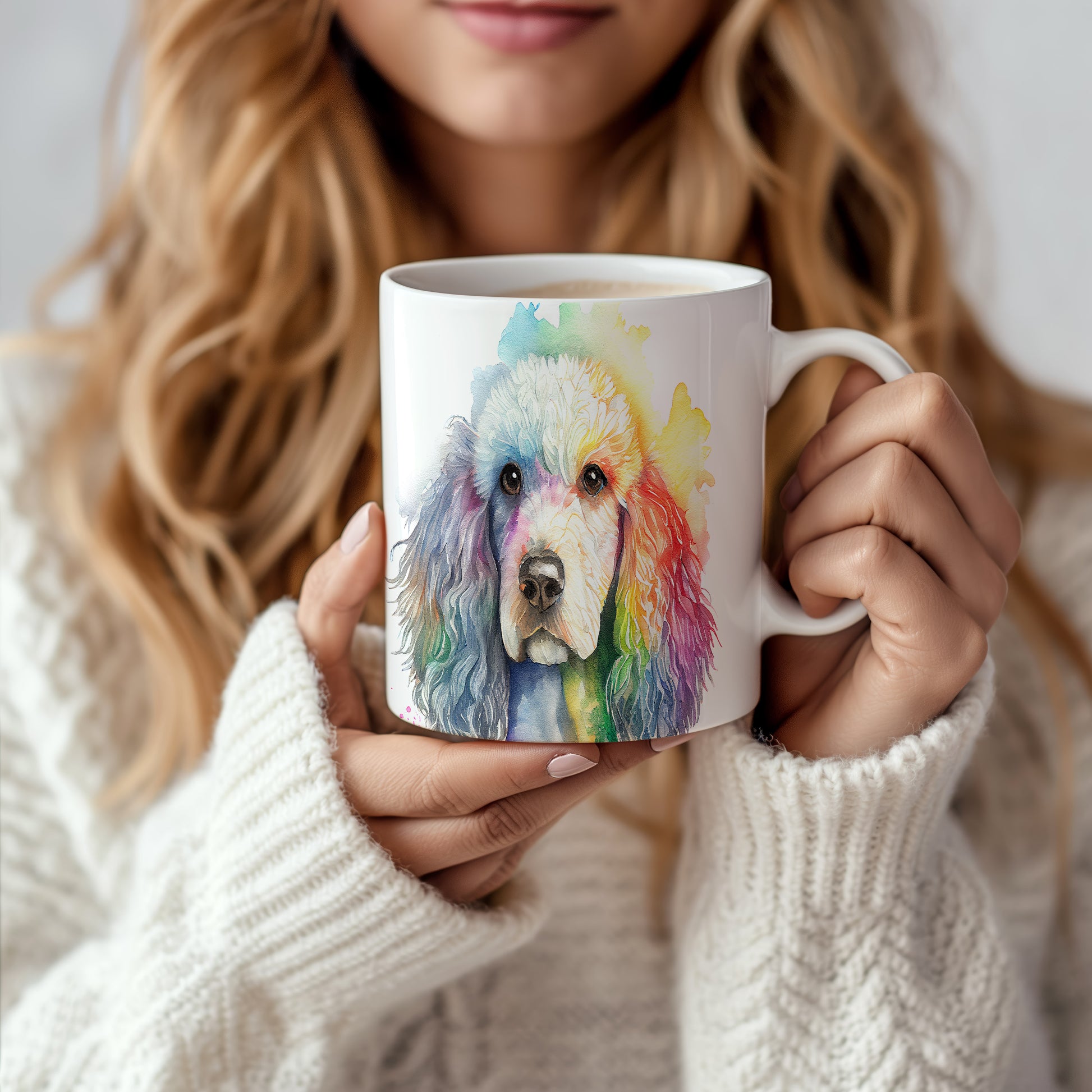 Hrnek s pudlem v duhových barvách – výrazným designem