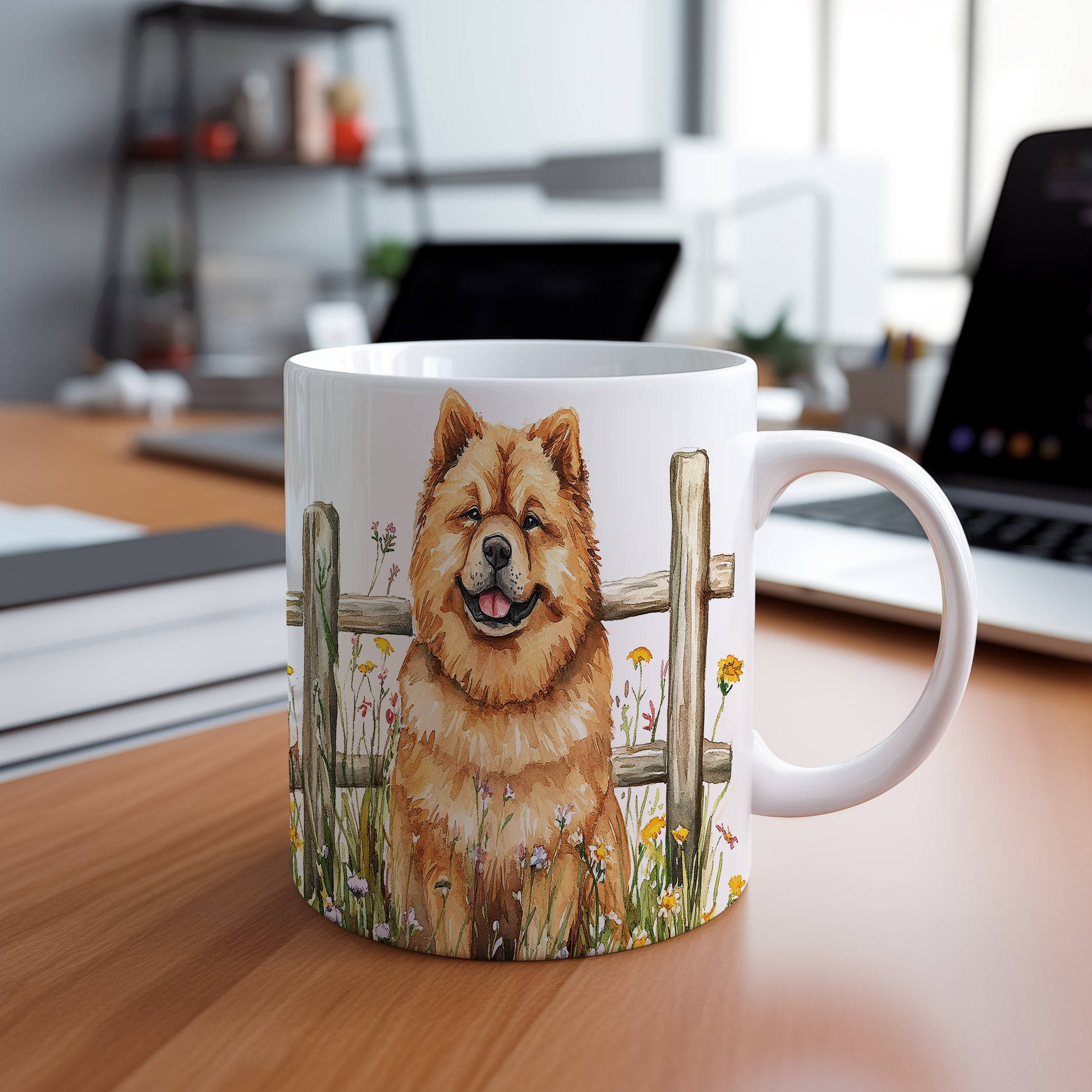 Tento keramický hrnek s motivem radostného chow psa je ideální pro milovníky psů a přírody. Skvělý tip na dárek pro každého, kdo ocení originální design. Materiál: keramika. Objem: 330 ml. Vhodné do myčky i mikrovlnky. Používání tohoto hrnku přináší radost a zútulňuje každé posezení.