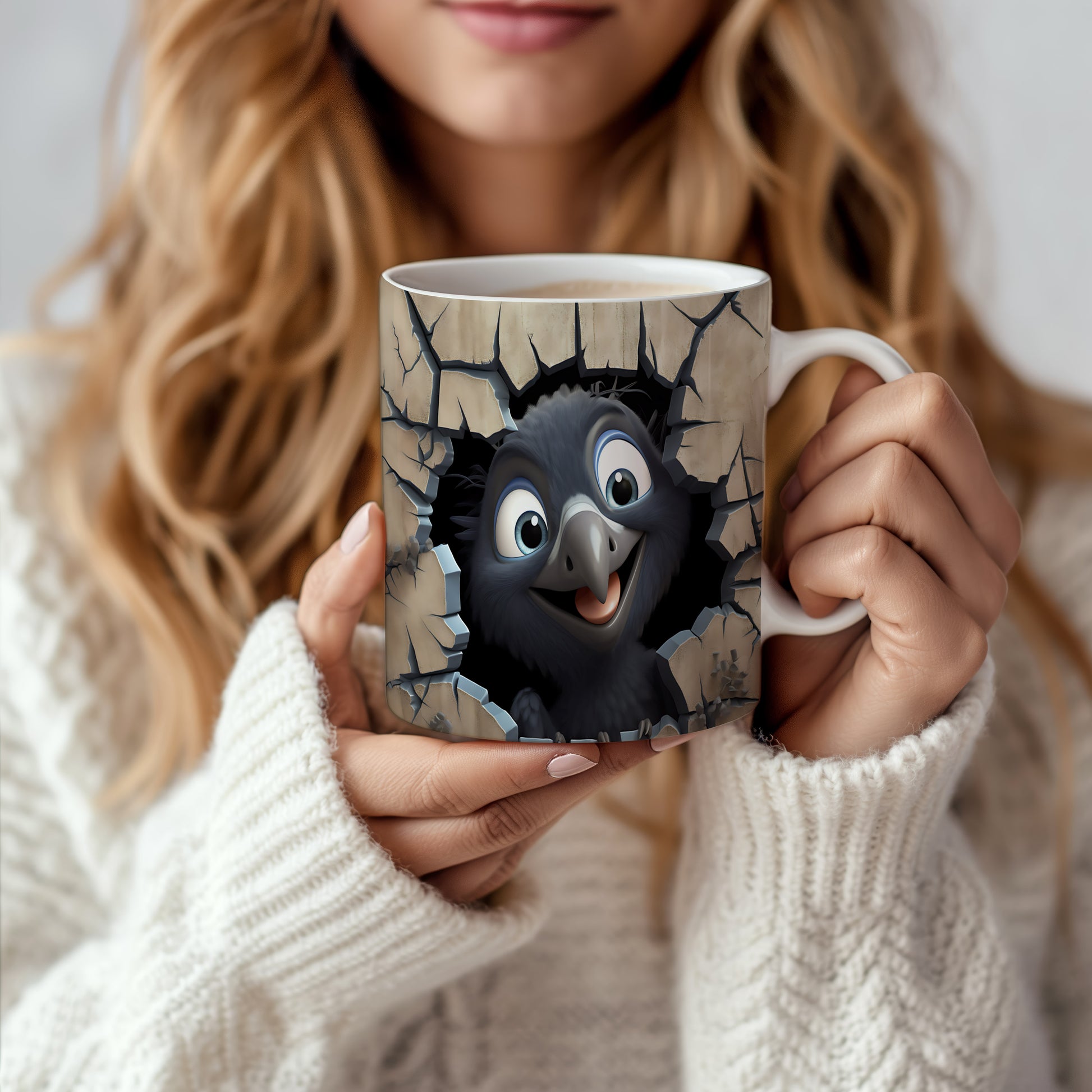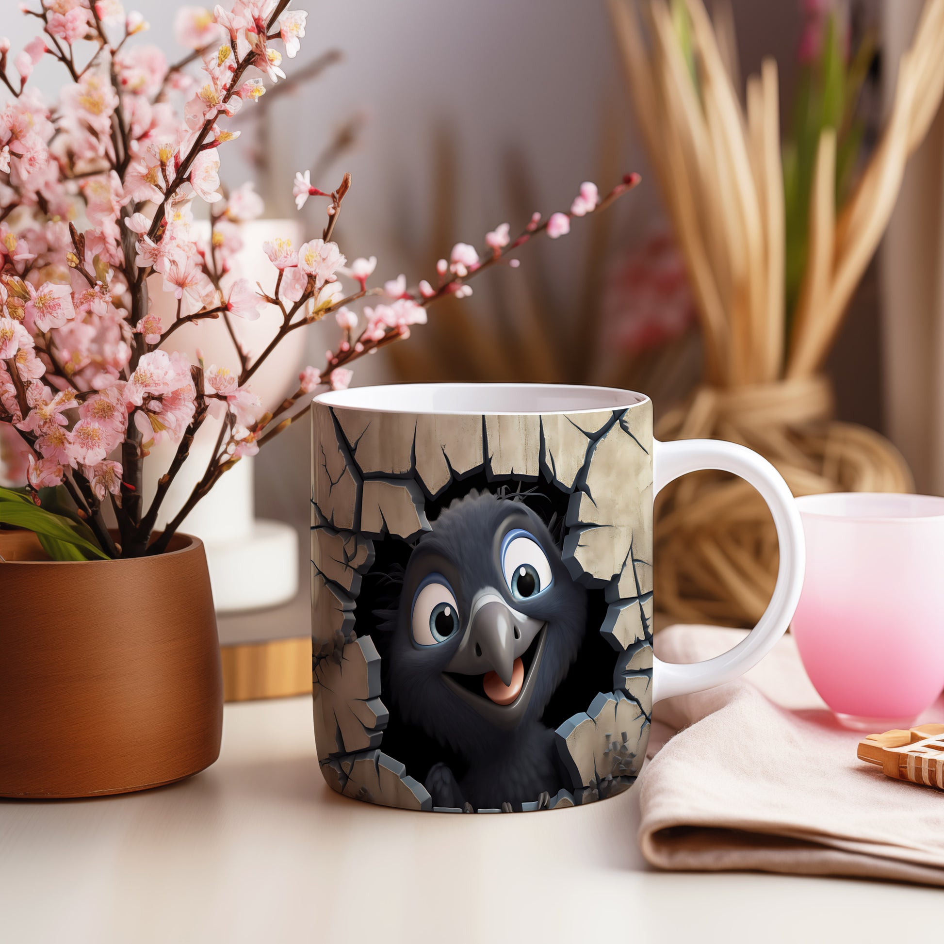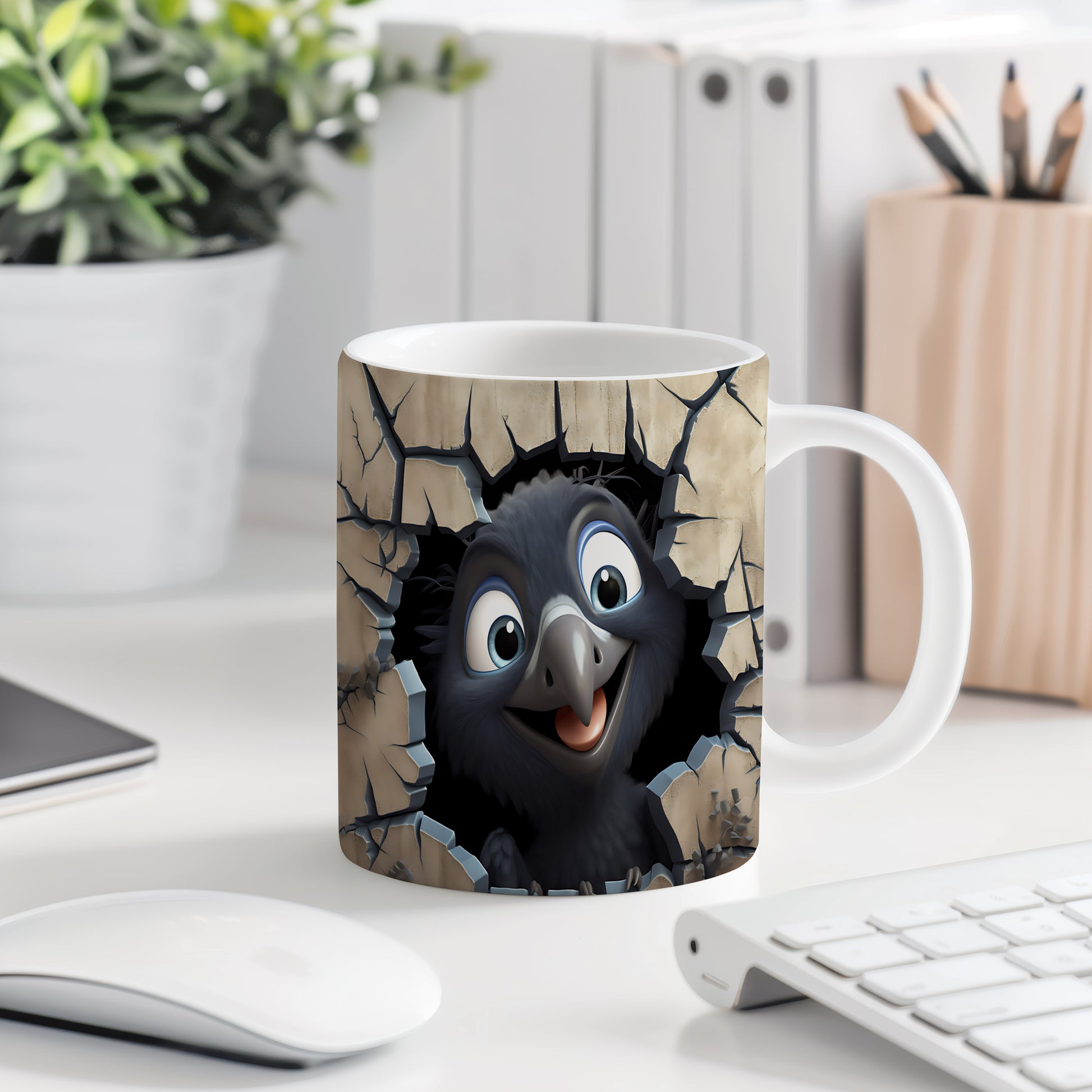 Hrnek s radostným ptáčkem 3D efektem
