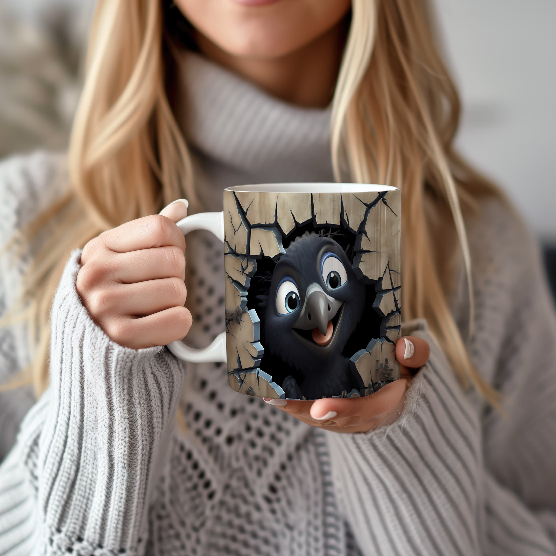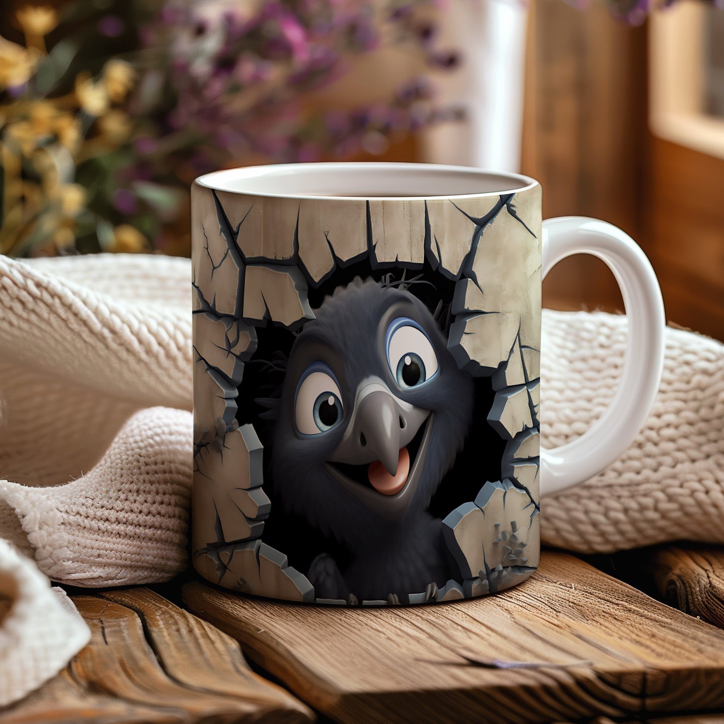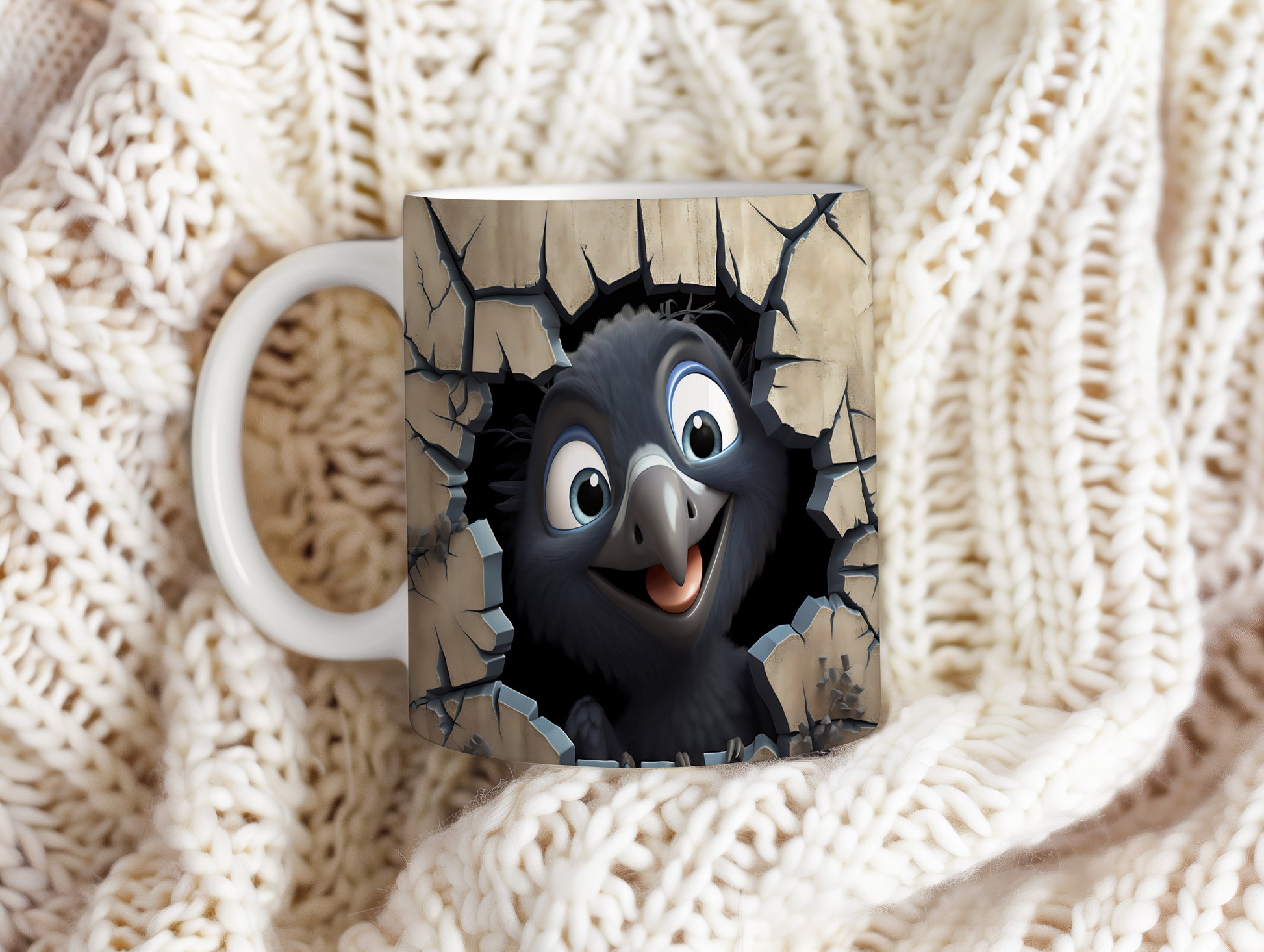 Hrnek s radostným ptáčkem 3D efektem