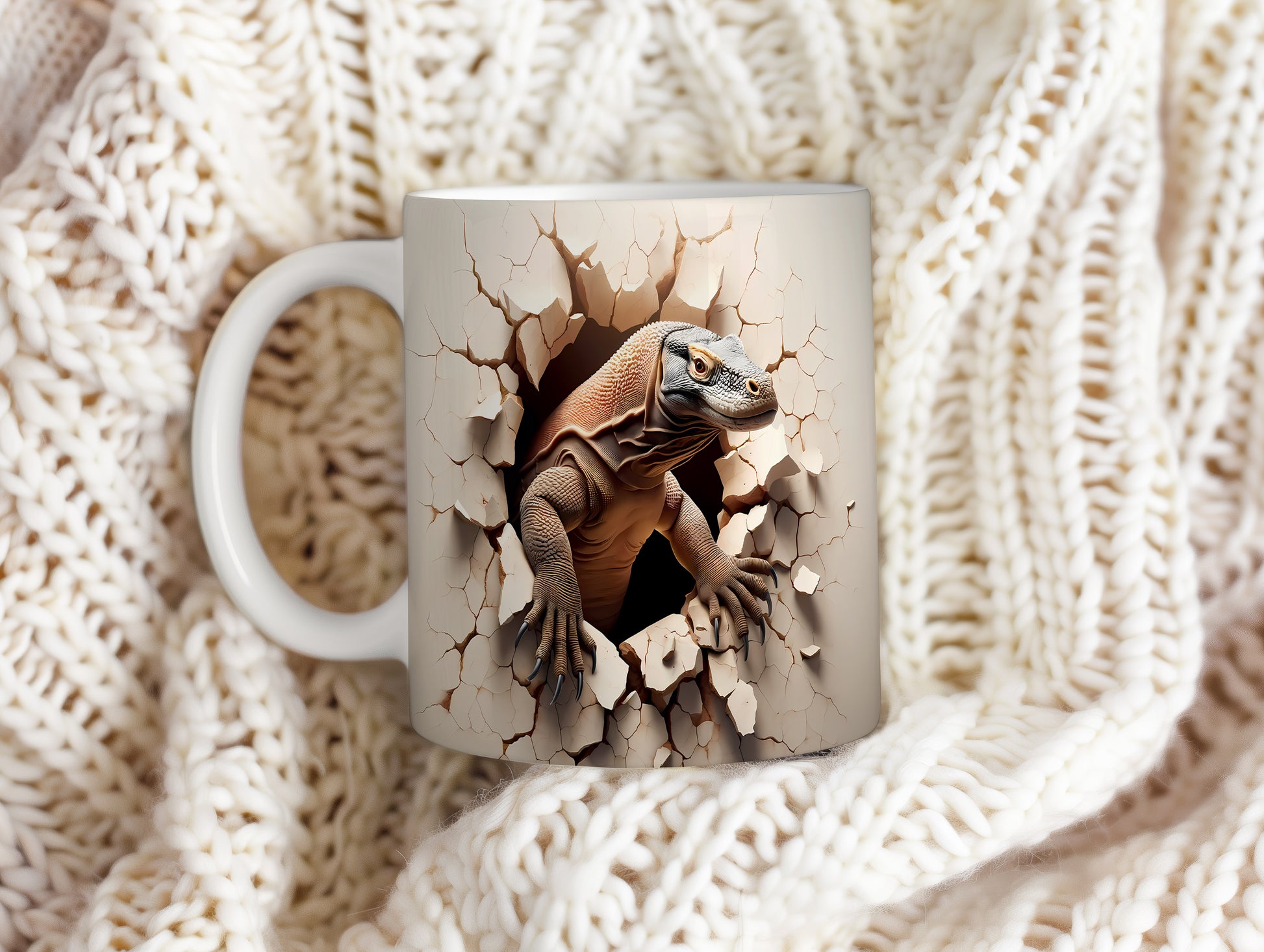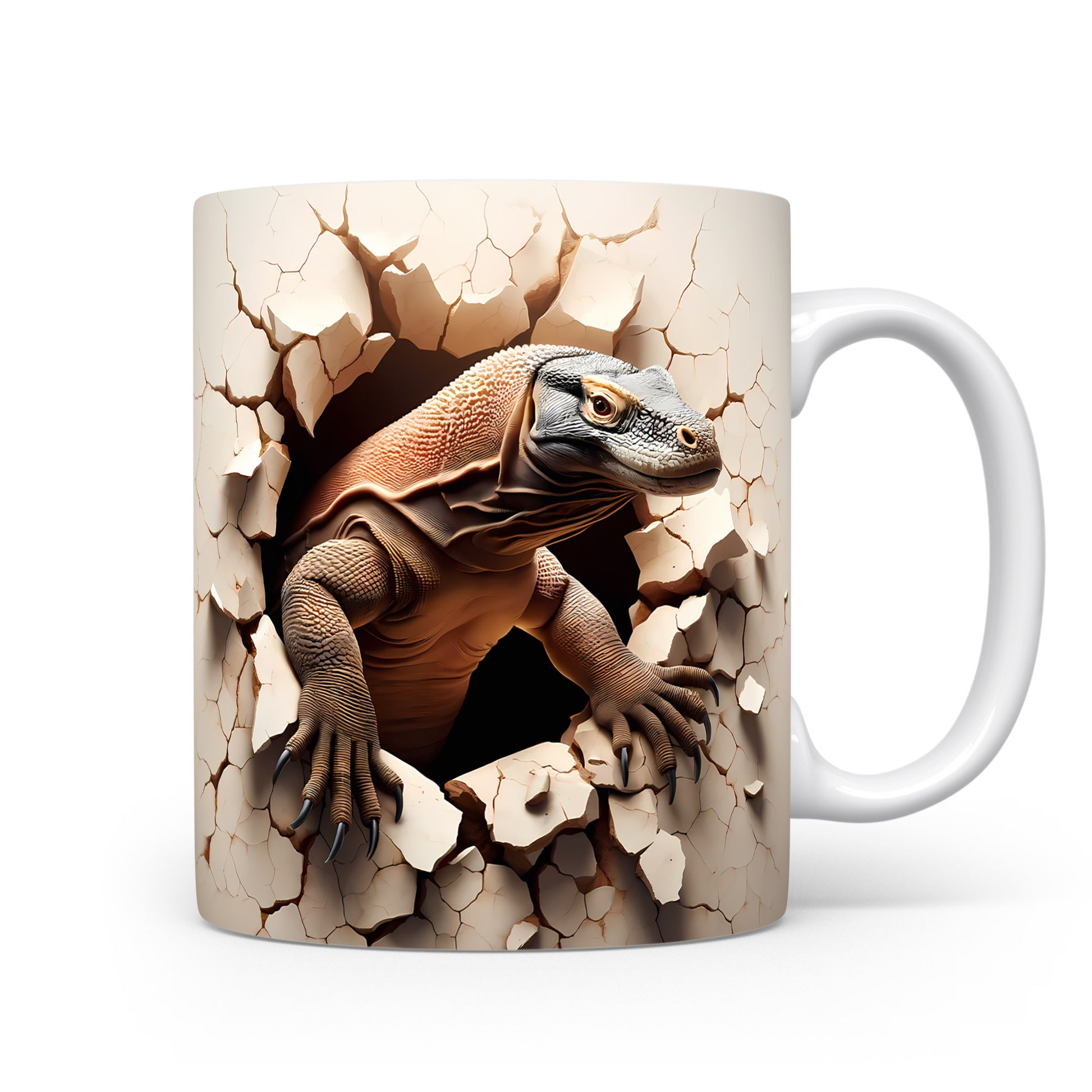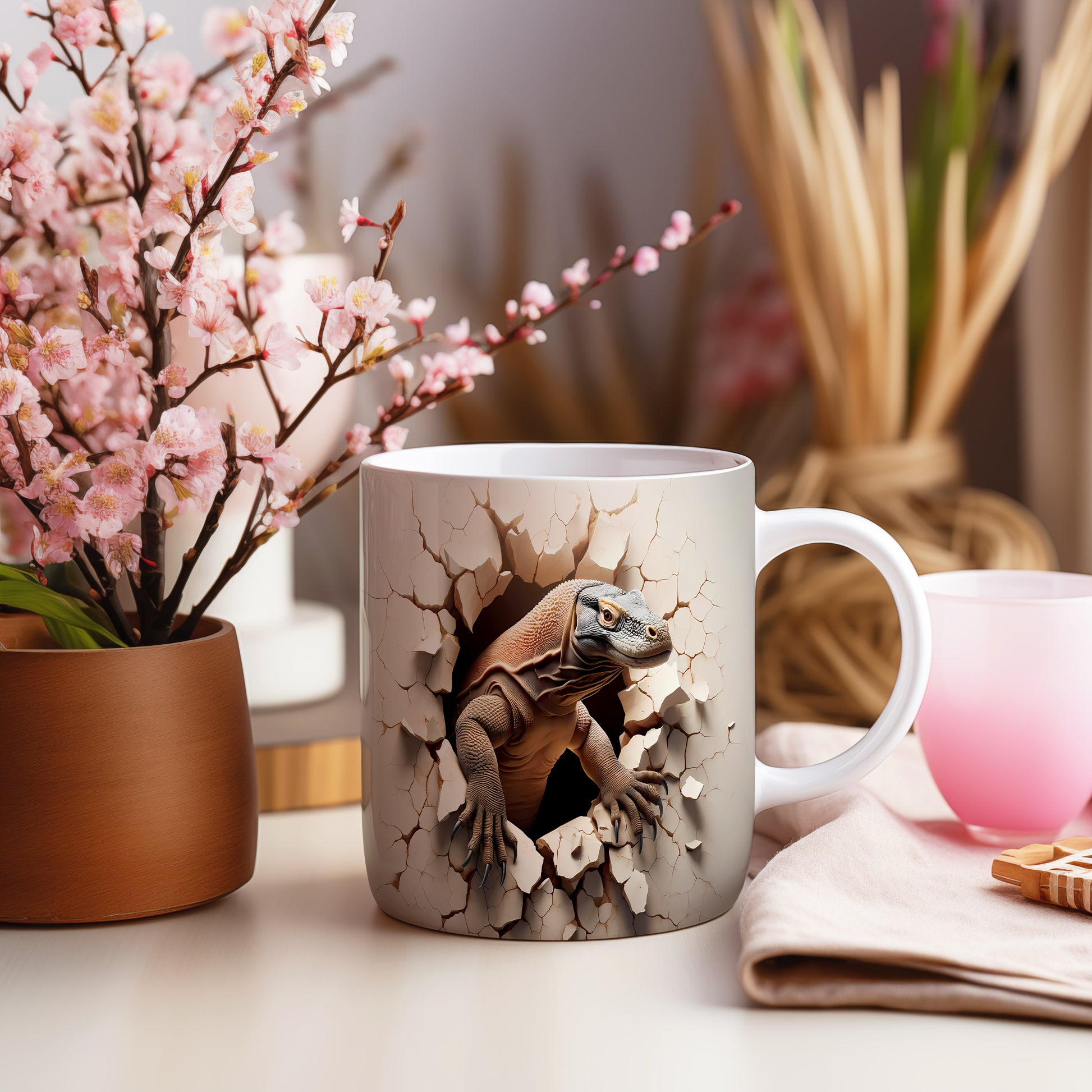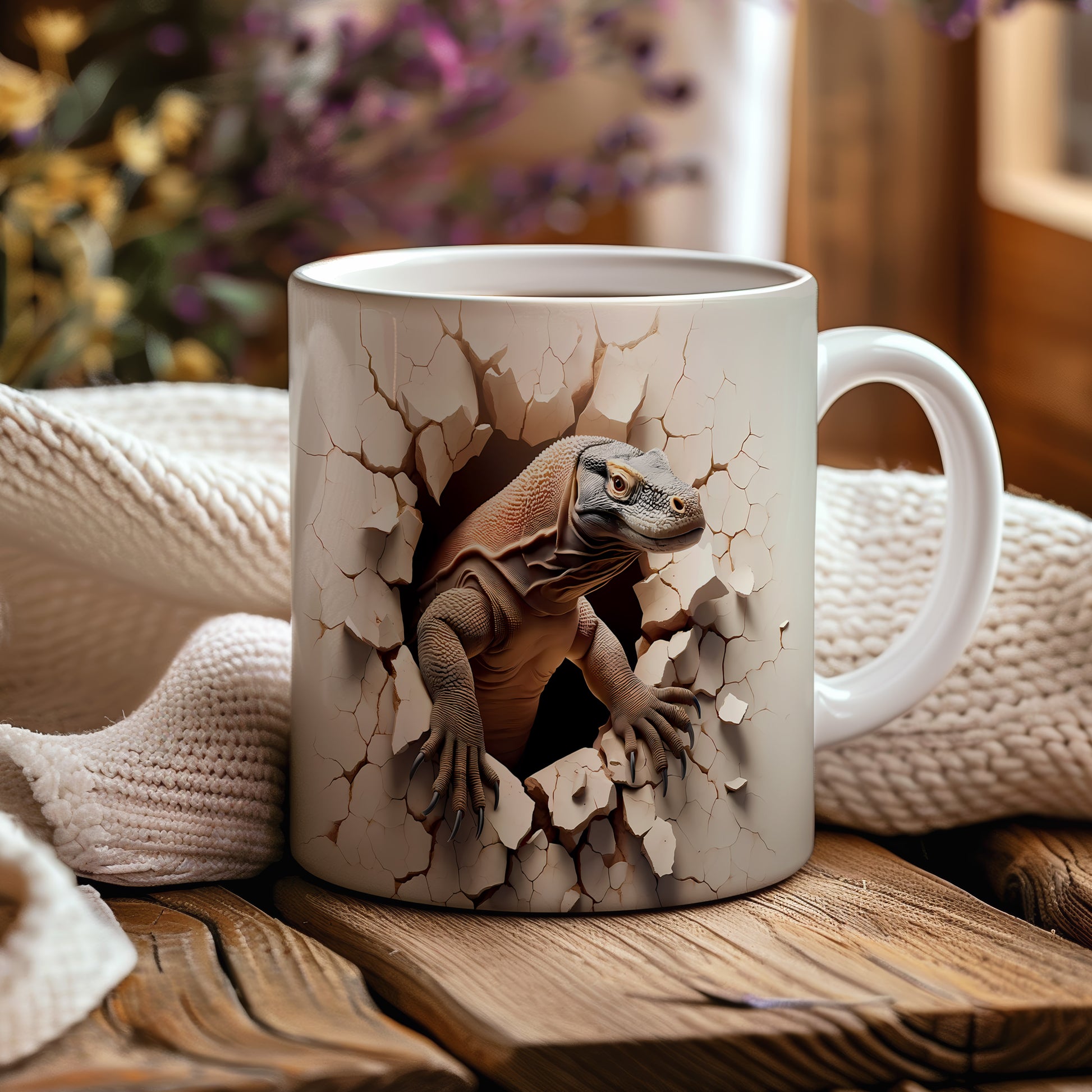 Tento keramický hrnek zobrazuje realistickou ještěrku, která vytváří dojem, že se vynořuje z povrchu. Je ideální pro milovníky přírody a exotických zvířat, skvělý tip na dárek pro každého, kdo ocení originální design. Materiál: keramika. Objem: 330 ml. Vhodné do myčky i mikrovlnky. Díky svému jedinečnému vzhledu přinese do každodenního pití špetku dobrodružství.