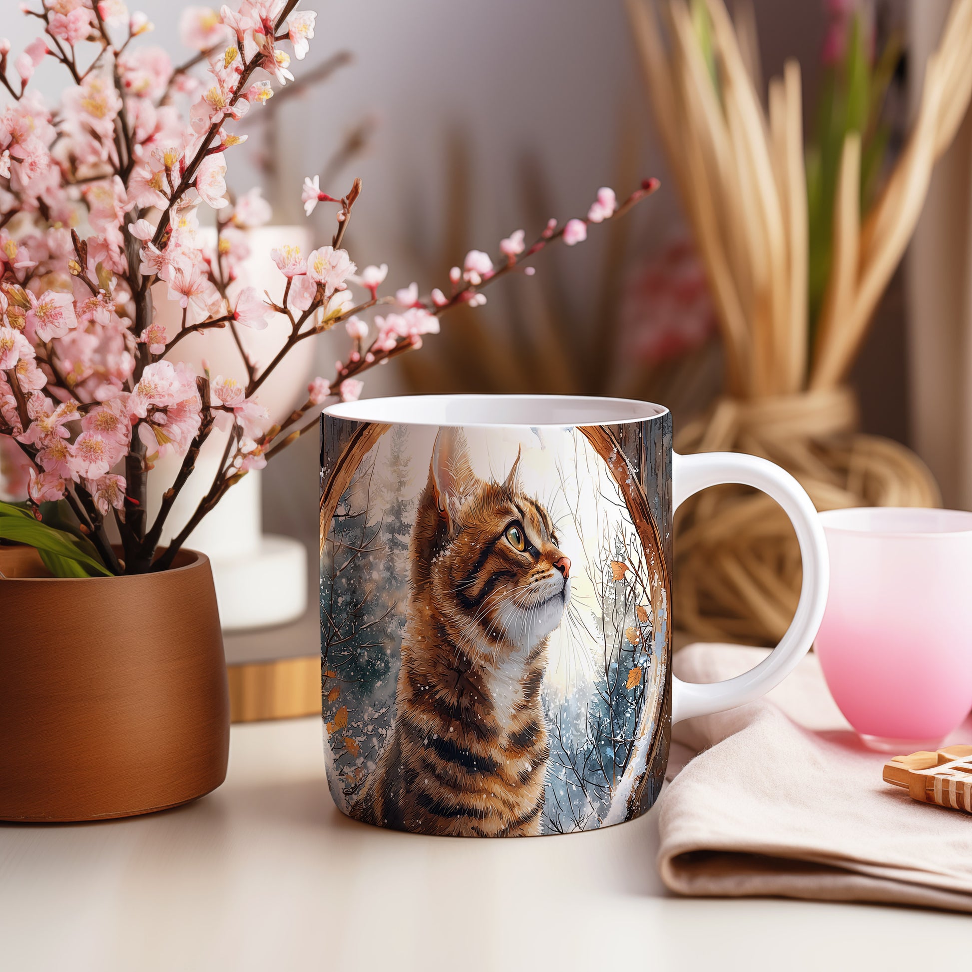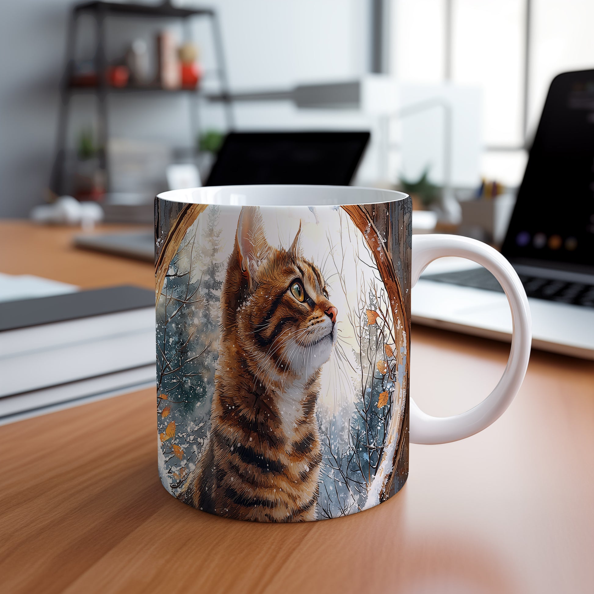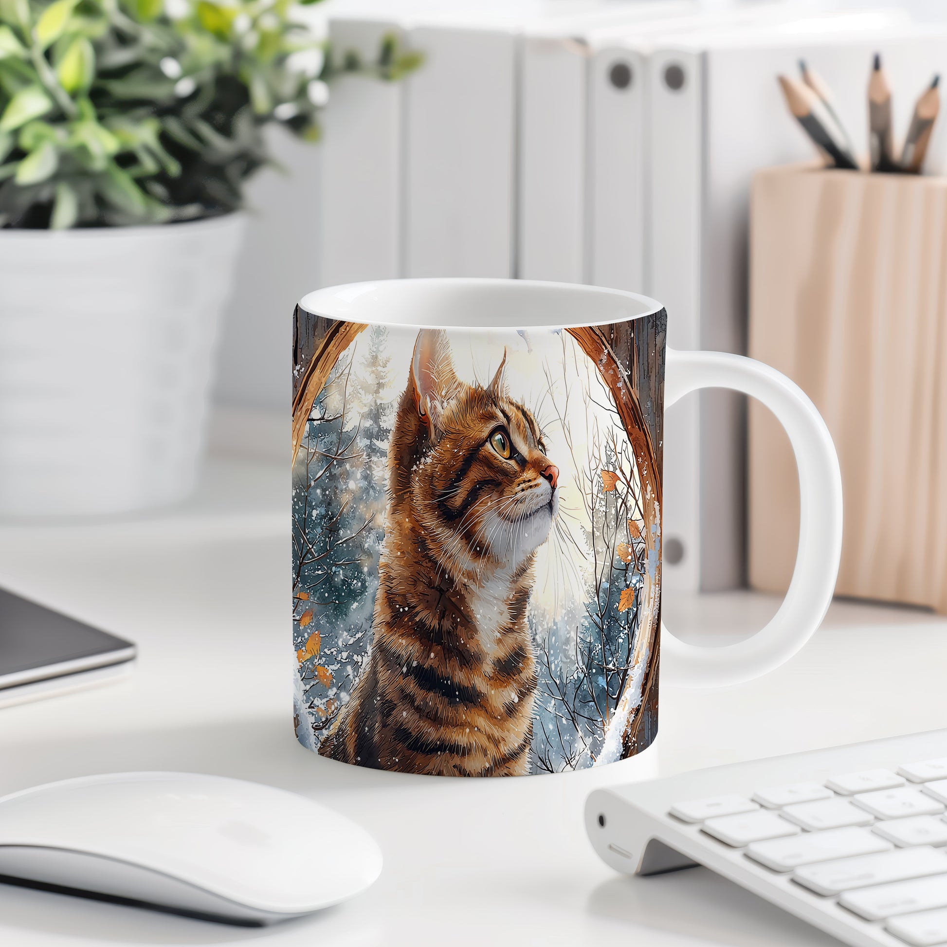 Tento hrnek s realistickou kočkou zaujme detailní ilustrací a zimní scenérií. Je ideální pro milovníky koček a skvělým dárkem pro přátele či rodinu. Materiál: keramika. Objem: 330 ml. Vhodné do myčky i mikrovlnky. Užívejte si svůj oblíbený nápoj s tímto stylovým hrnkem.