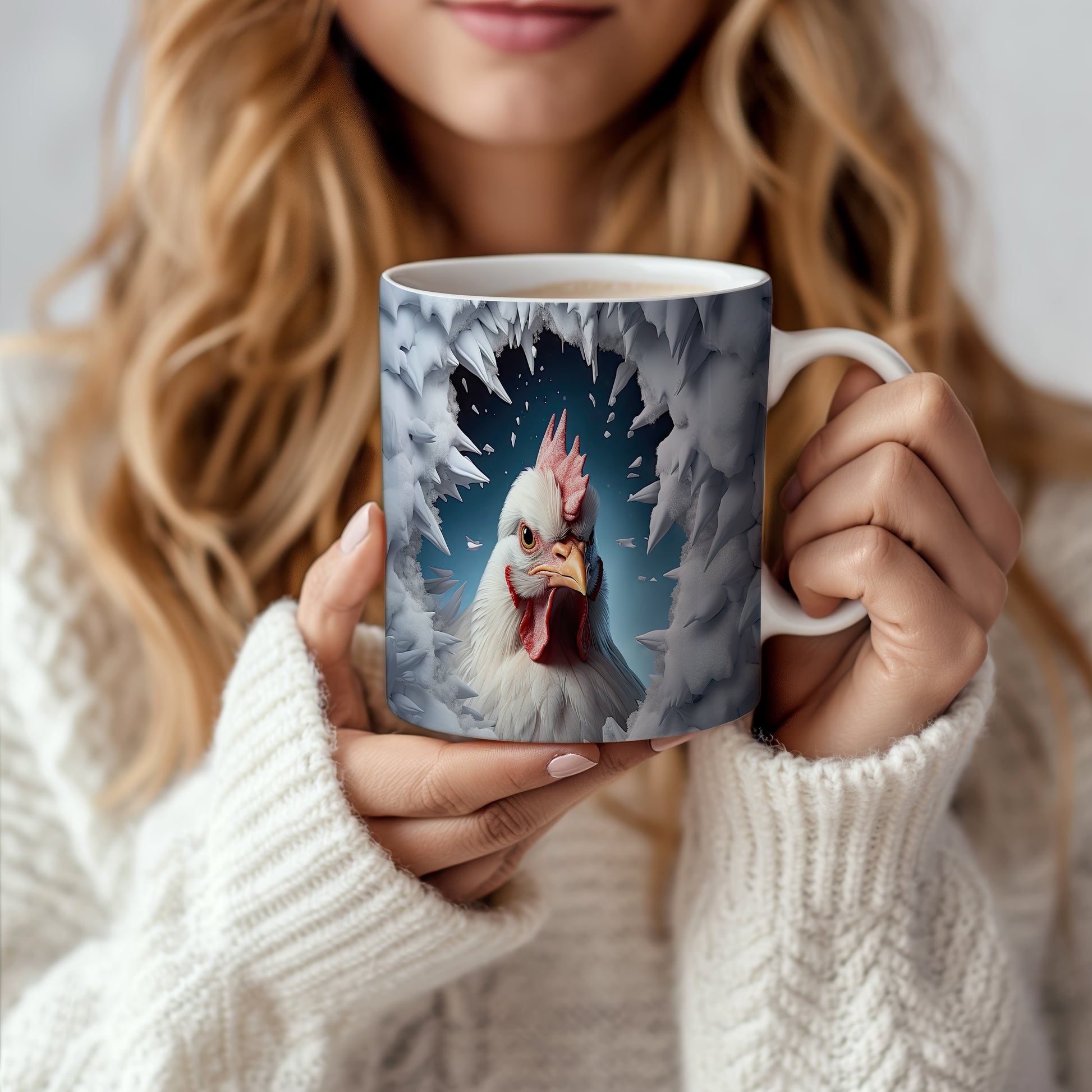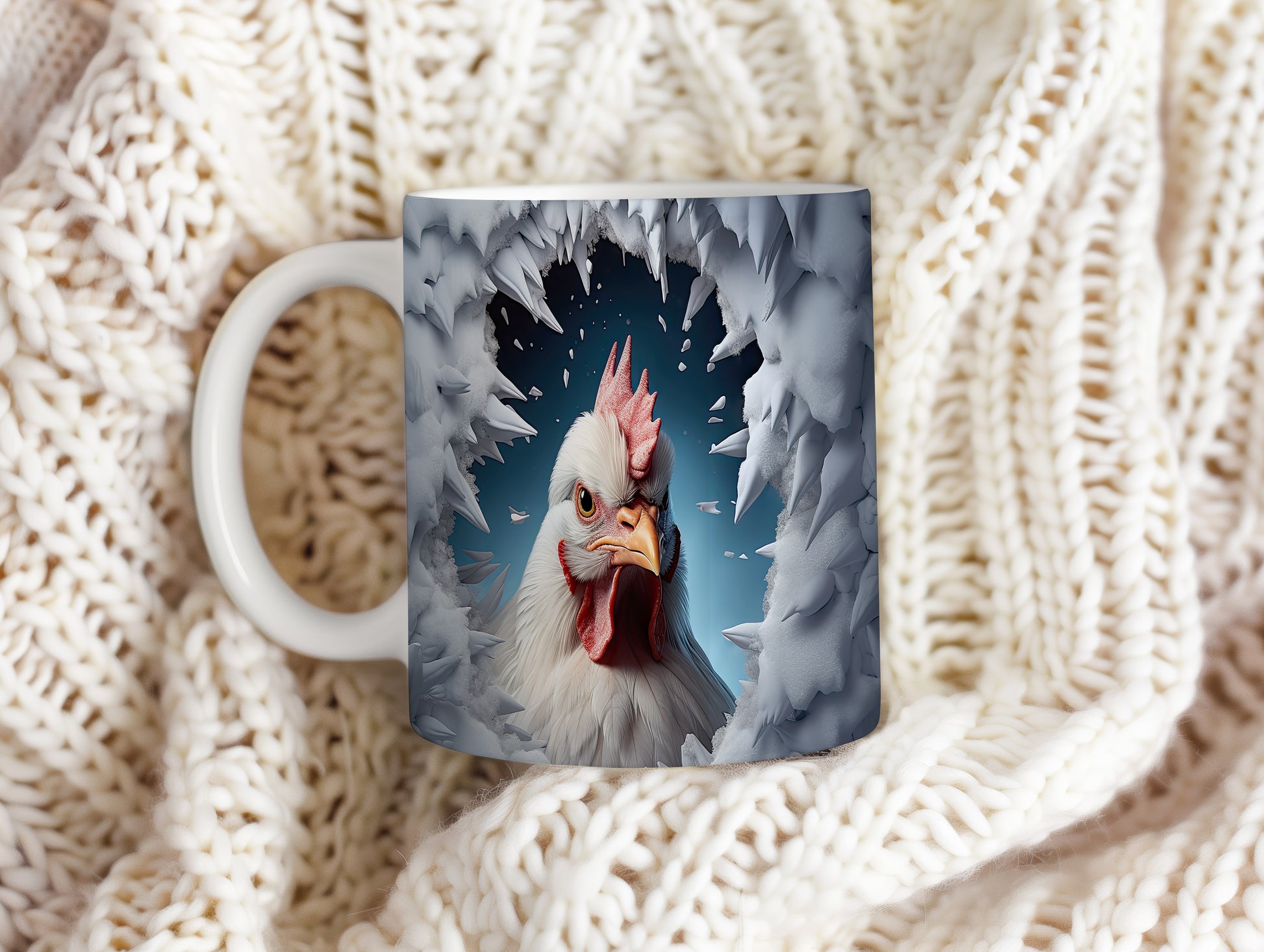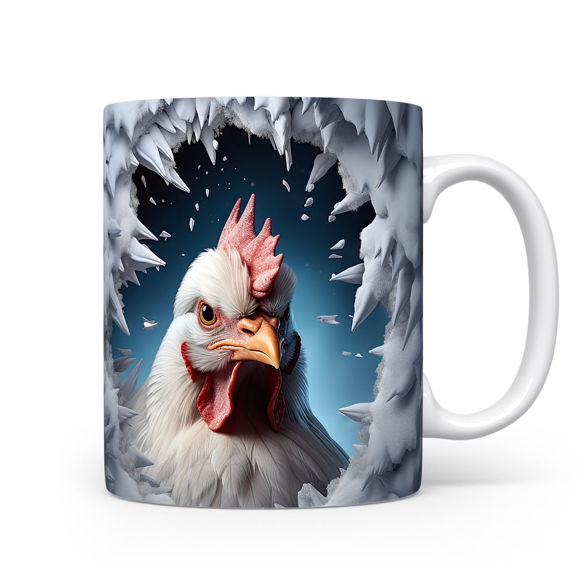 Tento hrnek zobrazuje realistickou slepici, která vypadá, jako by se snažila prorazit ledovou stěnu. Je ideální pro milovníky zvířat a skvělým dárkem pro každého, kdo ocení originální design. Materiál: keramika. Objem: 330 ml. Vhodné do myčky i mikrovlnky. Používání tohoto hrnku přináší radost z každého doušku vašeho oblíbeného nápoje.