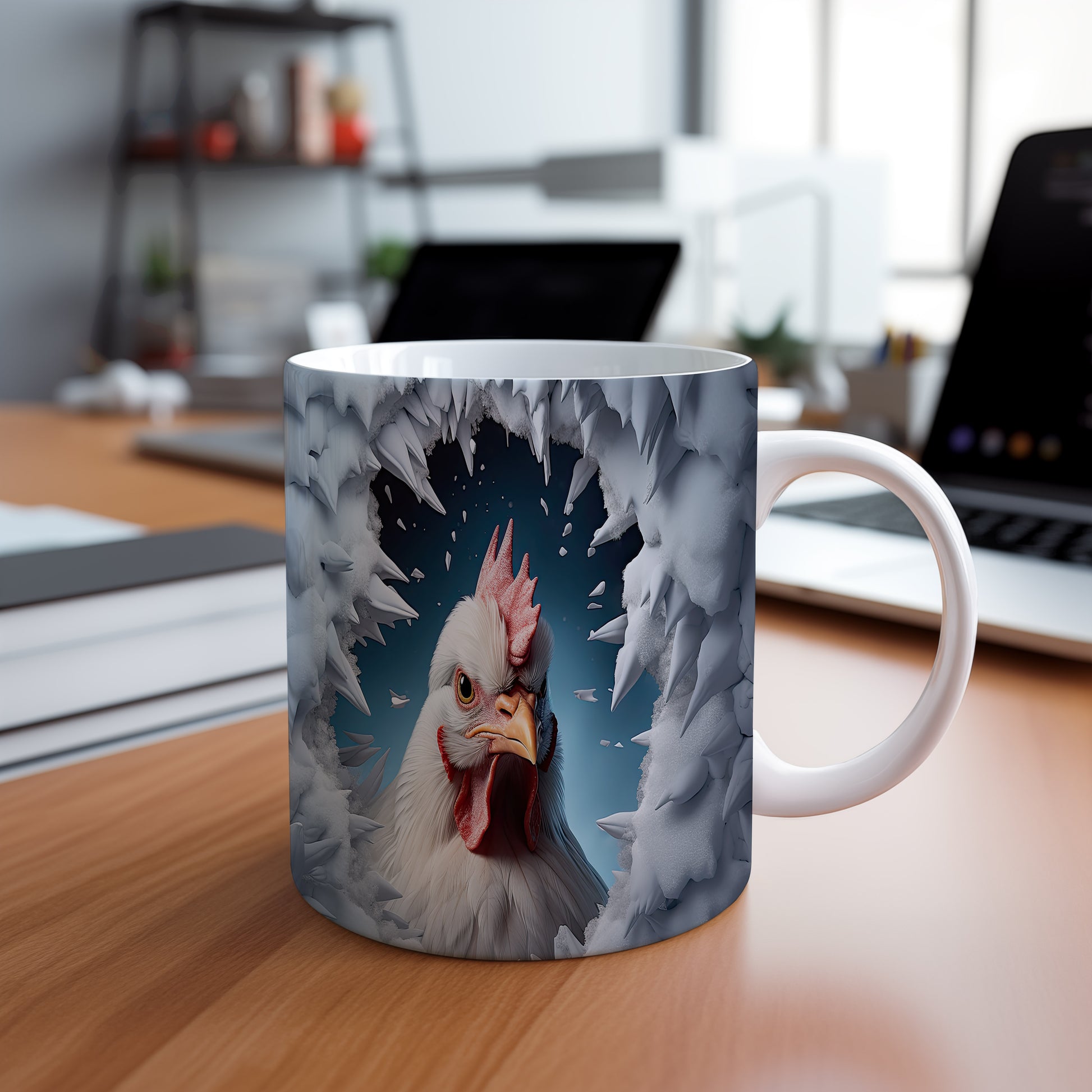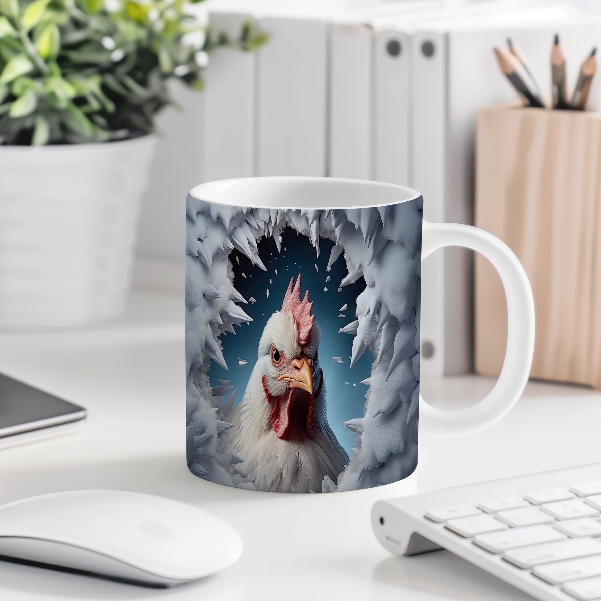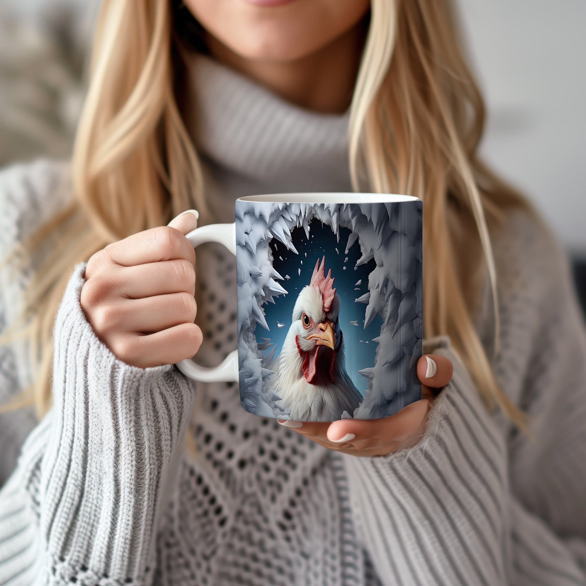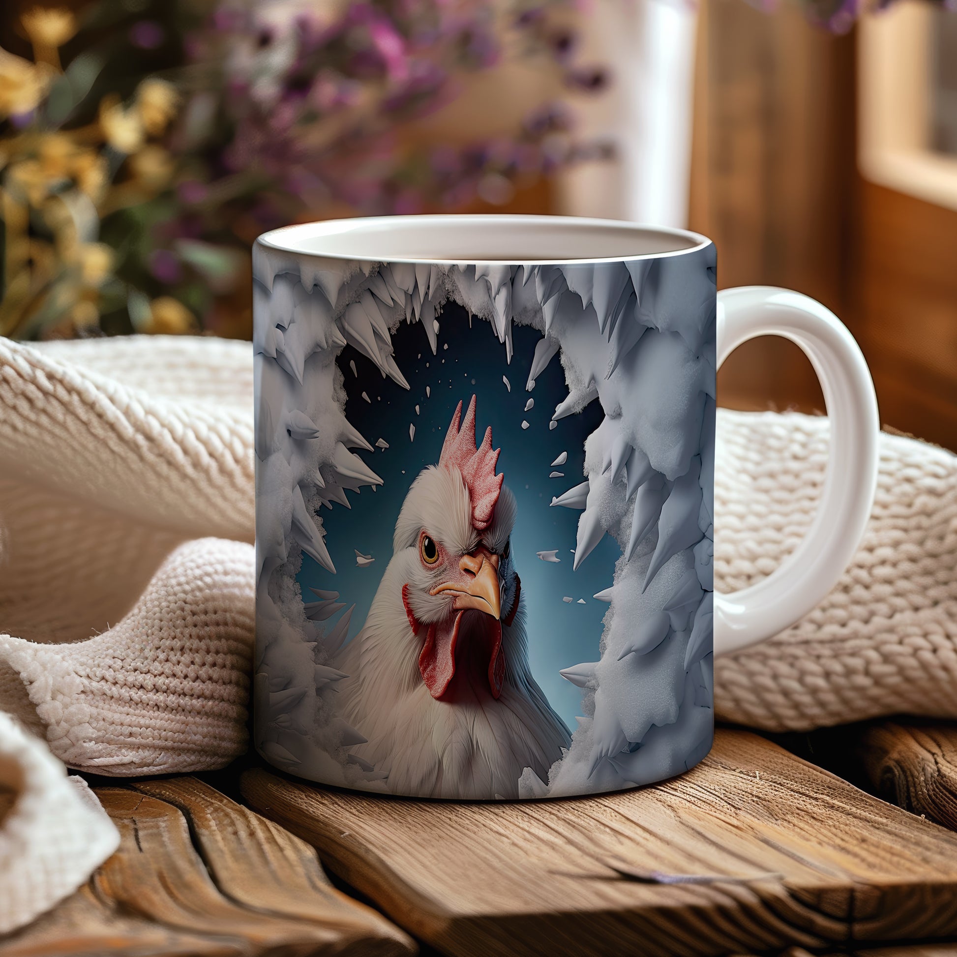 Tento hrnek zobrazuje realistickou slepici, která vypadá, jako by se snažila prorazit ledovou stěnu. Je ideální pro milovníky zvířat a skvělým dárkem pro každého, kdo ocení originální design. Materiál: keramika. Objem: 330 ml. Vhodné do myčky i mikrovlnky. Používání tohoto hrnku přináší radost z každého doušku vašeho oblíbeného nápoje.