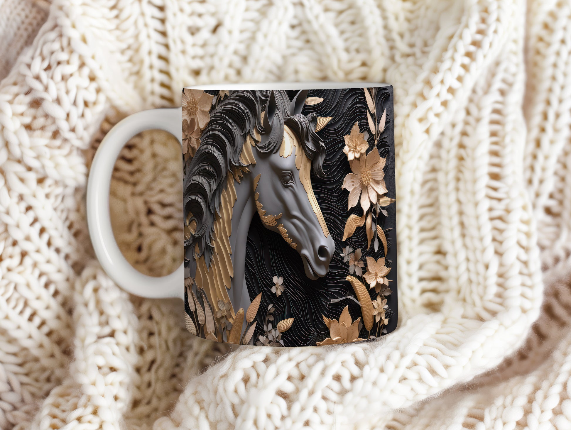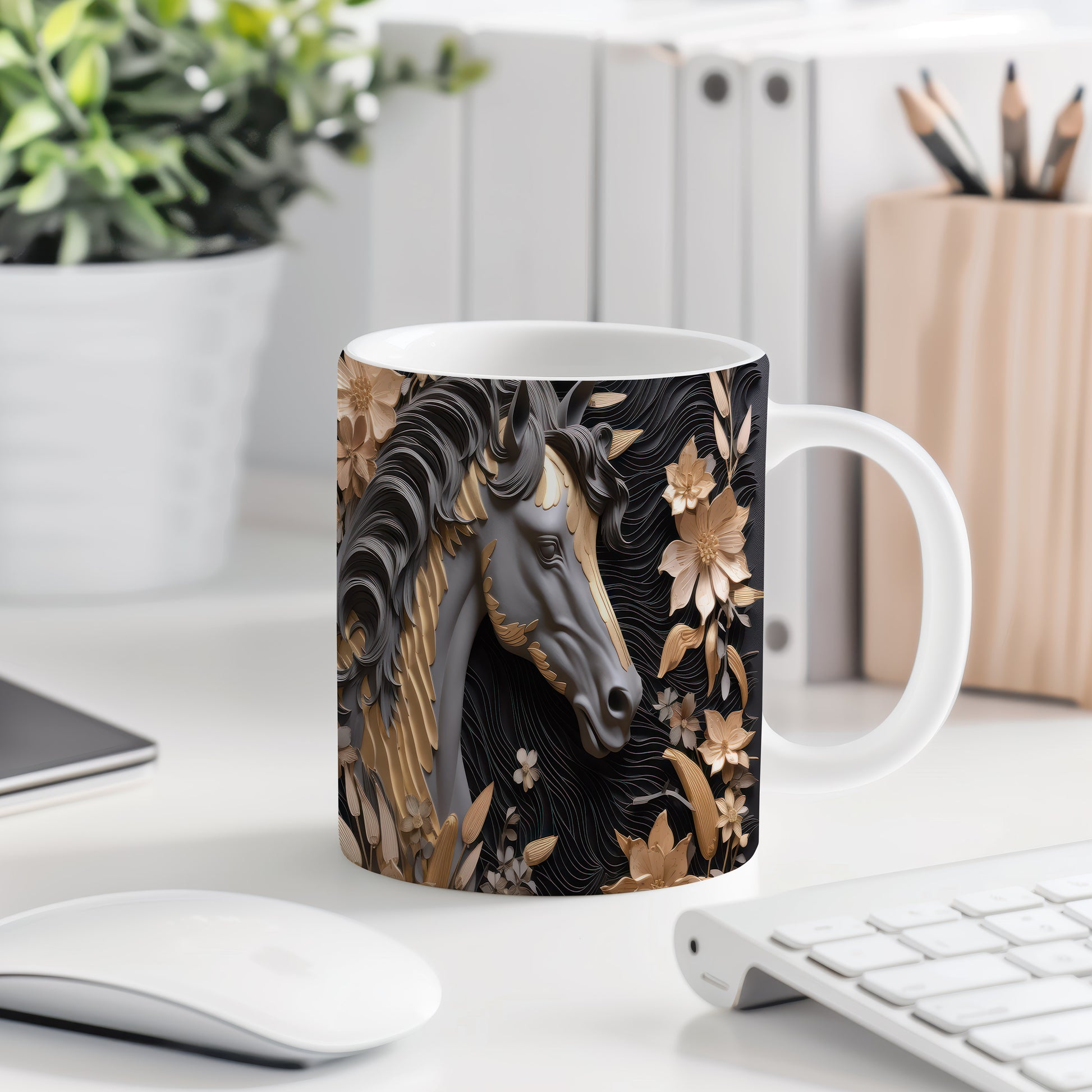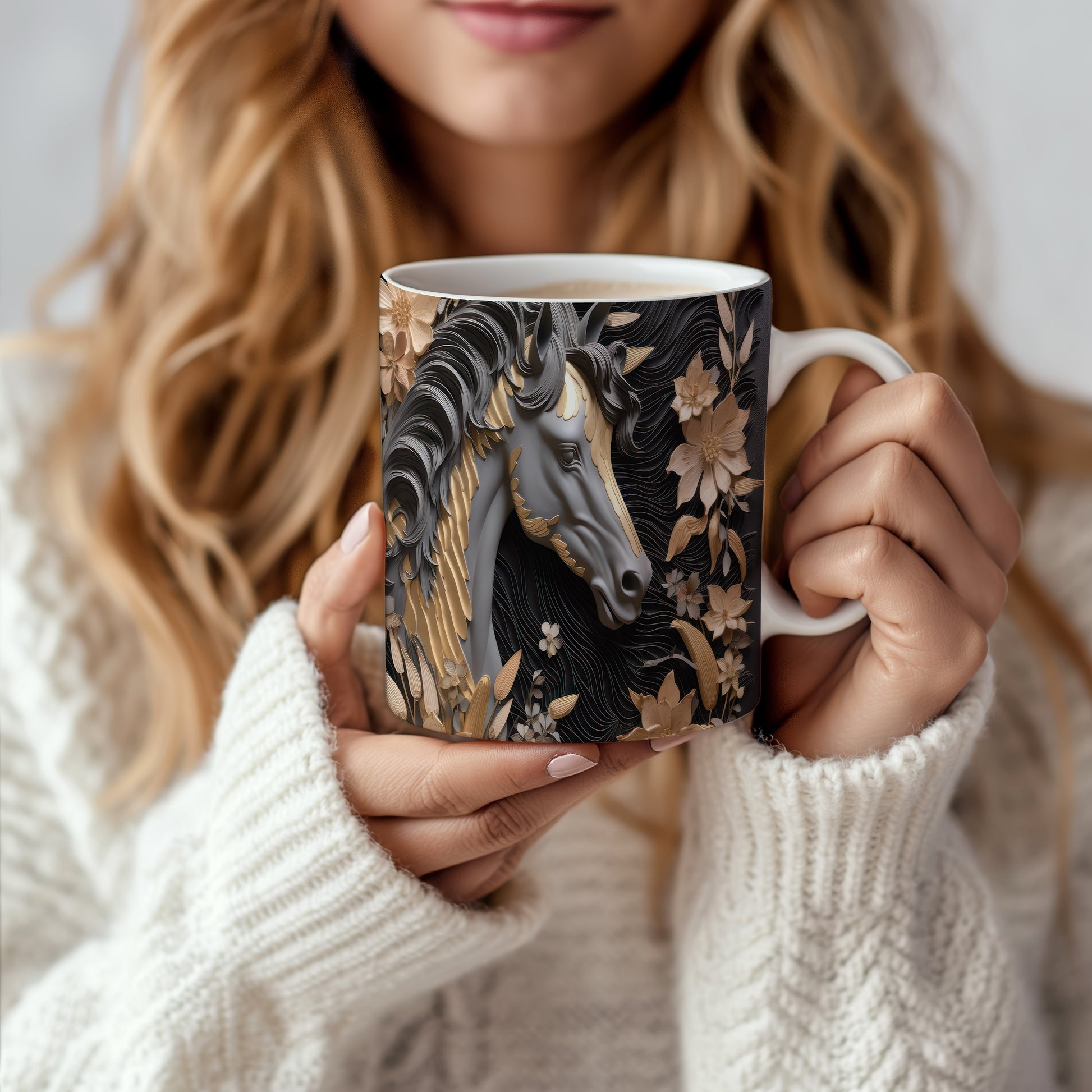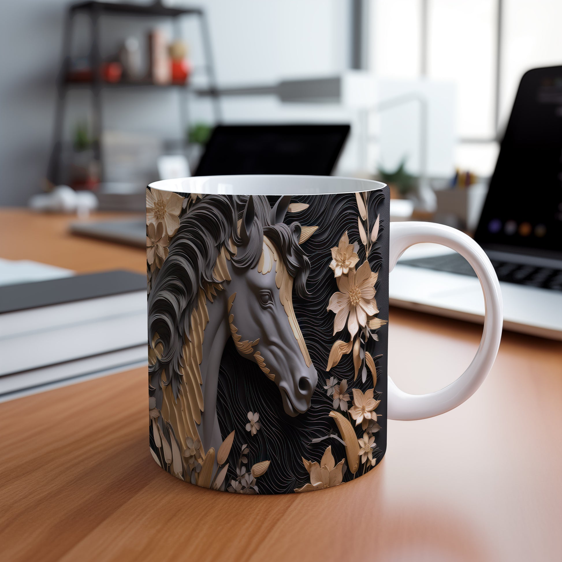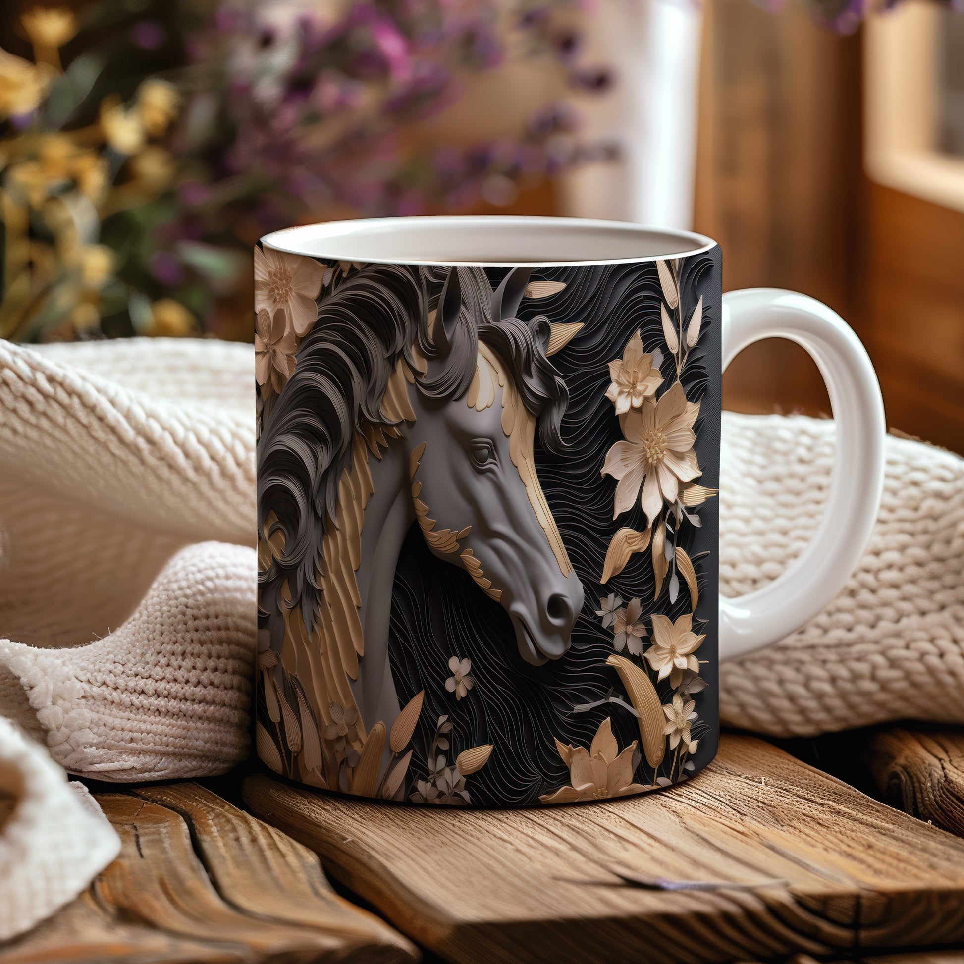 Hrnek s detailním motivem hlavy koně a květin představuje elegantní design. Je ideální pro milovníky koní a přírody, skvělý tip na dárek pro přátele nebo rodinu. Materiál: keramika. Objem: 330 ml. Vhodné do myčky i mikrovlnky. Tento hrnek přináší radost z každého doušku a zkrášlí váš každodenní rituál pití.