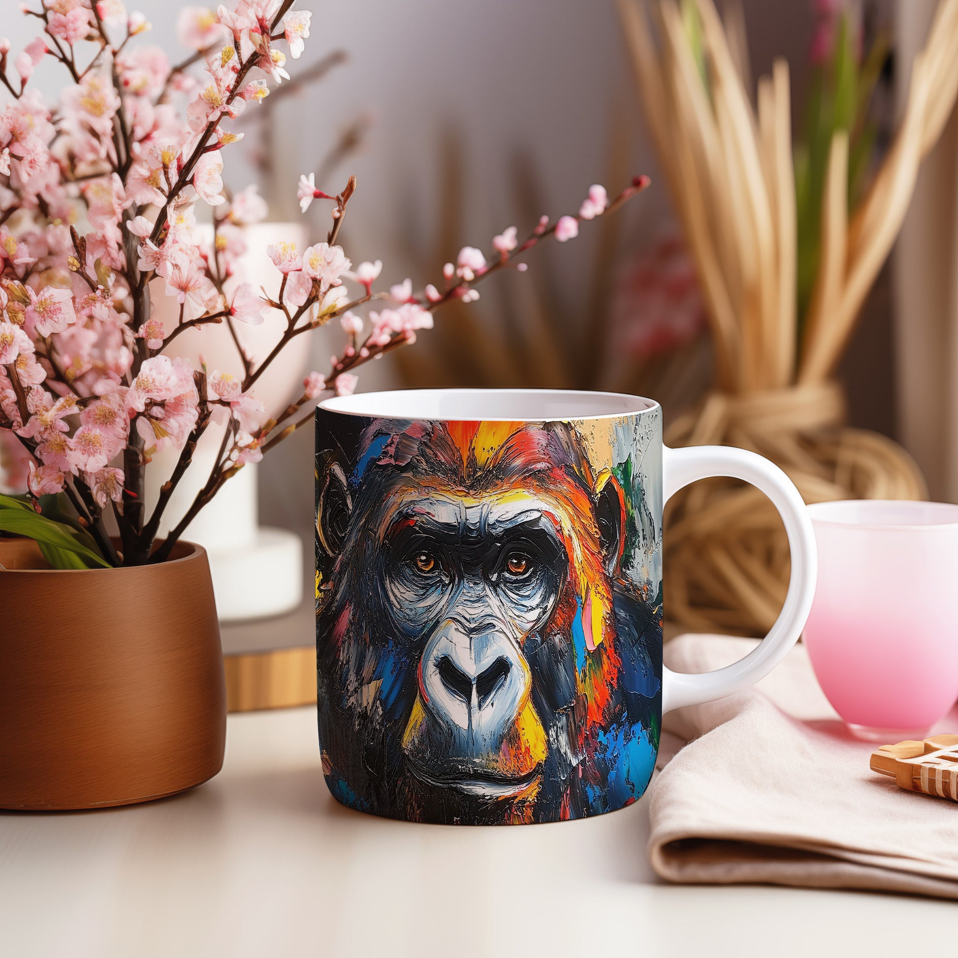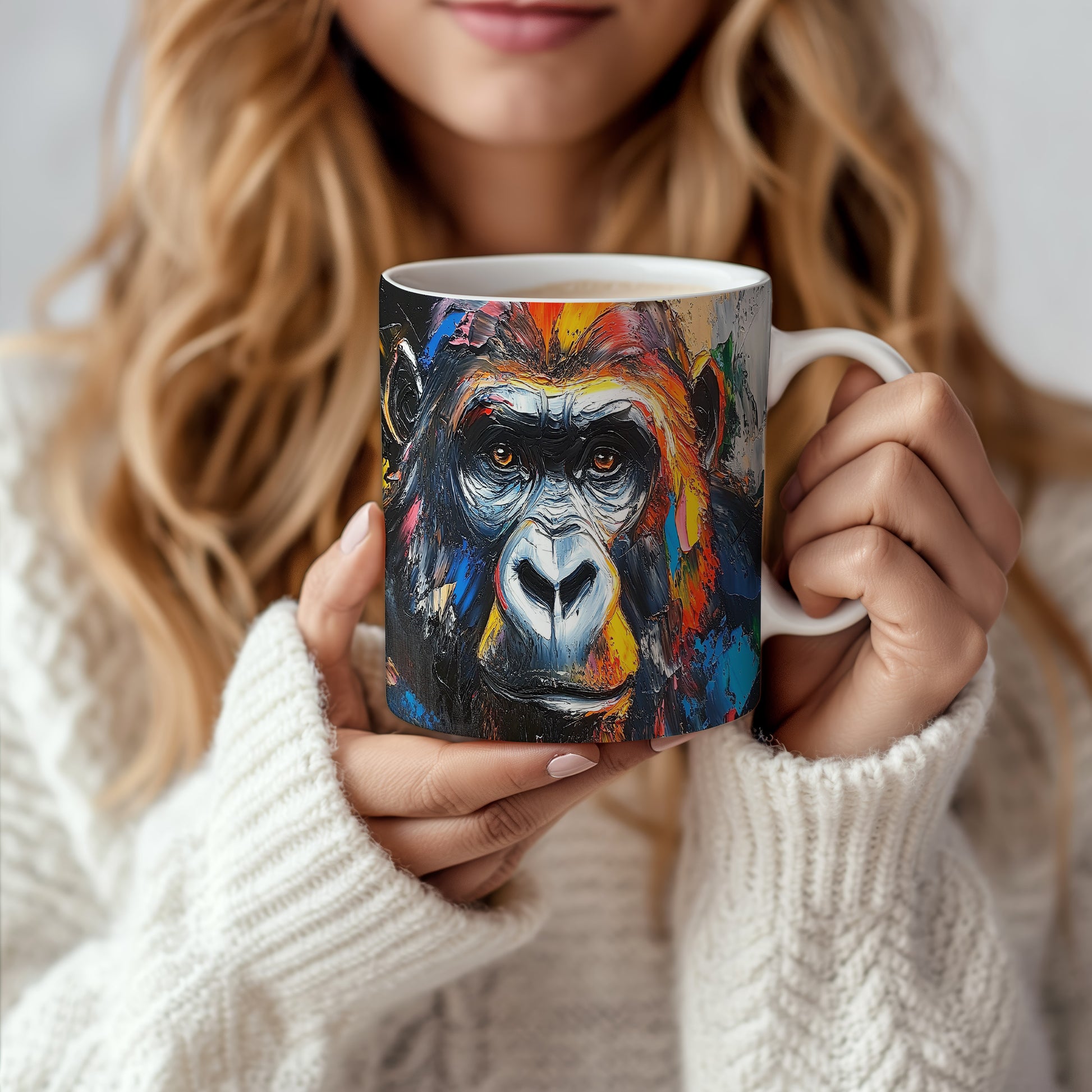Hrnek s realistickým motivem gorily