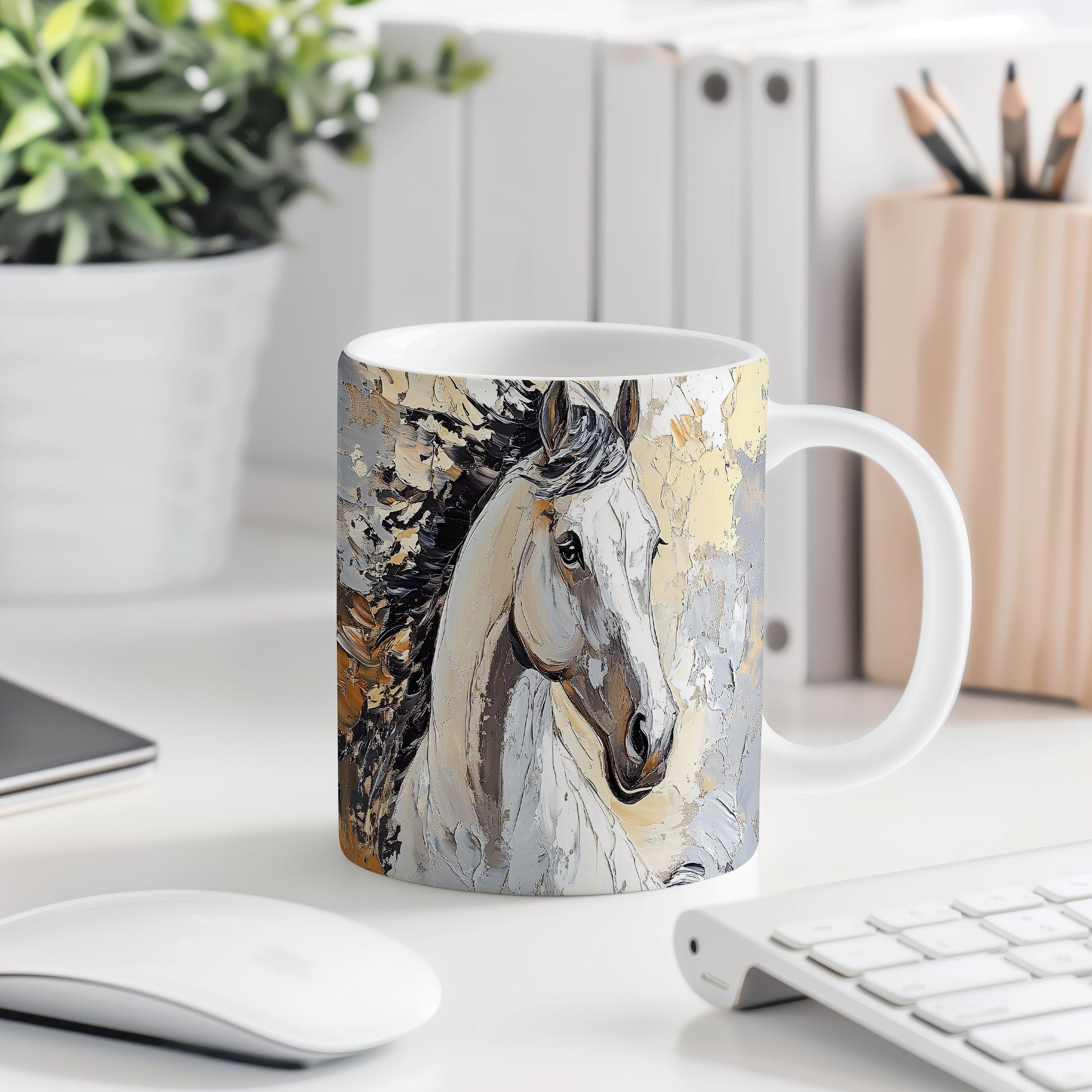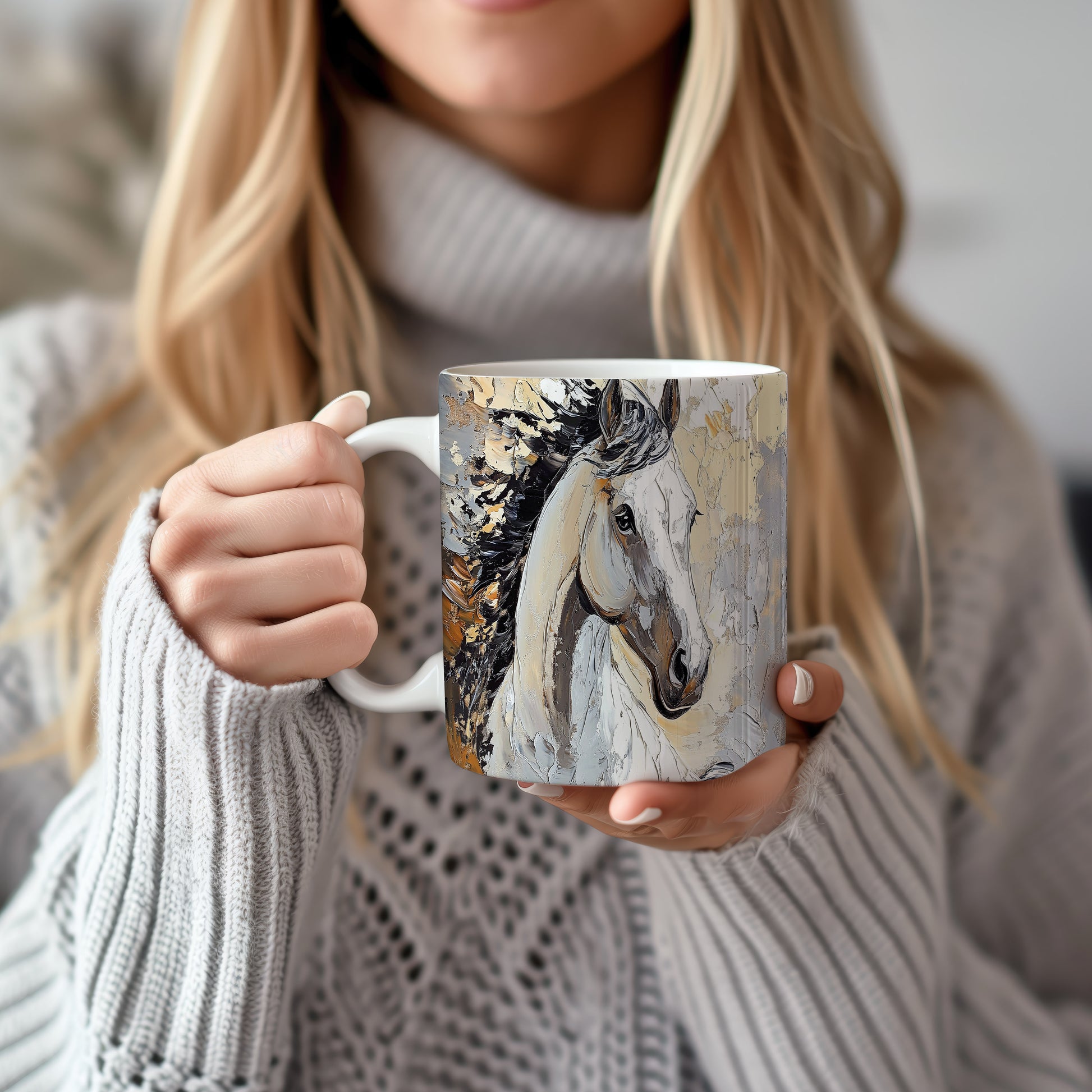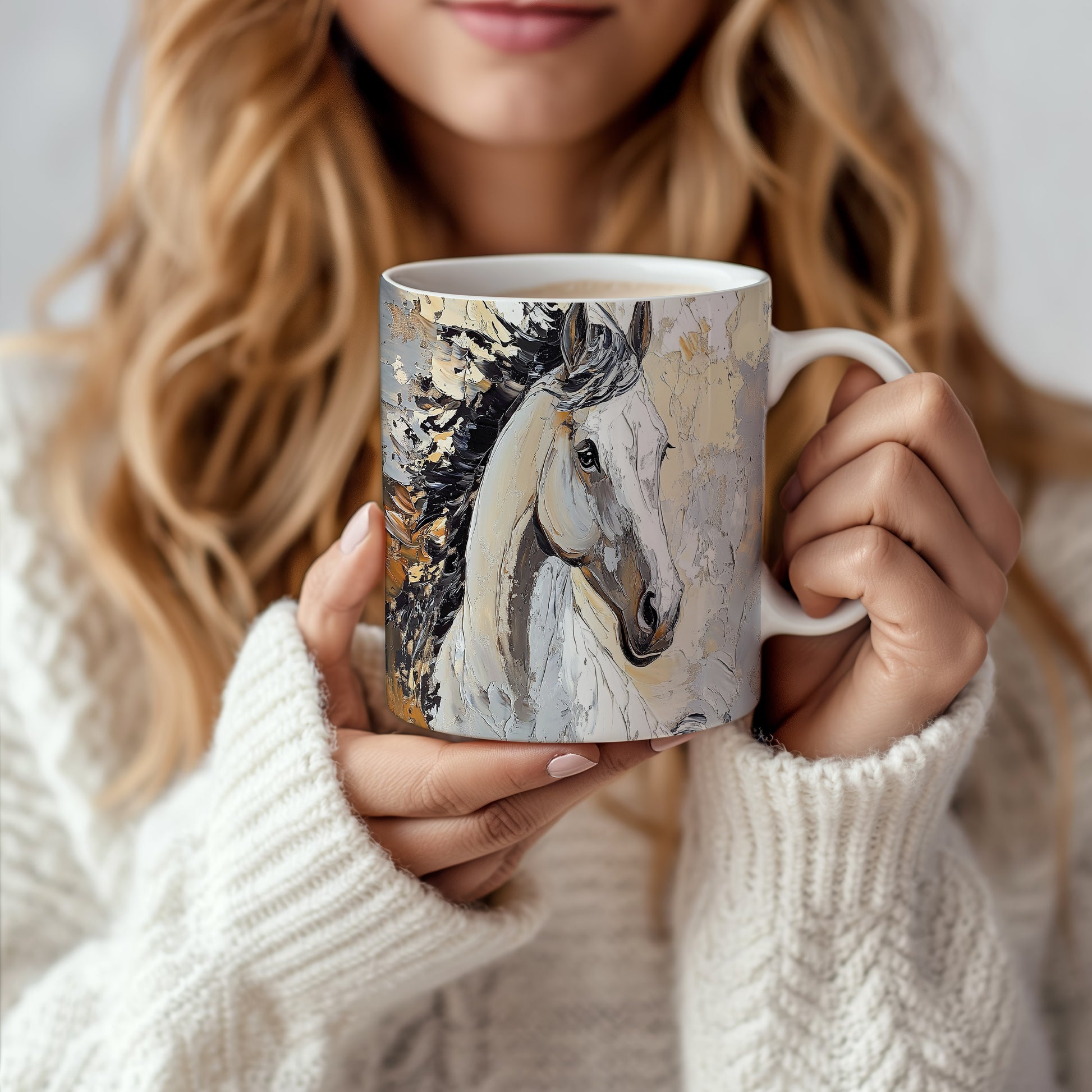 Hrnek s realistickým motivem koně – malířským vzhledem