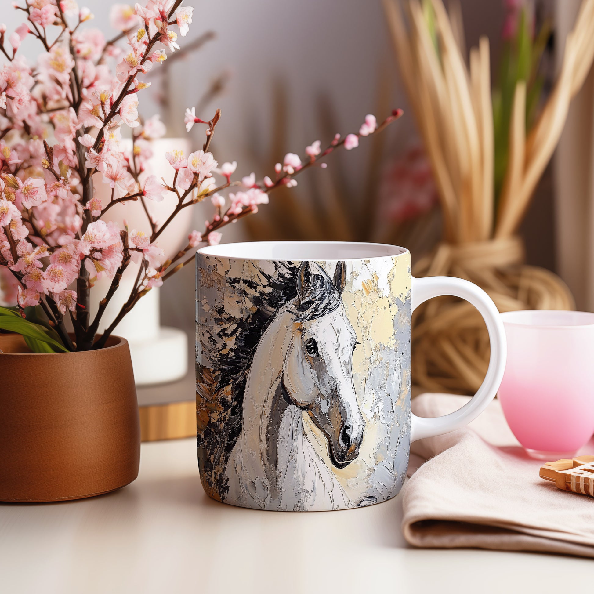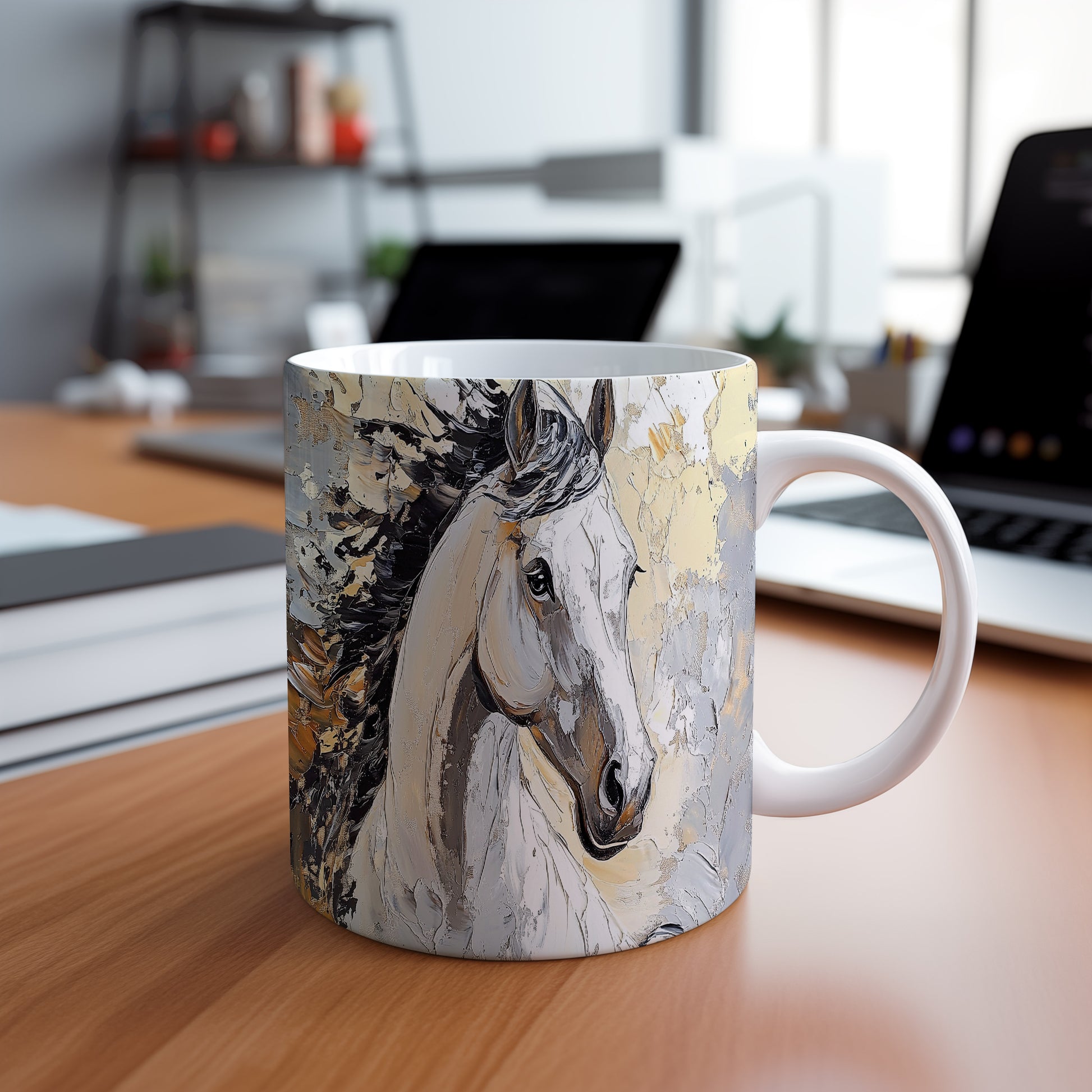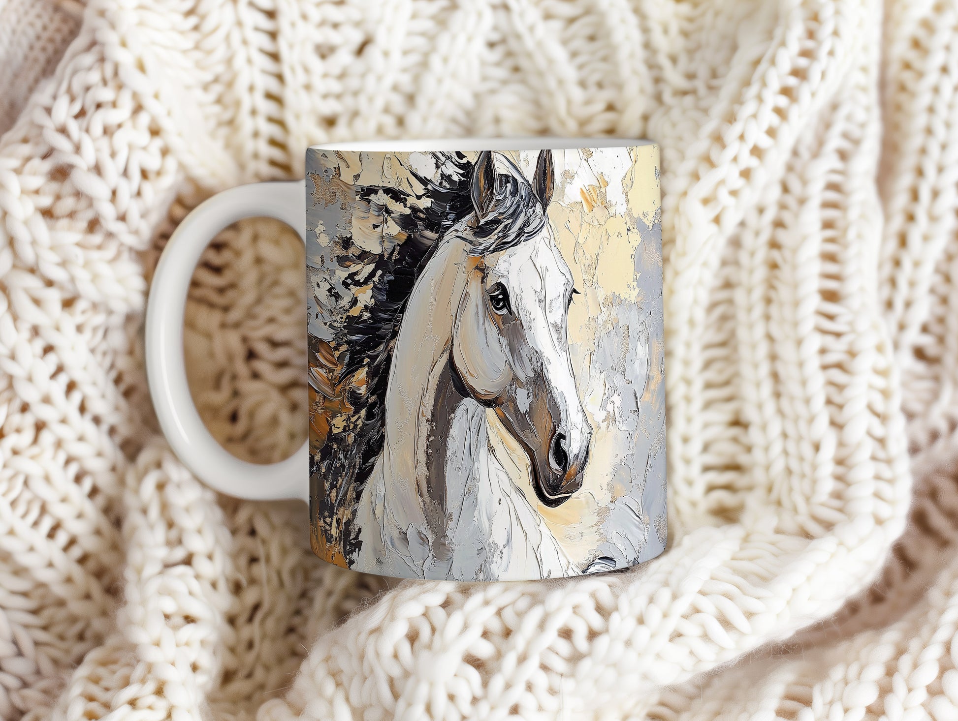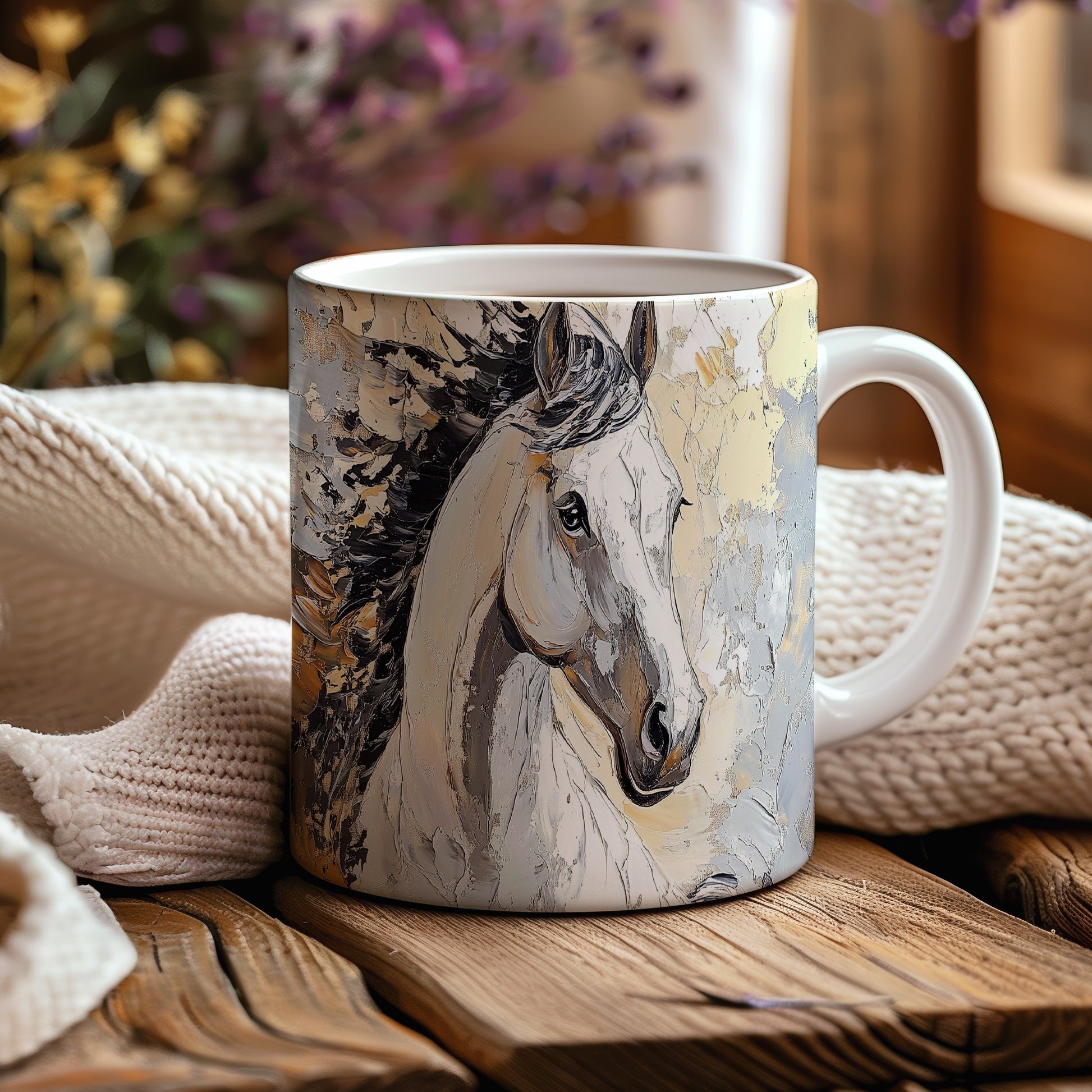 Hrnek s realistickým motivem koně – malířským vzhledem