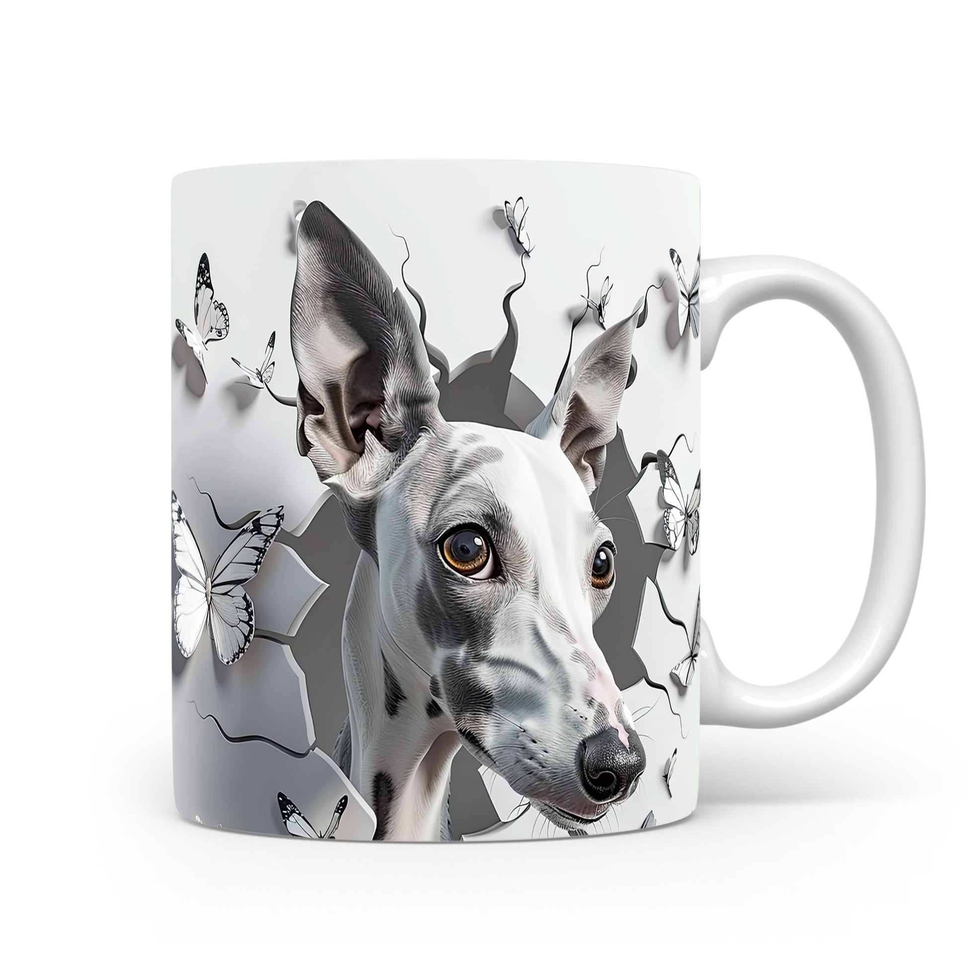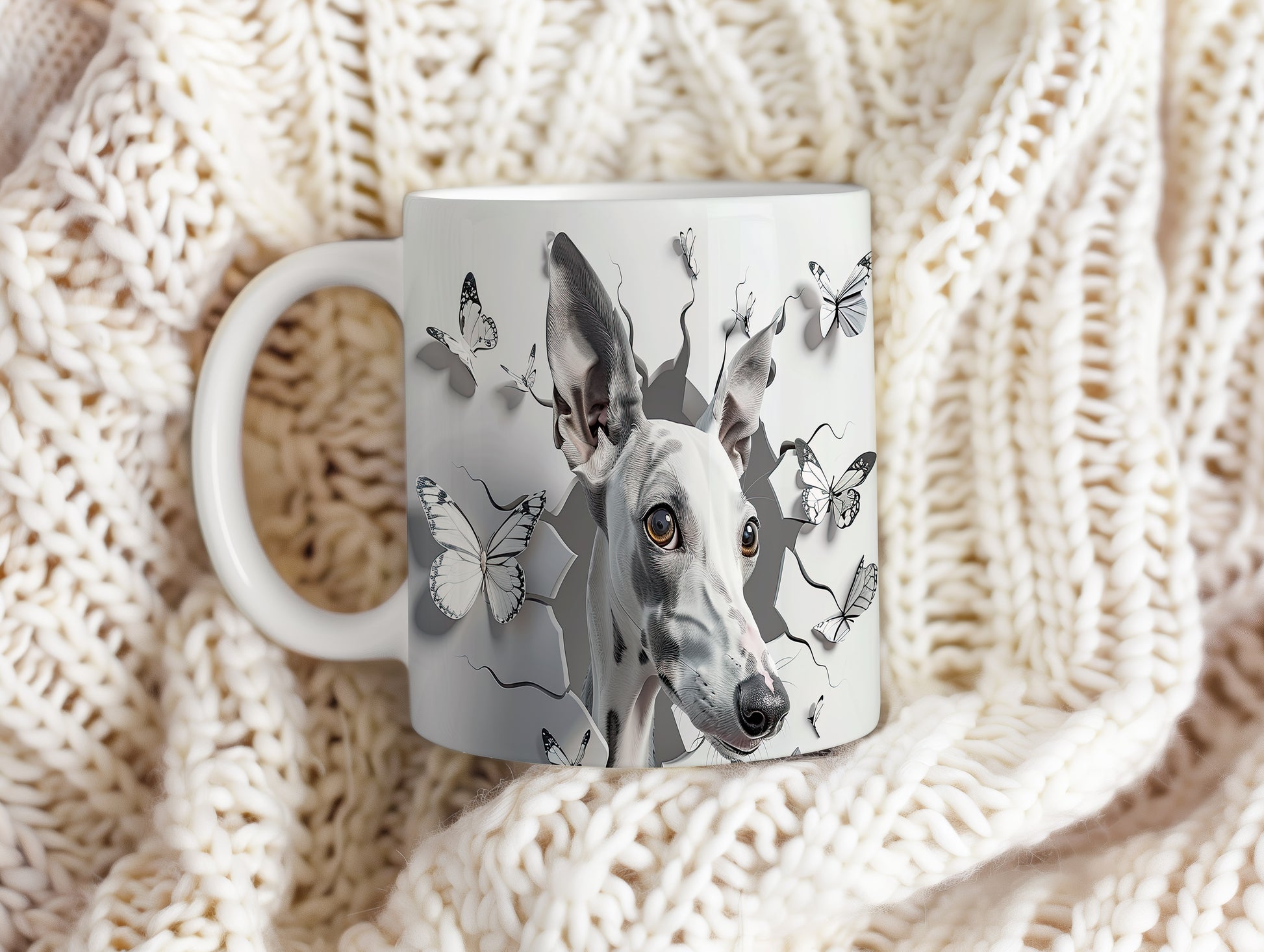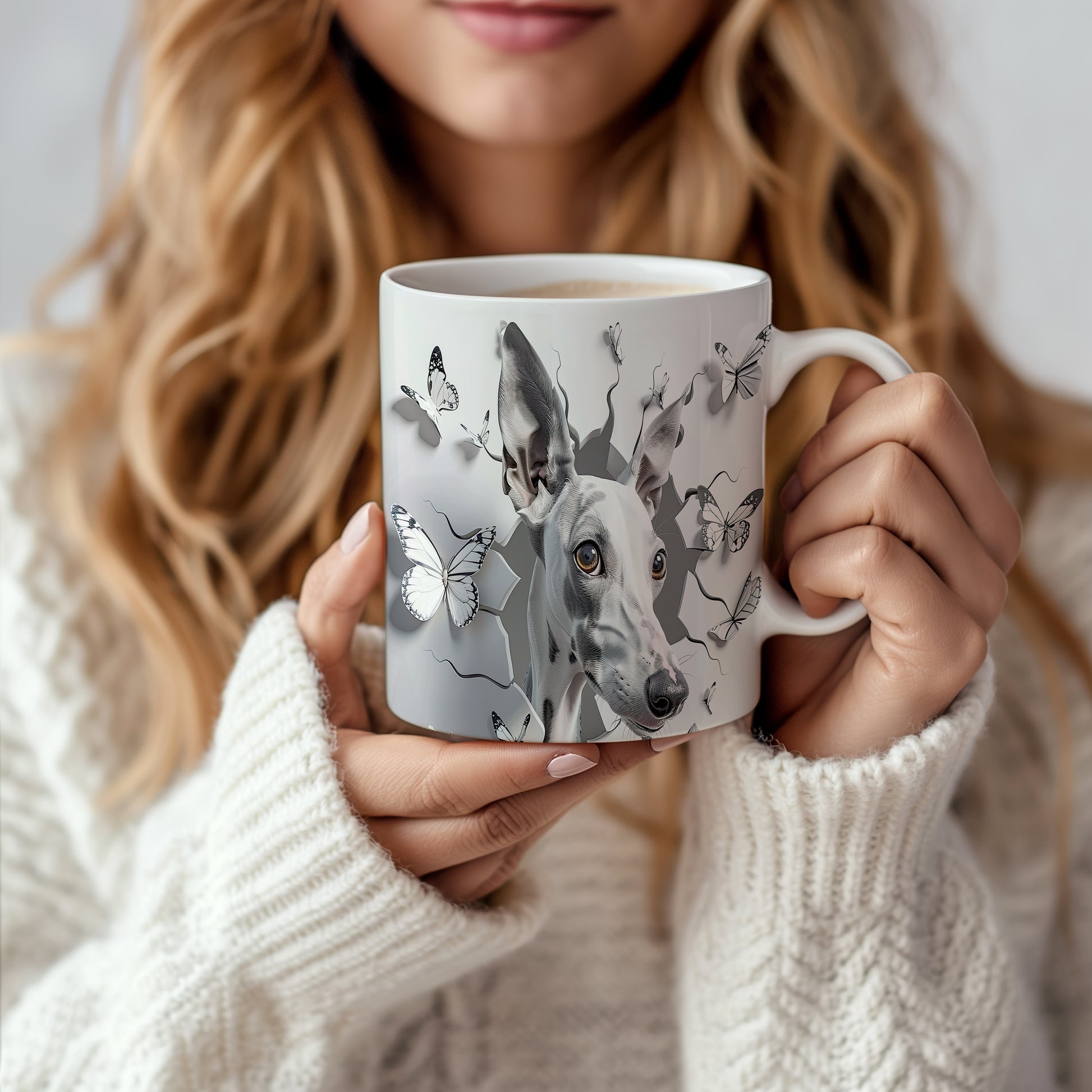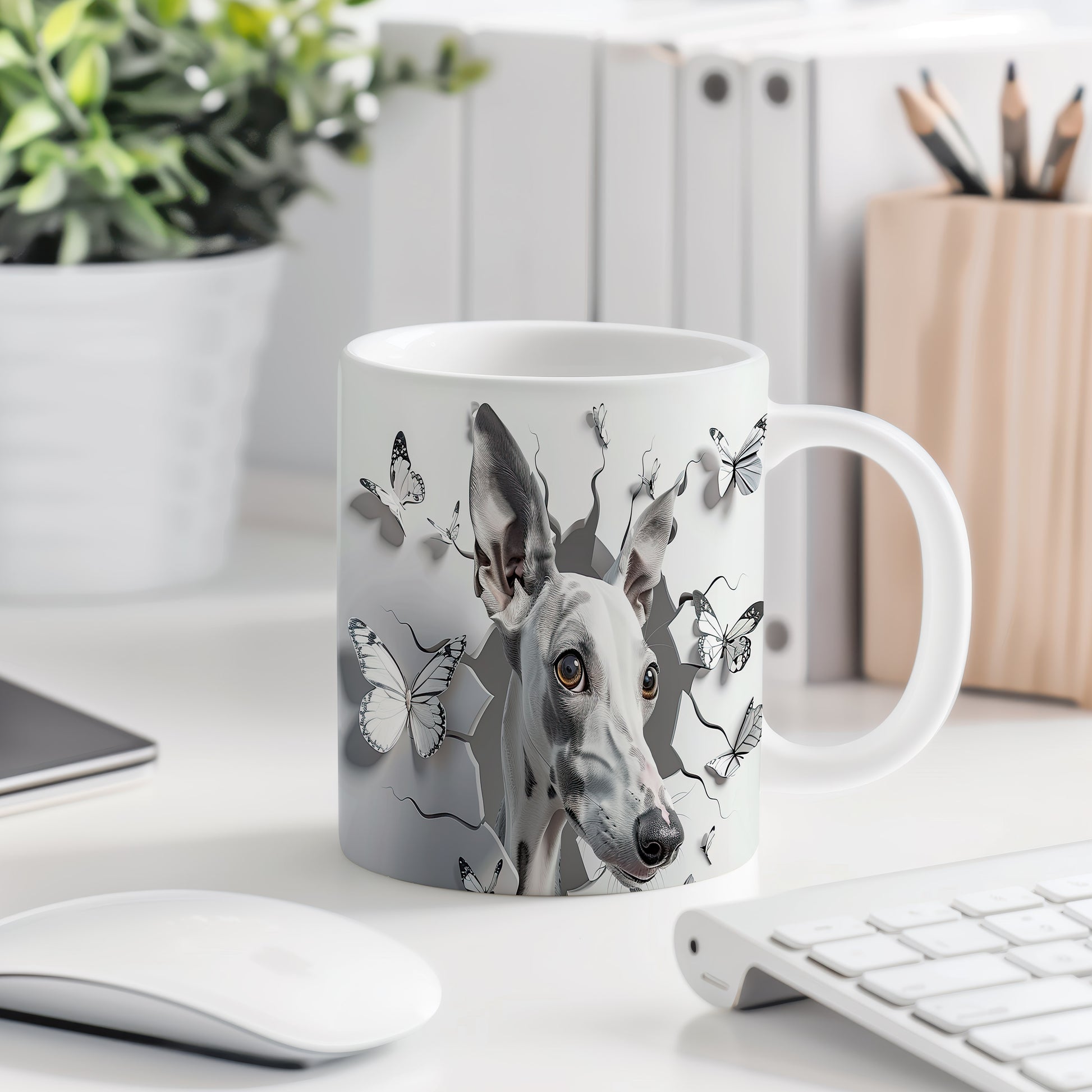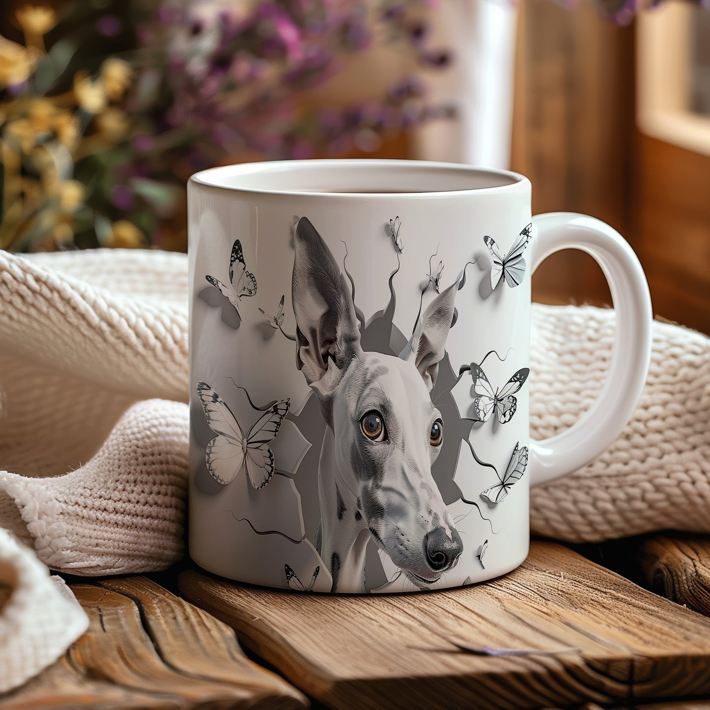 Tento keramický hrnek zobrazuje detailní portrét psa s motýly. Je ideální pro milovníky zvířat a skvělým dárkem pro přátele či rodinu. Materiál: keramika. Objem: 330 ml. Vhodné do myčky i mikrovlnky. Díky svému designu přináší do každodenního pití radost a styl.
