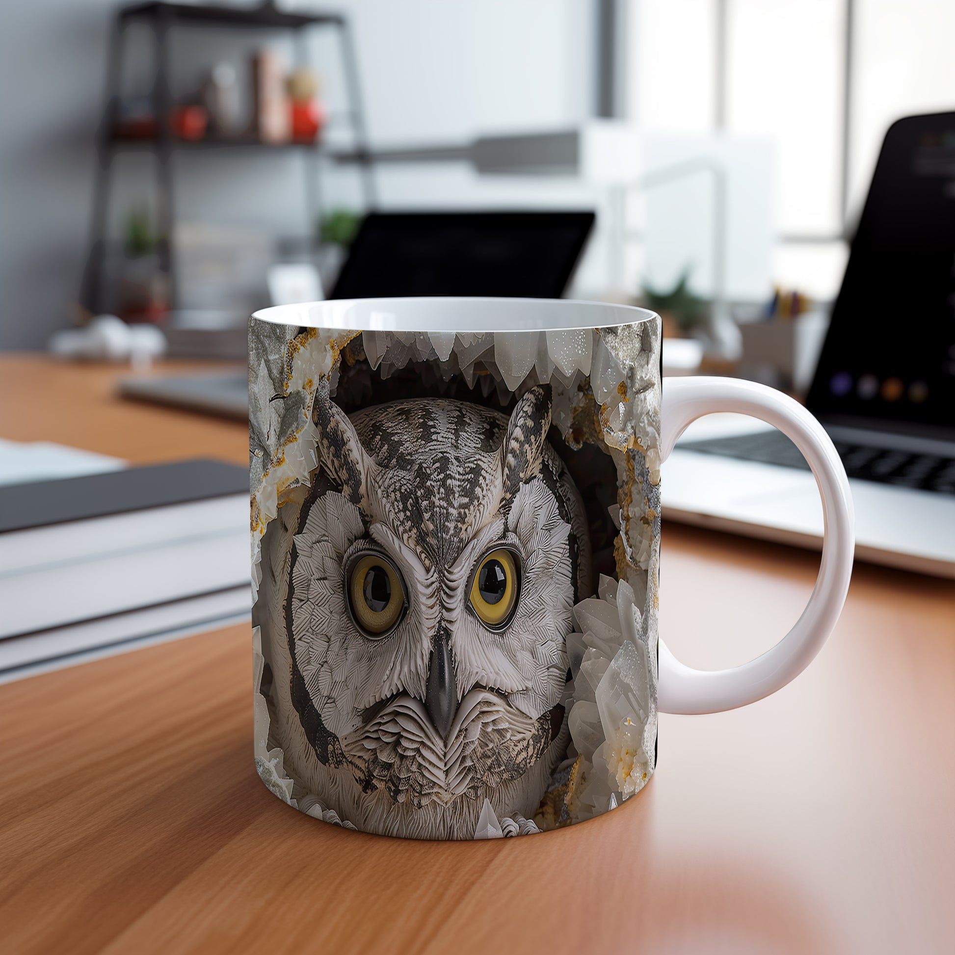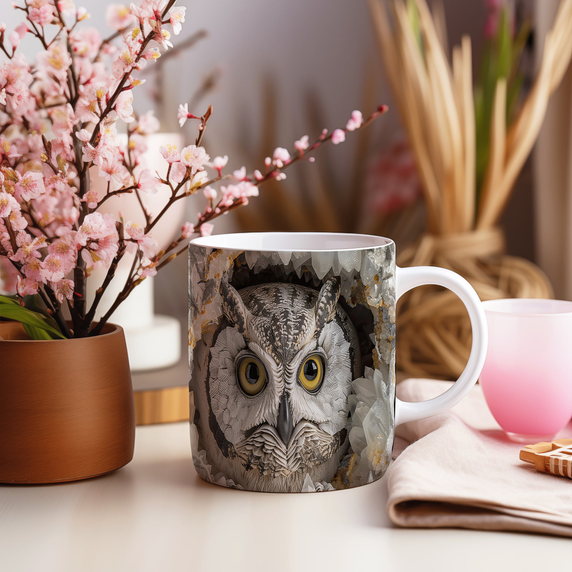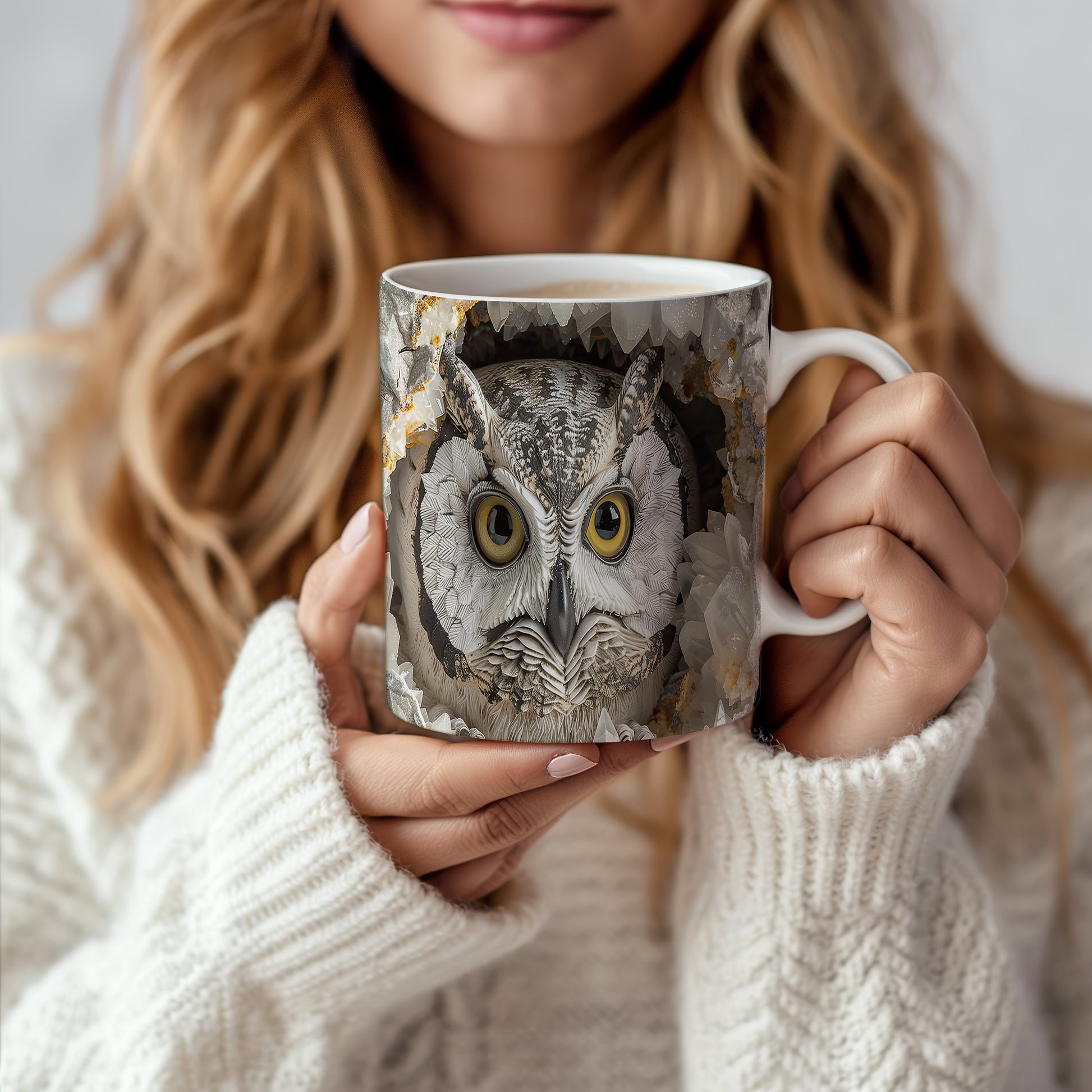 Hrnek s realistickým motivem sovy