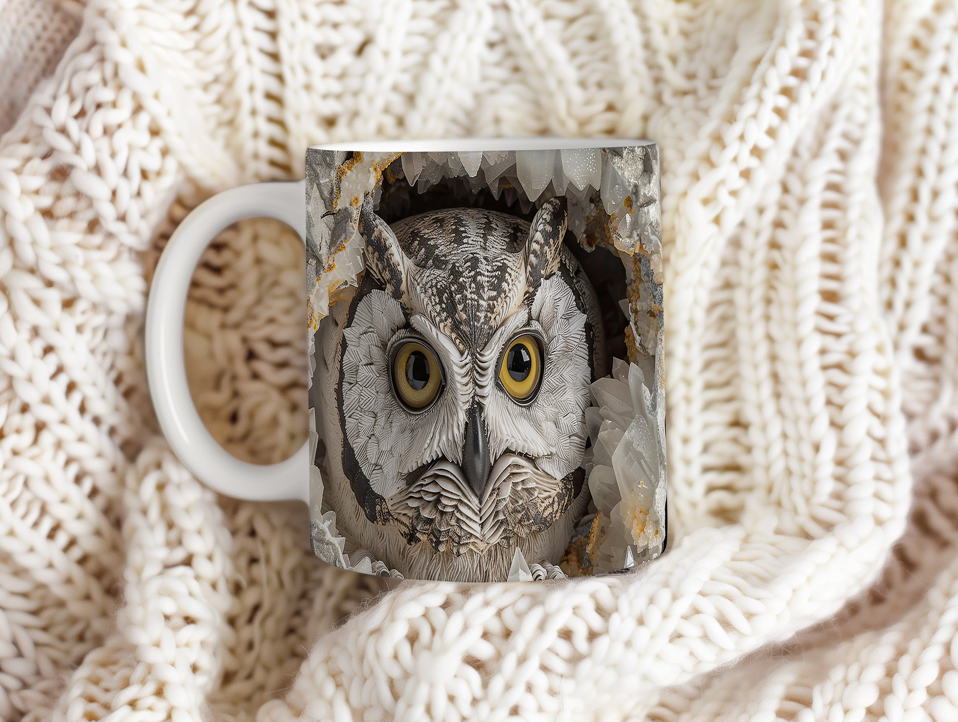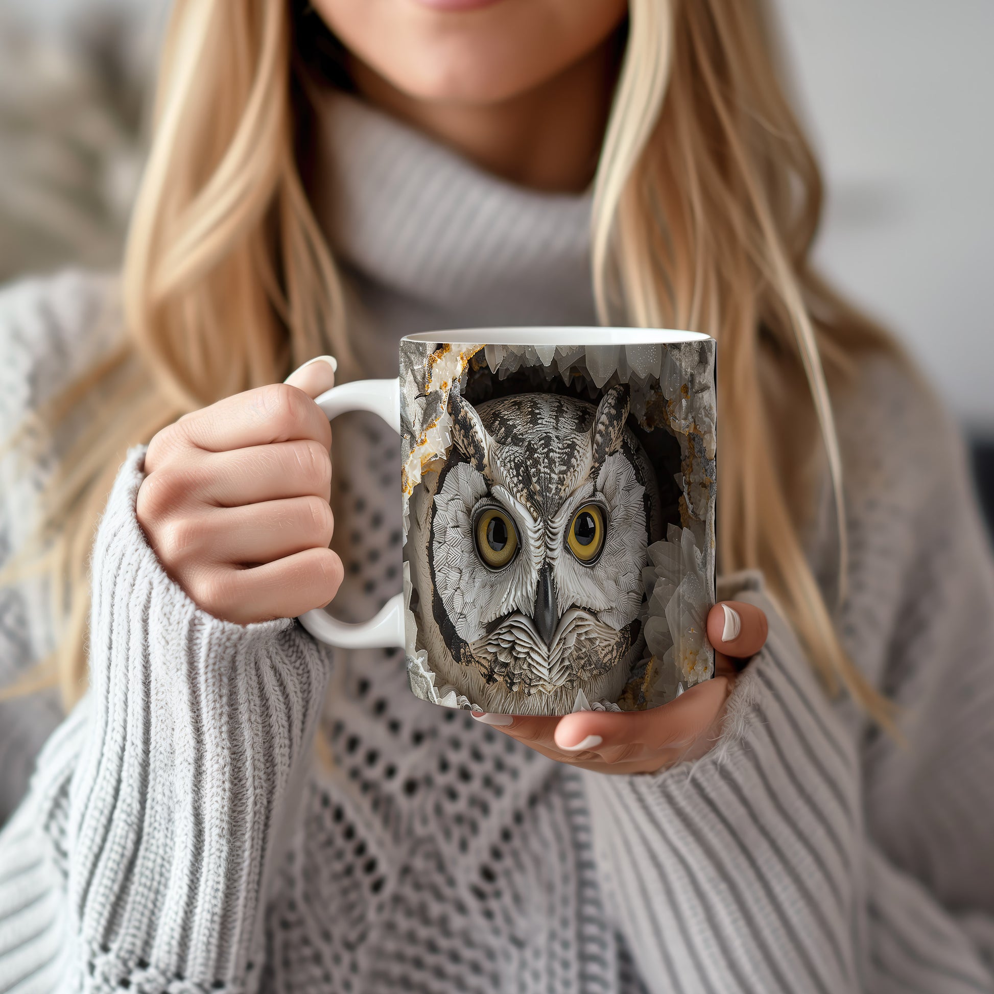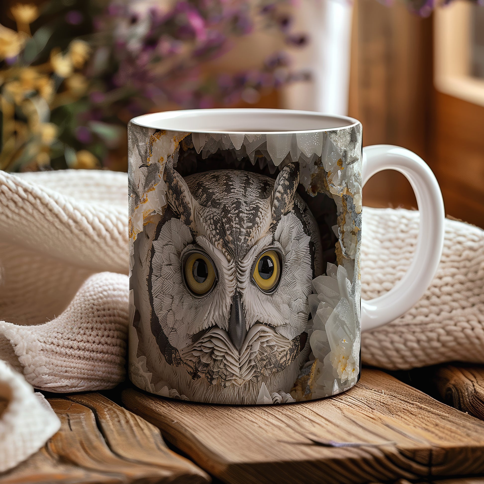 Hrnek s realistickým motivem sovy