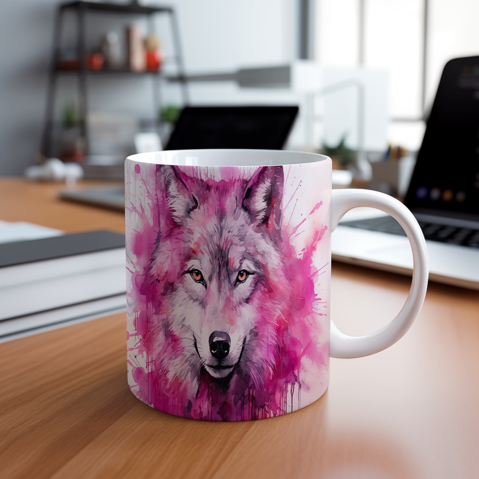 Hrnek s realistickým motivem vlka v růžových a fialových odstínech je skvělou volbou pro milovníky zvířat. Tento hrnek se hodí do kanceláře nebo jako originální dárek pro vaše blízké. Materiál: keramika. Objem: 330 ml. Vhodné do myčky i mikrovlnky. Používání tohoto hrnku přináší radost z každého doušku.